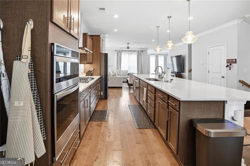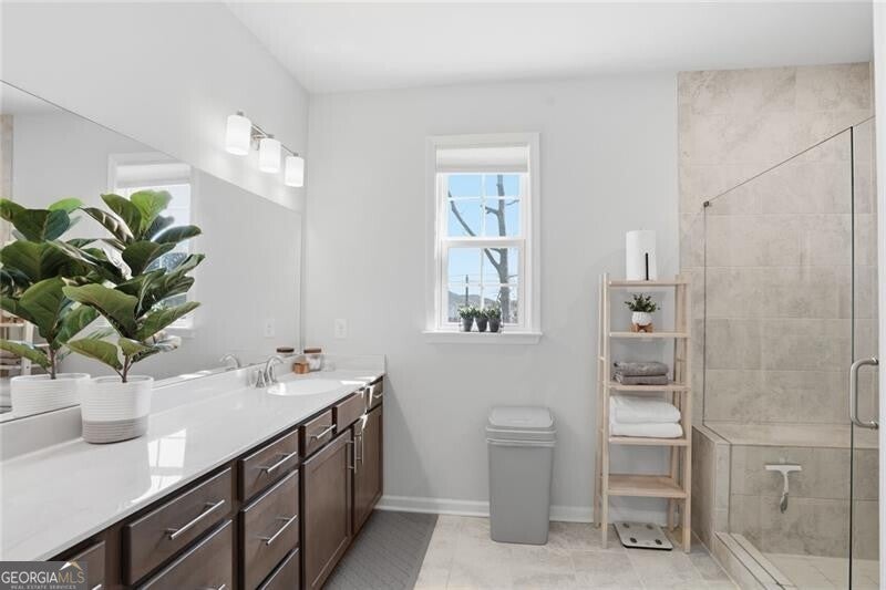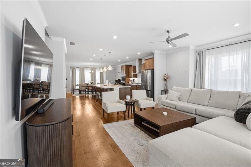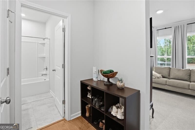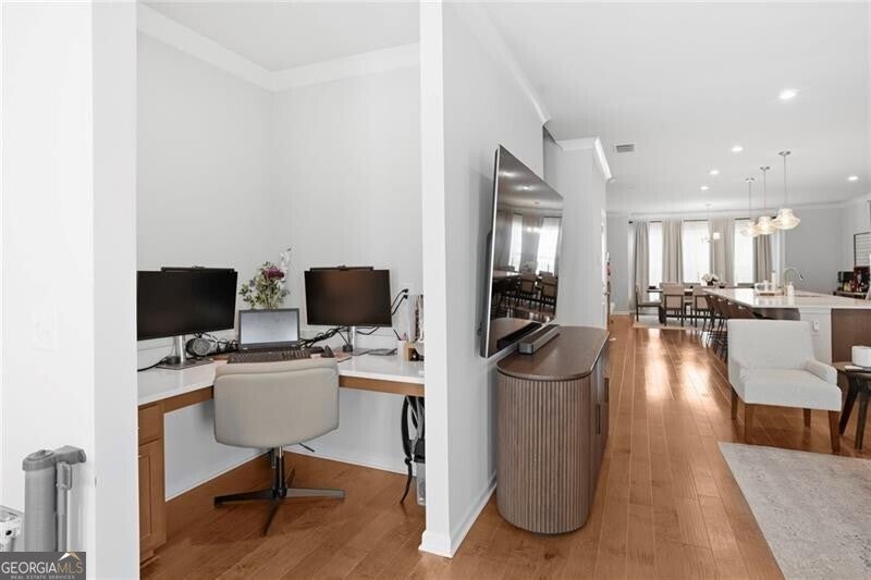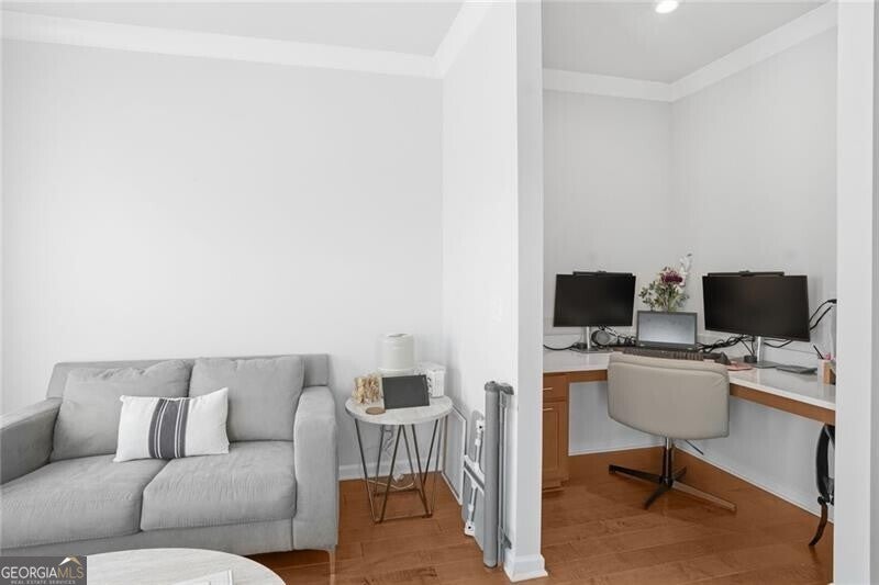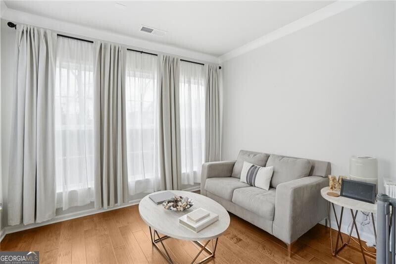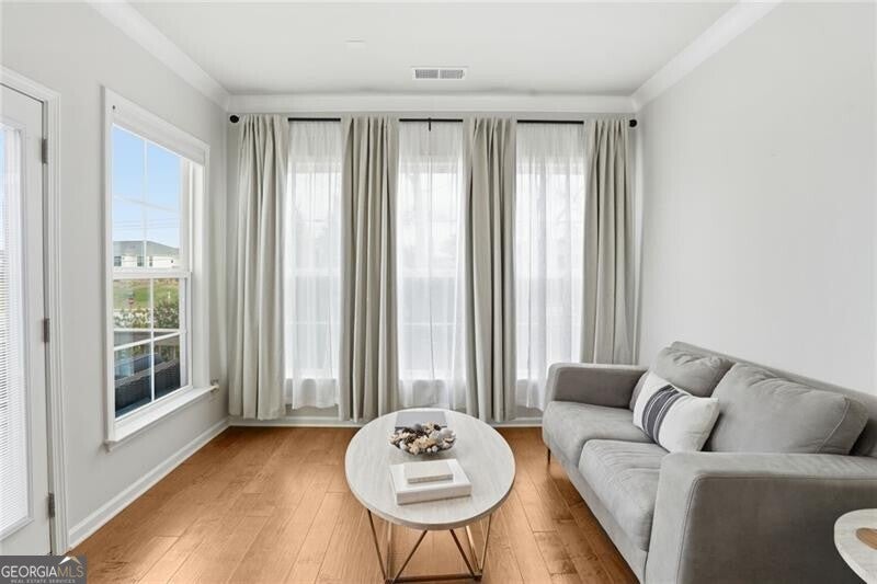 Priced well below appraised value, welcome to the largest floor plan in the desirable Northmark community, featuring unique structural add-ons not found in other townhouses - including a sunroom, an expanded primary bathroom, two walk-in closets in the primary bedroom, and a side bump-out in the family room for extra space. Built in 2022, this 4-bedroom, 3.5-bath end-unit townhome features custom upgrades that elevate it beyond builder-grade standards. The exterior features durable brick and concrete siding, a two-car garage, level driveway, and a rarity for townhouse living -an HOA-owned and maintained side green space and a home with no other townhouse to the back or side, giving you complete privacy. Inside, the open floor plan is enhanced by hardwood floors, lofty ceilings, and a bright, airy atmosphere from the natural light through windows overlooking the backyard and side greenspace. The oversized dining room opens to the kitchen, with an effortless flow into the family room and sunroom. The entertainer's kitchen features an oversized quartz island, a gas cooktop, a custom tile backsplash, stainless steel appliances, and beautiful cabinetry. Tucked into a quiet corner at the entrance to the sunroom, a built-in desk with a quartz surface offers a private, functional office space. The primary suite is a luxury retreat, offering a trey ceiling, fan, and dual walk-in closets. The primary bathroom is also inspired by luxury, featuring ceramic tile, an oversized shower with a built-in seat, and a spa-like rain shower head. Large secondary bedrooms give unlimited comfort for family or guests. The lower-level guest quarters, with a bathroom and extra storage, offers the perfect flex space to fit your needs (bedroom, office/studio, gym, or media room). Residents enjoy Northmark's community pool, a convenient rear-gated entrance, an open front entrance, and a prime location just 2.5 miles from Sugar Hill and Suwanee Town Centers, 3.9 miles from downtown Buford, and 5 miles from the Mall of Georgia with easy access to shopping, dining, parks, and major commuter routes. This rare end-unit property is a superstar in today's market.