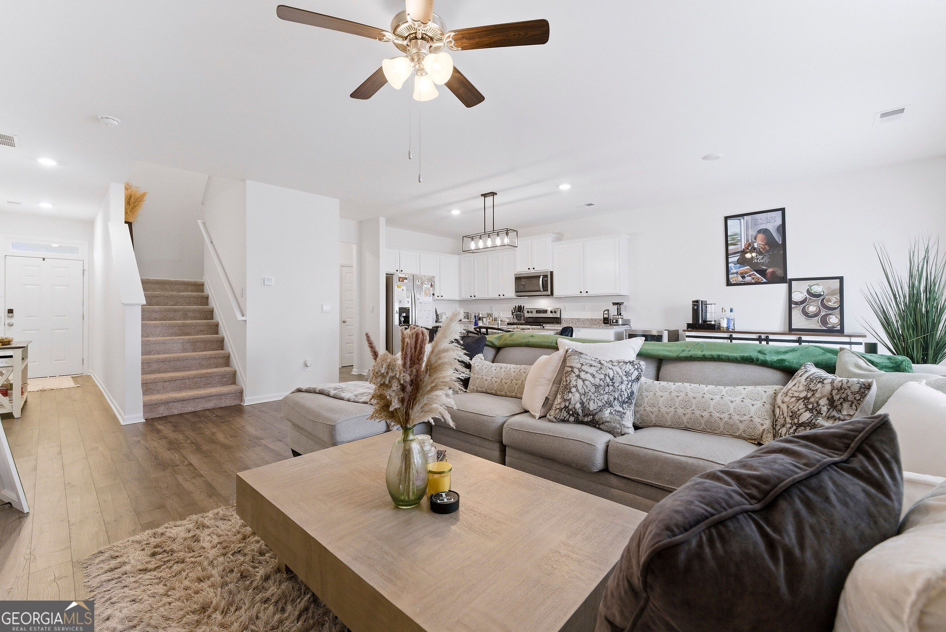 BONUS FEATURES: Greenspace along side of property, Assumable 4.99% loan! Welcome to this meticulously maintained home tucked inside a peaceful gated community, where a sense of tranquility greets you the moment you arrive! Thoughtfully designed for both everyday living and effortless entertaining, the main level features an inviting open-concept layout perfect for hosting anything from cozy game nights to lively gatherings with friends. The spacious kitchen offers abundant cabinetry, a large island with bar seating, and a walk-in pantry, flowing seamlessly into the dining area and comfortable family room. A convenient half bath and kitchen-level garage entry add to the home's functional design. Upstairs, retreat to the oversized primary suite, complete with two walk-in closets and a private ensuite bathroom, creating the perfect place to unwind at the end of the day. Two additional well sized secondary bedrooms share a hall bath, while the upstairs laundry room provides everyday convenience exactly where you need it. Ideally located just minutes from the charm of Historic McDonough Square, this home offers easy access to local shopping, dining, and Interstate 75, making commuting and weekend outings a breeze. Comfort, convenience, and location come together beautifully in this home-don't miss your opportunity to make it yours!