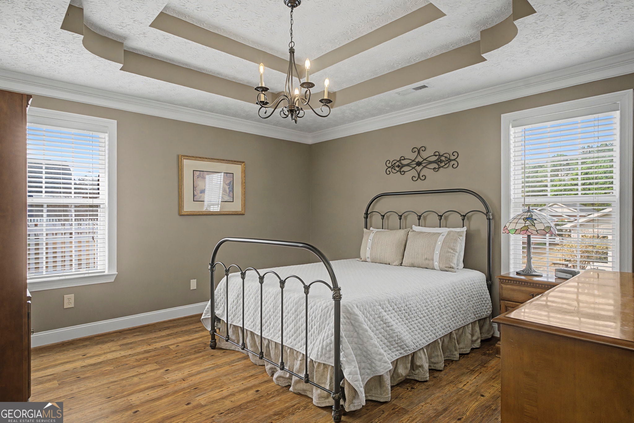 - Interior FeaturesDouble Vanity, High Ceilings, Master On Main Level, Separate Shower, Soaking Tub, Tray Ceiling(s), Walk-In Closet(s)