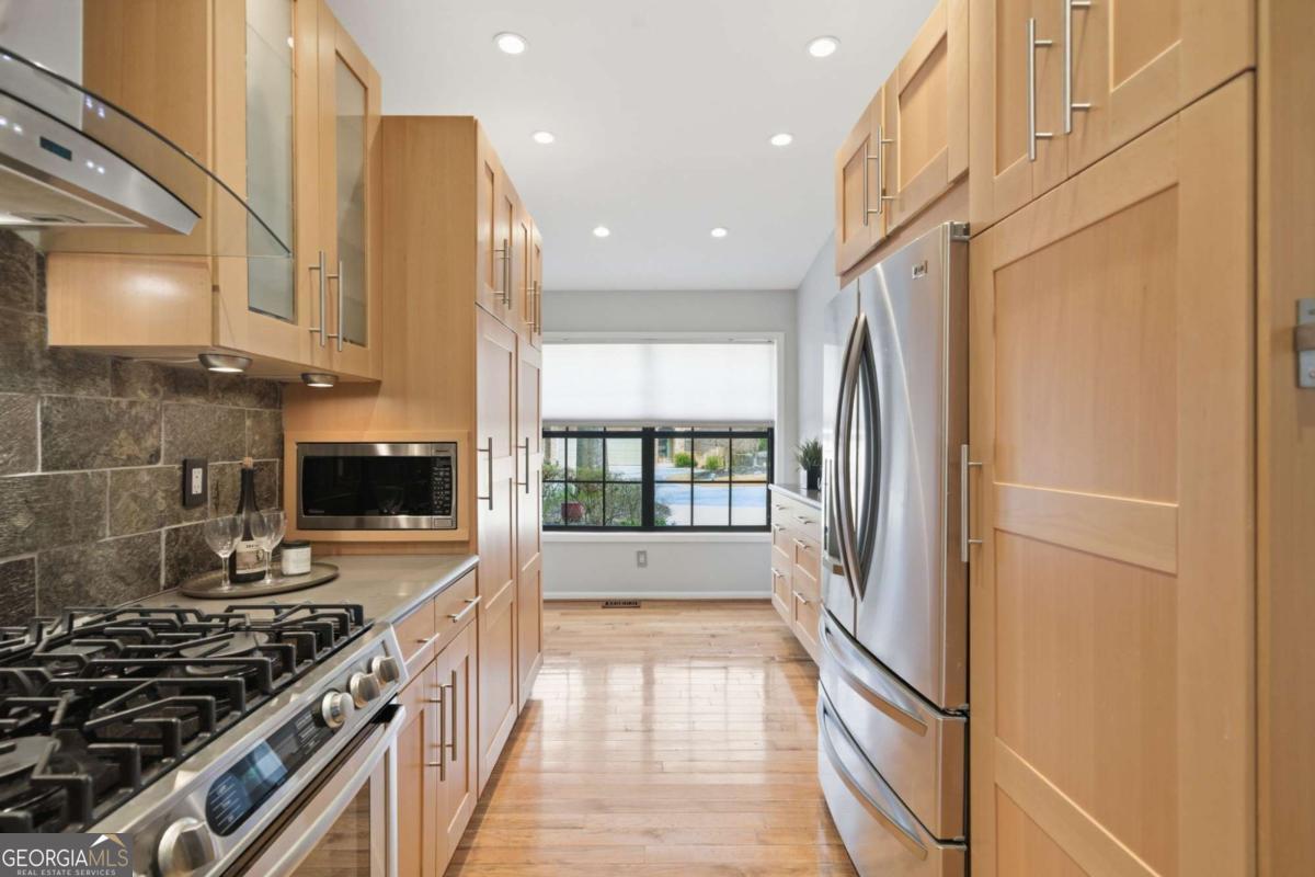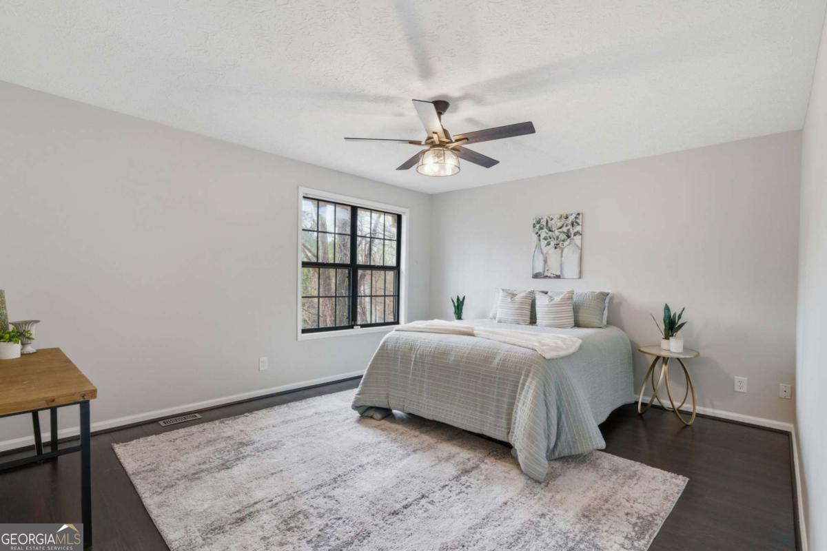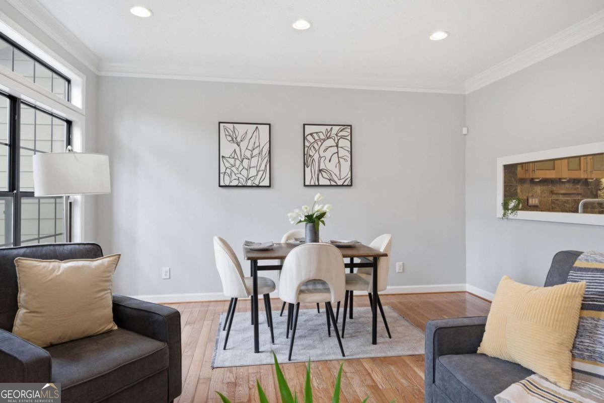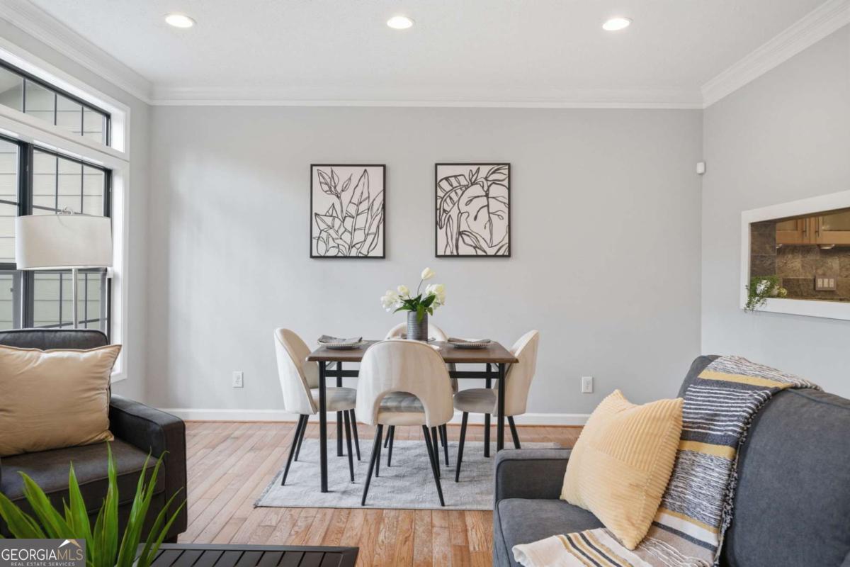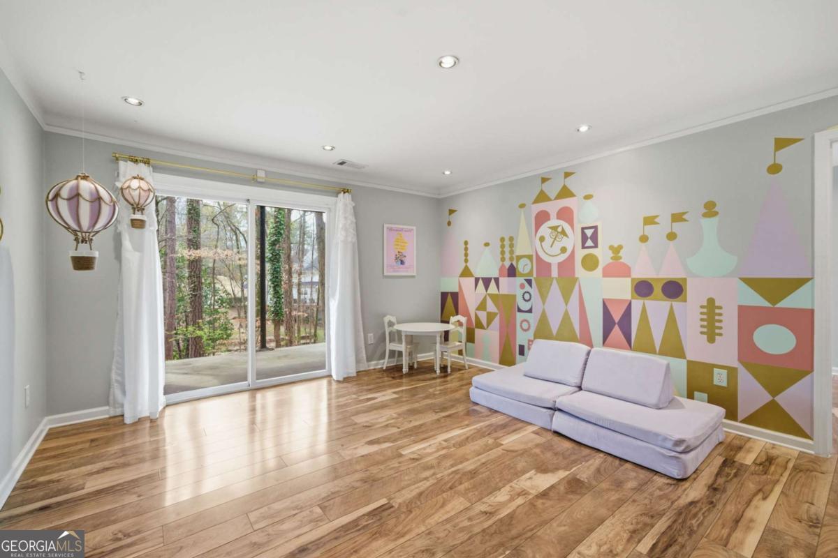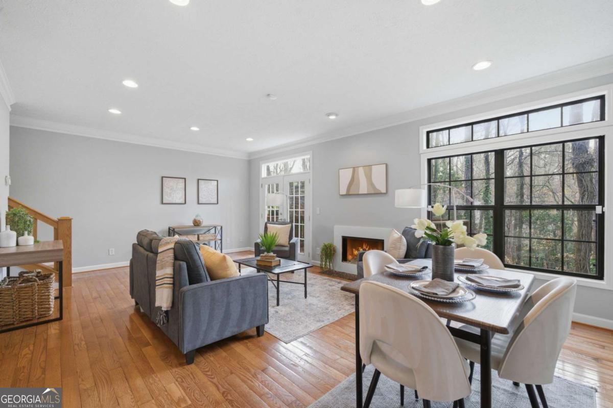 Move-in ready and completely renovated 4-bedroom, 3.5-bath townhome in the highly desirable Bishops Gate community-just minutes from the Chattahoochee River, Downtown Roswell, and GA-400. Featuring brand new concrete siding and fresh interior and exterior paint, this home offers beautiful hardwood floors, a chef's kitchen, and flexible terrace-level living space for comfortable, low-maintenance living. This beautifully updated home features an open, light-filled living and dining area perfect for everyday living and entertaining. The chef's kitchen includes gourmet appliances, custom cabinetry with convenient slide-out shelving, and great storage. Recessed lighting and dimmer switches throughout the main level add a modern touch and warm ambiance. The finished terrace level offers excellent flexibility with a media room, bedroom or home office, and a full bath-ideal for guests or a private work-from-home space. A unique wine cellar adds character and provides the perfect space for wine storage or entertaining. There is also ample room to add a secondary kitchen if desired. Enjoy peaceful wooded views from the newly stained deck or relax on the lower-level patio, providing great outdoor living space. Parking is easy with a garage, driveway, and additional parking pad. Prime location close to parks, the Chattahoochee River, shopping, dining, and entertainment. Quick access to GA-400 and Hwy 141 makes commuting simple while Downtown Roswell and Downtown Alpharetta are just minutes away. Whether you're relaxing on the deck overlooking nature or heading out to nearby restaurants, parks, and trails, this home offers the perfect combination of comfort, convenience, and location.