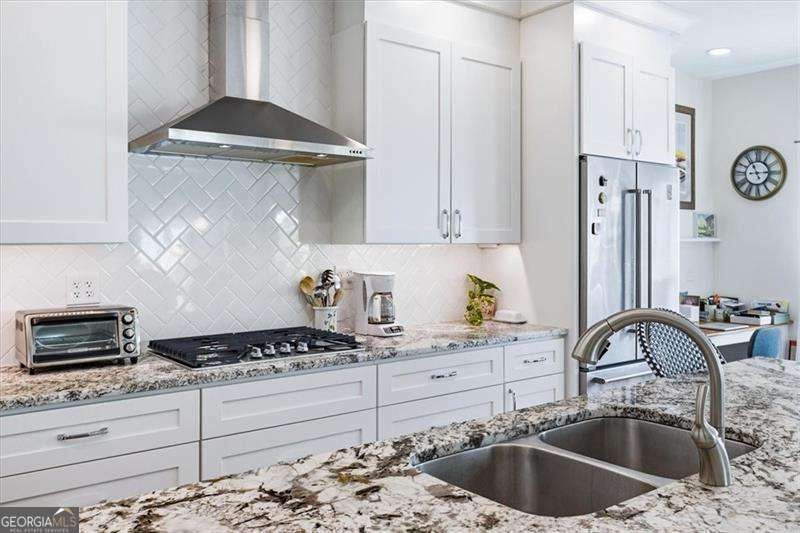 You have to check out this updated, light filled home, close to everything in Smyrna! Almost every room has been updated: brand new roof and gutters, new windows, new garage opener, closet system installed in primary, water heater and main HVAC replaced, new hardwoods on main and refreshed half bath. Main Level Highlights * Hardwoods, Primary bedroom suite, half bath * Totally renovated white kitchen with huge island * Vaulted ceiling family room with fireplace and new built-ins * Living room and Dining room combo.Upstairs Large, bright loft with window can be used as play area or office 3 large bedrooms, one with vaulted ceiling, window seat and room with sink and storage (used as art studio) and one full bath. Homeowner is an active gardener, which you will be able to see in this manageable fenced backyard, with patio for grilling and dining. The location is amazing, close to shopping, restaurants, parks, Silver Comet Trail and highways.