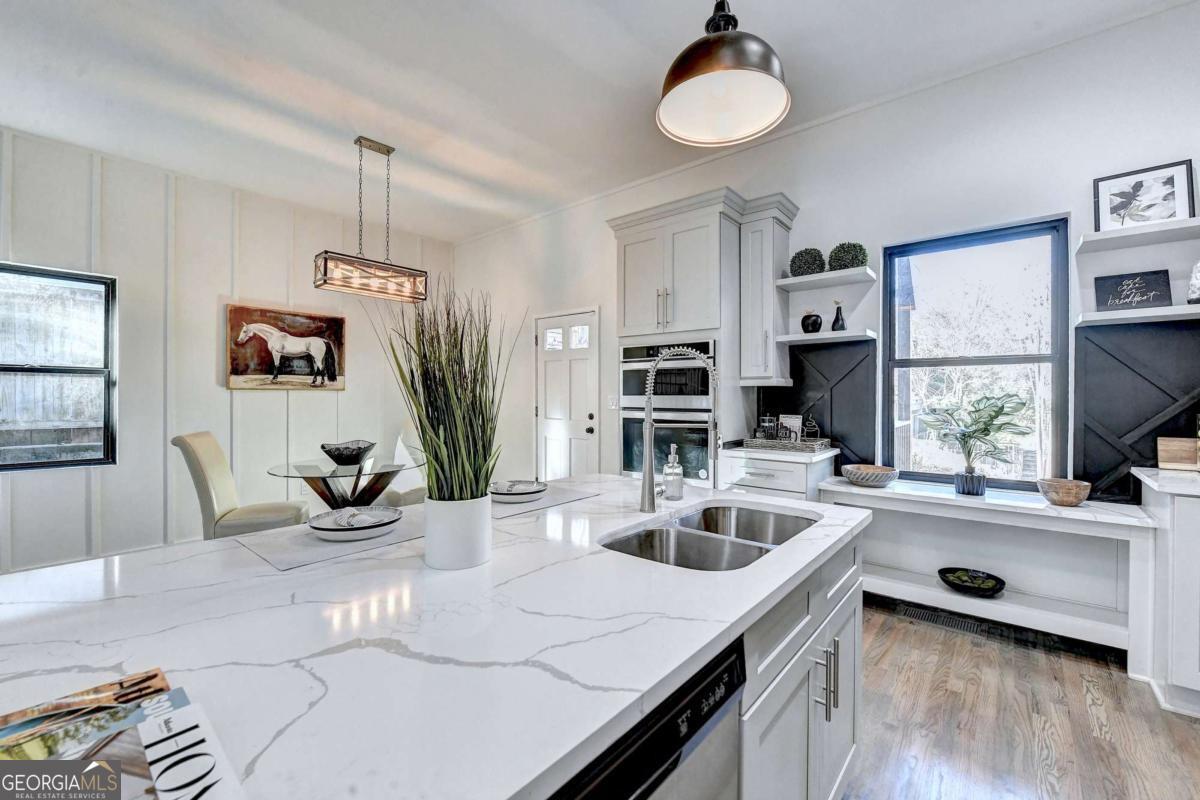 Completely renovated and move-in ready! This beautifully updated home in the heart of Atlanta blends modern finishes with timeless charm and incredible outdoor living spaces. Step inside to find a thoughtfully redesigned interior featuring luxury vinyl plank flooring throughout, stylish accent walls, and an open, inviting layout perfect for everyday living and entertaining. The stunning kitchen showcases quartz countertops, shaker-style cabinetry, and modern finishes that create a clean, contemporary feel. Both the kitchen and bathrooms feature quartz countertops, while the bathrooms have been fully upgraded with beautiful tiled showers and updated fixtures for a spa-like experience. Outside, enjoy multiple outdoor living areas including a welcoming covered front porch, a spacious upper-level deck, and a lower covered deck, perfect for relaxing or hosting guests. The home sits on an elevated lot with a large concrete parking pad providing ample off-street parking. Located minutes from shopping, dining, and major Atlanta attractions, this fully renovated home offers the perfect combination of modern updates, character, and convenience.