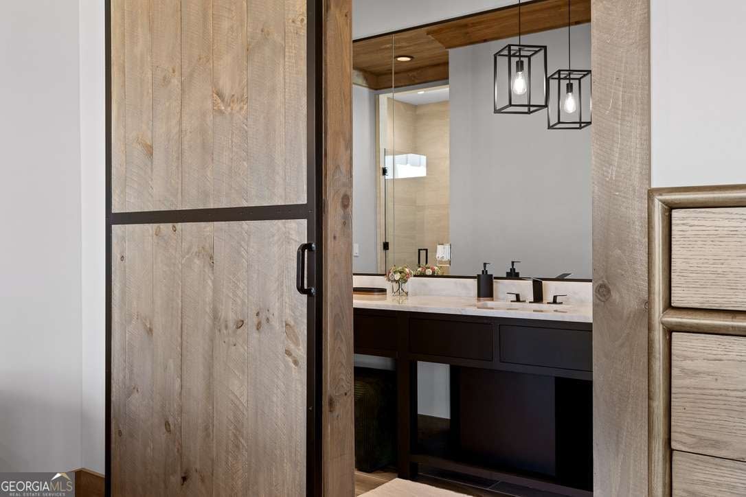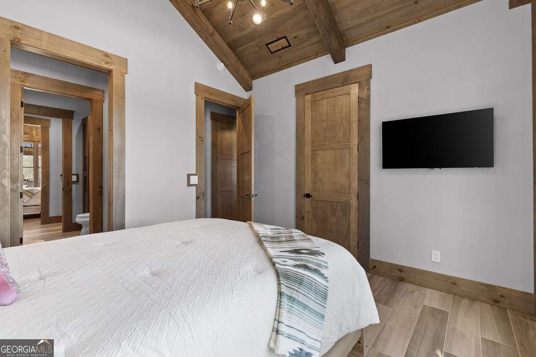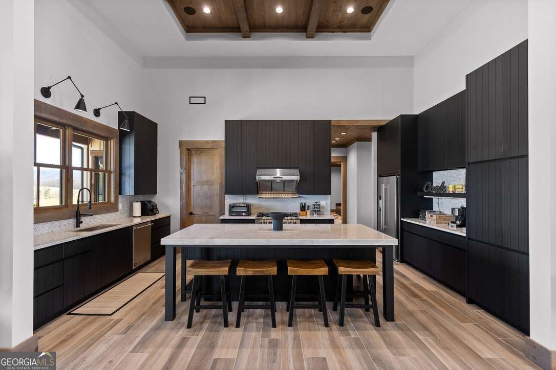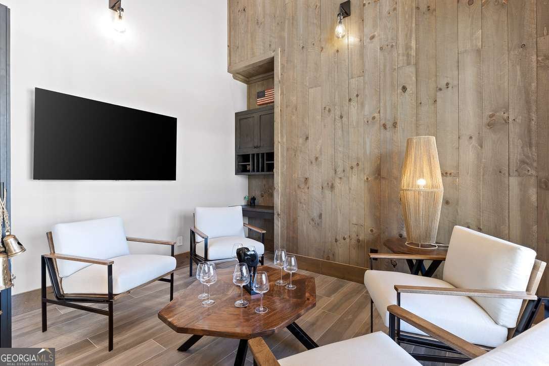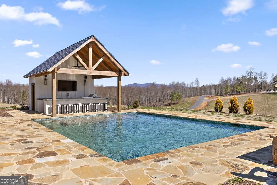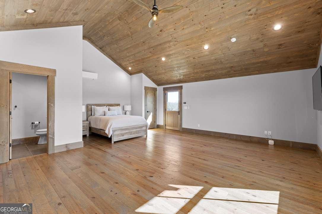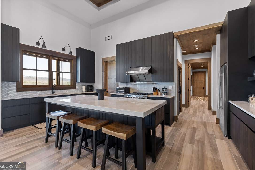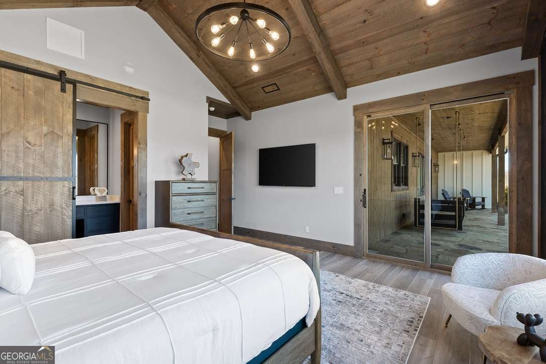 In the heart of North Georgia's wine country, where rolling pastureland meets picturesque mountain views, this extraordinary modern farmhouse estate sits on 9 scenic acres, offering a lifestyle as remarkable as the setting itself. Located within an exclusive 29-homesite community of estate-sized lots, the home is perfectly positioned to capture sweeping views of distant mountains, open pastureland, and the charm of vineyard life while providing generous space between neighbors and room to expand or further personalize the property over time. The beloved local winery, Chateau Meichtry, sits directly across from the community, offering the rare luxury of strolling over for an evening tasting while still returning home to the quiet beauty of the countryside. Built by renowned luxury builder Ron Lomonaco, celebrated for his signature modern rustic aesthetic and thoughtful craftsmanship, the home blends refined design with warm, inviting spaces meant to be lived in and shared. Inside, every detail has been carefully considered. A welcoming flex space just off the entry offers the perfect setting for a quiet sitting room, office, or reading retreat. The home then opens into a dramatic living room anchored by soaring vaulted ceilings and a striking rock fireplace, where expansive sliding doors frame the surrounding mountain views and seamlessly connect indoor living to the outdoors. The kitchen is both beautiful and highly functional, featuring sleek black cabinetry, elevated finishes, and a spacious walk-in pantry designed for effortless entertaining. Just beyond, a dedicated wine cellar provides the perfect place to showcase a curated collection fitting for a home surrounded by vineyards. The primary suite is a true sanctuary, offering breathtaking mountain views, a generous walk-in closet, and a beautifully appointed bath designed with both comfort and sophistication in mind. Outdoor living here is just as exceptional as the interior. A covered porch lined with classic swings invites slow mornings with coffee and peaceful evenings watching the sun dip behind the mountains. Beyond, the resort-style pool and pool house create a stunning backdrop for entertaining, complete with a built-in grill, luxury appliances, and a stylish bar that makes hosting effortless. Guests will enjoy complete privacy in the separate suite above the garage, creating the perfect space for extended visits. Offered fully furnished with locally sourced pieces, this home is truly move-in ready, allowing its next owner to step directly into the lifestyle it was designed for. With breathtaking scenery, a prime location within walking distance to a winery, and luxurious amenities throughout, the property also presents an incredible opportunity as a high-end vacation retreat or short-term rental in one of North Georgia's most sought-after destinations. A home where design, landscape, and lifestyle come together effortlessly and where the next chapter could begin the moment you arrive.