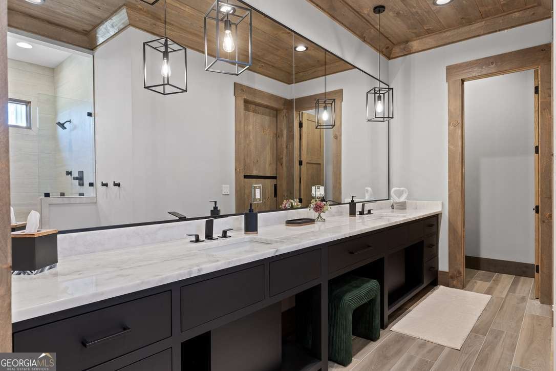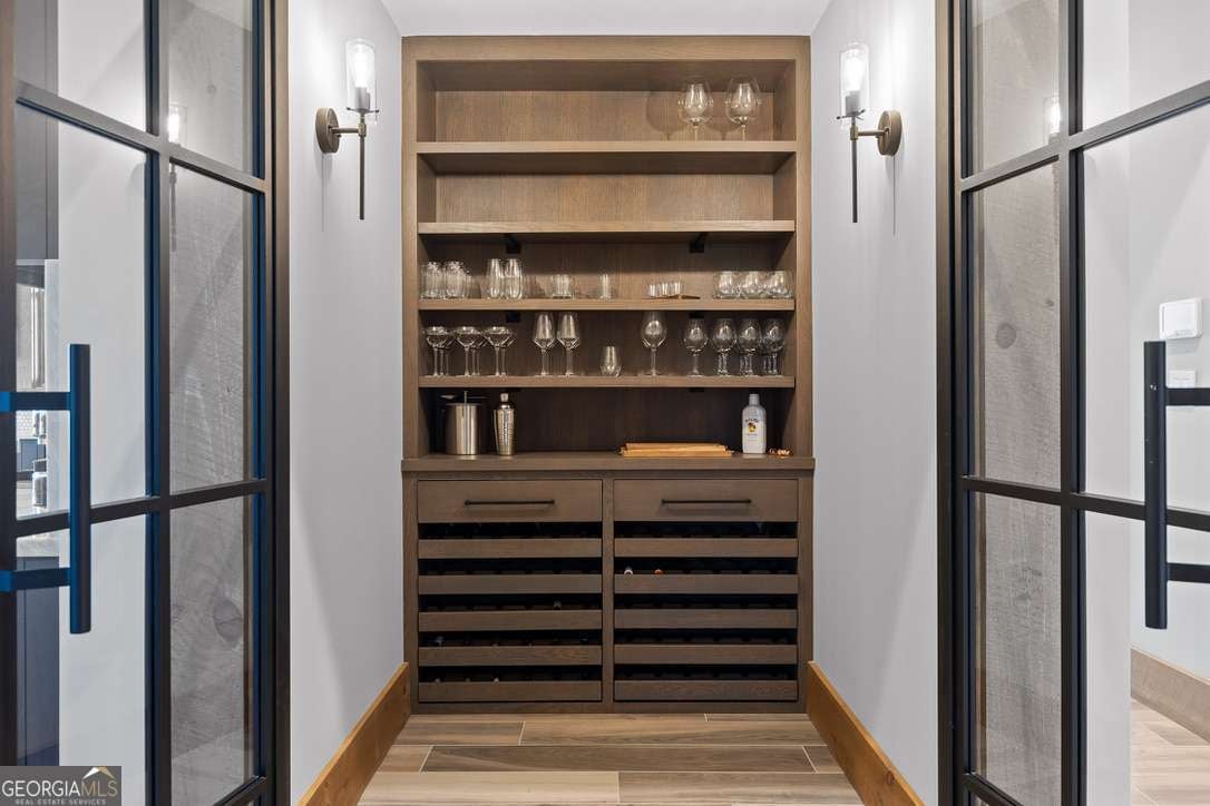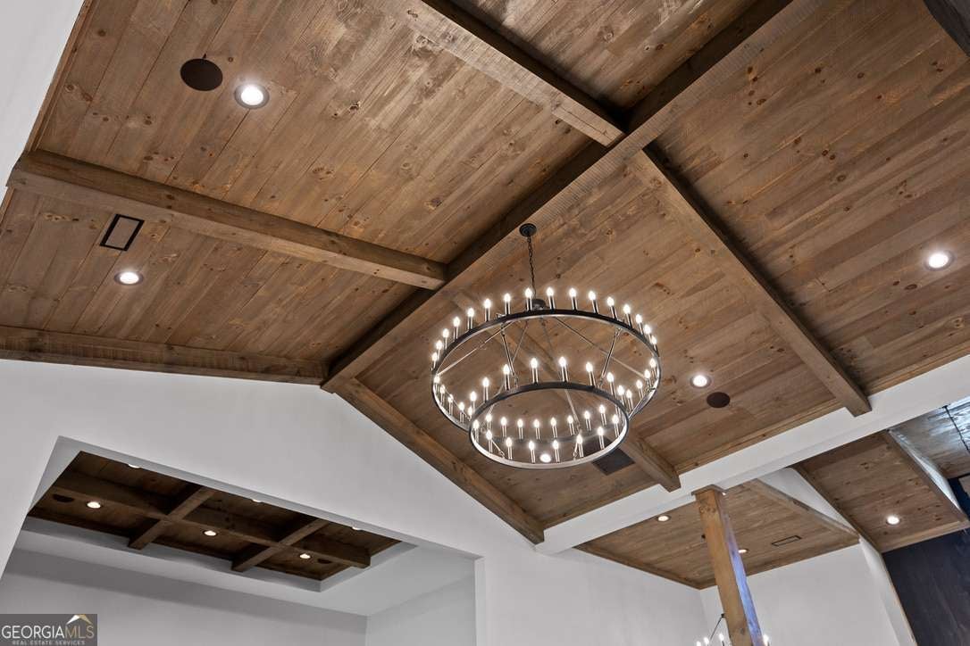 - Interior FeaturesBeamed Ceilings, Double Vanity, High Ceilings, Master On Main Level, Split Bedroom Plan, Tile Bath, Vaulted Ceiling(s), Walk-In Closet(s), Wet Bar, Wine Cellar