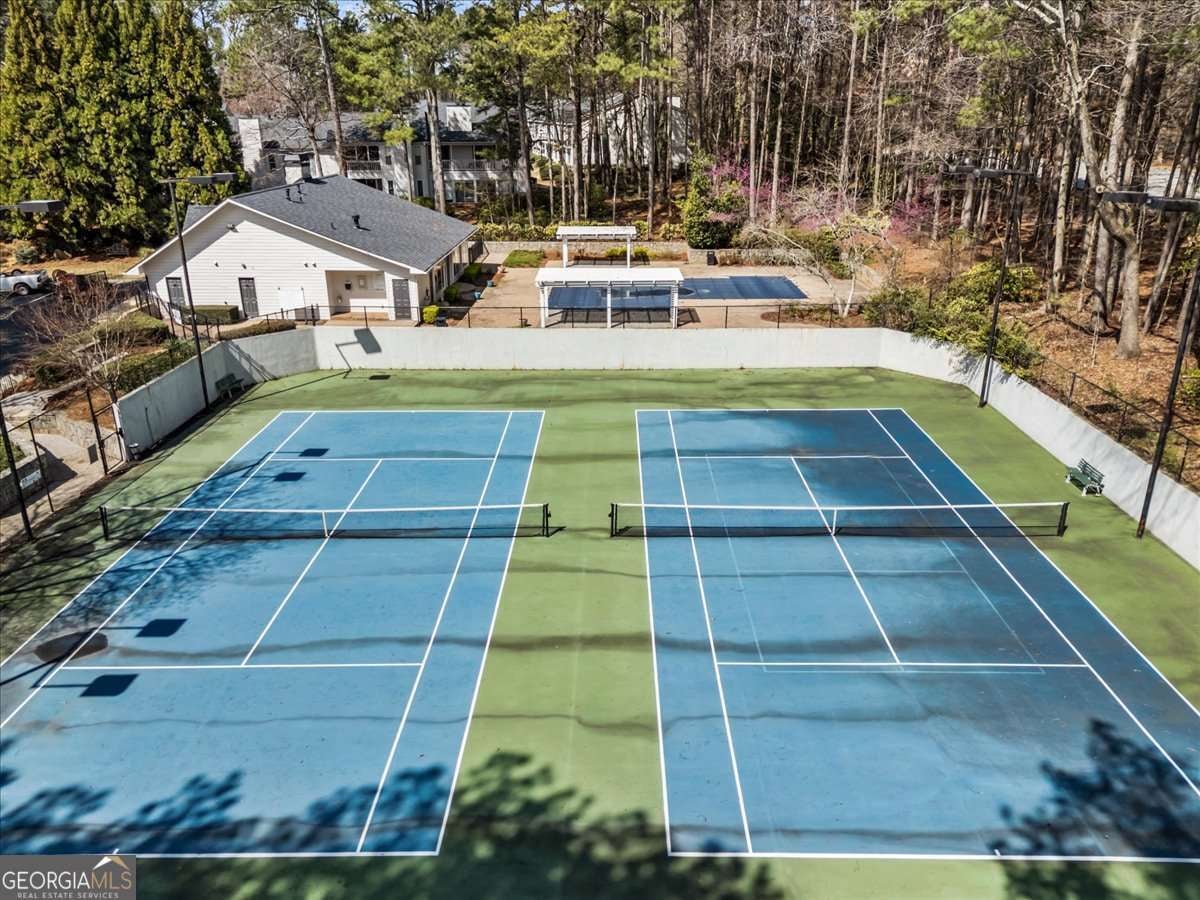 Live just minutes from Truist Park and The Battery Atlanta in this top-floor condo offering privacy, modern updates, and easy, low-maintenance living in the quiet Parc at Hillsdale community. Tucked away with peaceful wooded views from the covered back porch, this move-in-ready home blends comfort and convenience in one of Atlanta's most connected locations, with quick access to I-75 and I-285. Inside, you'll find updated finishes throughout, a beautifully renovated half bath, new energy-efficient windows, and a spacious bedroom suite featuring its own fireplace for a cozy, elevated retreat. Major systems including the HVAC and water heater have already been updated, giving buyers added peace of mind. Hillsdale offers swim and tennis, assigned parking, and a well-maintained, professionally managed HOA with low dues that cover water, sewer, trash, exterior maintenance, a newer roof, and freshly painted exterior. Located in Parc at Hillsdale, the community allows long-term rentals with no rental cap, providing added flexibility for future plans. Whether you're heading to a Braves game, meeting friends at The Battery, or simply enjoying the quiet wooded setting from your porch, this top-floor condo delivers the ideal mix of lifestyle, location, and lock-and-leave simplicity.