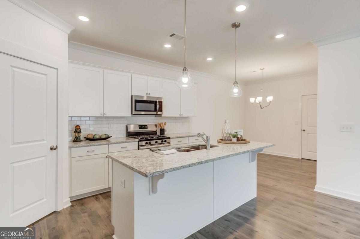 Enjoy easy, low-maintenance living in this beautiful one-level ranch condo located in a desirable gated 55+ active adult community in Gwinnett County. This ranch home offers exceptional value and a standout opportunity for buyers seeking the ease of true one-level living. This bright and inviting home features 3 bedrooms and 2 full bathrooms in an easy open floor plan with beautiful LVP flooring throughout the main living areas. The spacious kitchen is well-appointed with granite countertops, stainless steel appliances, a large island, pantry, and generous cabinet space, and it overlooks the dining area and family room with a cozy gas fireplace-perfect for everyday living and entertaining. Just off the main living room, the beautiful, enclosed sunroom provides a versatile space filled with natural light. Whether you envision a peaceful sitting room for your morning coffee, a craft room, or a home office, this flexible space easily adapts to your lifestyle. And you will love the bedroom floor plan! The oversized primary suite on one side of the home for privacy, while two secondary bedrooms and a full bathroom are located on the opposite side-ideal for guests, a roommate, hobbies, or additional workspace. The primary suite features a tray ceiling, walk-in closet, dual vanities, private water closet, and a stepless tiled shower with bench. A perfect place to downsize and Age-in-Place. Designed with easy, stepless living in mind, the home includes zero-step entry from the garage and a stepless tiled shower, offering comfort and accessibility for years to come. Additional highlights include a walk-in laundry room and a spacious two-car garage. This gated community includes community gardens, clubhouse, pool and more. Enjoy a private, peaceful setting while being just minutes from downtown Grayson and Loganville, with convenient access to shopping, restaurants, and grocery stores. Located in Gwinnett County, buyer may benefit from age-based senior tax exemptions, offering potential tax savings. A wonderful opportunity to enjoy comfortable, single-level living in a welcoming 55+ active adult community.