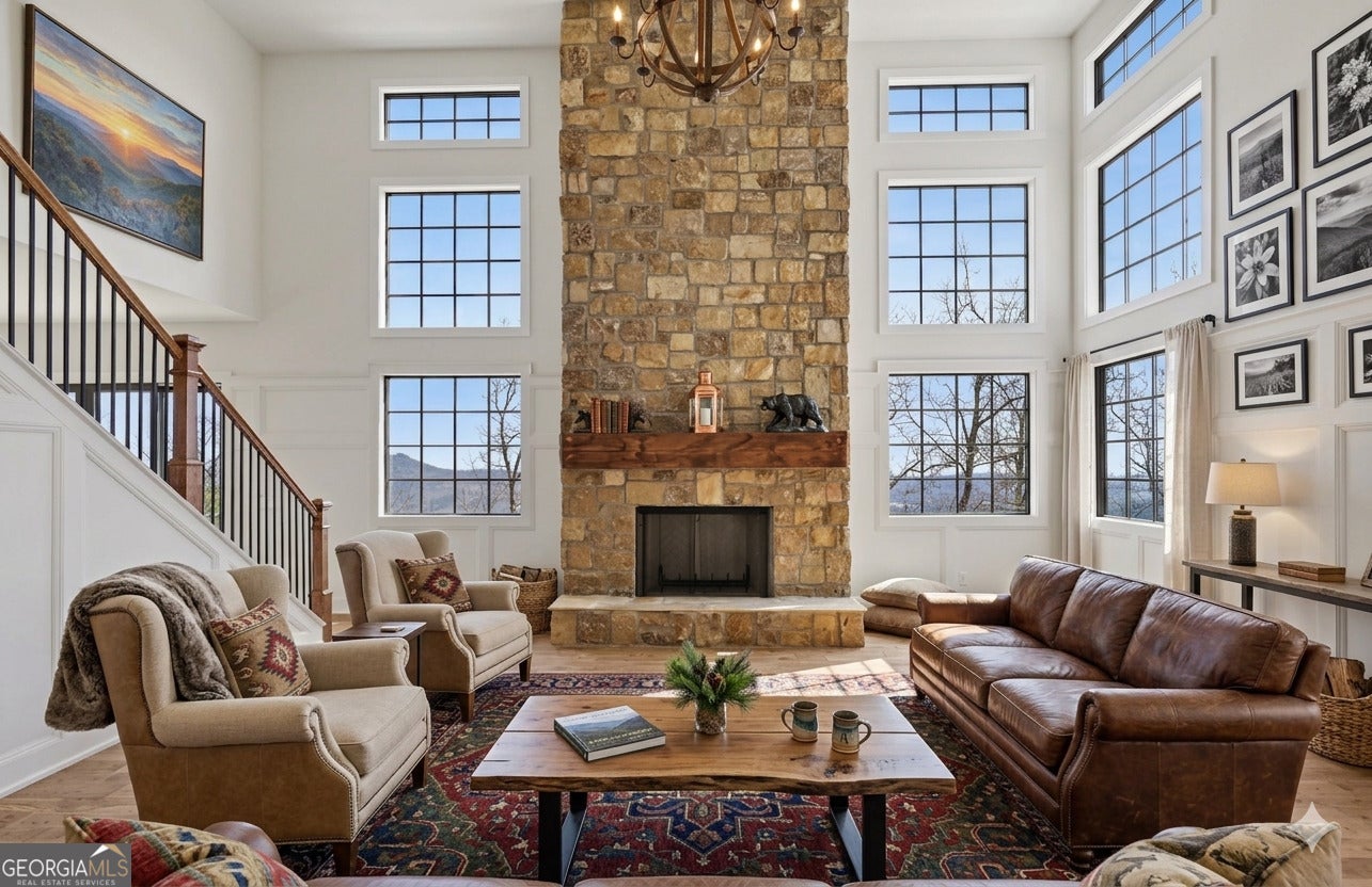 SOME PHOTOS HAVE BEEN VIRTUALLY STAGED TO ILLUSTRATE THE POTENTIAL USE OF SPACE. Breathtaking Luxury in Black Rock Mountain Estates. Experience the pinnacle of North Georgia living in this newly constructed 4,200+ square-foot masterpiece. Nestled in the prestigious Black Rock Mountain Estates, this 4-bedroom, 3.5-bathroom retreat seamlessly blends modern sophistication with the raw beauty of long-range mountain vistas. The Main Level: Grandeur Meets Comfort * A Dramatic First Impression: Step into a light-filled living area featuring 20-foot soaring ceilings, a magnificent stone fireplace, and floor-to-ceiling windows that act as a living canvas for the mountain views. * The Chef's Sanctuary: The gourmet kitchen is a dream for entertainers, boasting a commercial-grade gas range, an expansive social island, and serene woodland views that provide a peaceful backdrop for your morning coffee. * Primary Suite Retreat: Conveniently located on the main floor, the primary suite is a private sanctuary. The spa-inspired ensuite features a massive walk-in shower, a deep soaking tub, and a thoughtfully designed walk-in closet with ample space for two. Upper Level & Versatile Spaces * Guest Accommodations: The second floor offers three spacious bedrooms and two full bathrooms, providing ultimate privacy and comfort for family or visitors. * Endless Potential: Flex rooms offer the versatility to create a high-end home gym, a quiet executive office, or a state-of-the-art media room. Premium Finishes & Efficiency. Built with quality and longevity in mind. Just minutes to downtown Clayton and Lake Burton recreation areas.