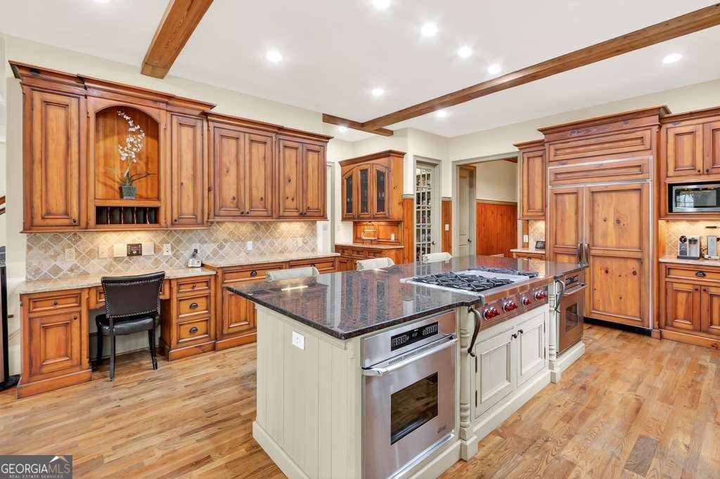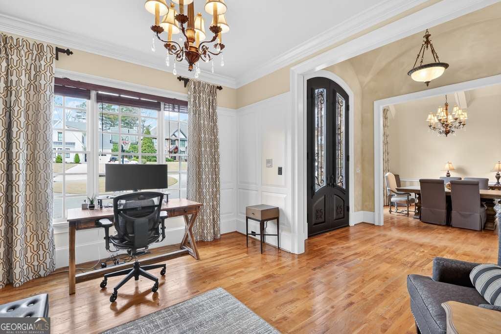 Located in the prestigious Indian Hills golf community in East Cobb, this exceptional 6-bedroom, 5.5-bath residence offers timeless elegance, thoughtful design, and outstanding living spaces throughout. The main level is designed for both comfort and entertaining, featuring a beautifully appointed chef's kitchen that opens to a warm and inviting keeping room with fireplace. Just beyond, a stunning covered veranda with its own outdoor fireplace creates the perfect setting for year-round outdoor living. The home offers the convenience of a spacious primary suite on the main level, complete with a luxurious bath featuring a whirlpool tub, separate shower, and dual vanities. A secondary guest suite on the main floor provides privacy and flexibility for visitors. Elegant architectural details such as coffered ceilings, lovely moldings, and refined finishes add character throughout the home. Upstairs, generously sized bedrooms each feature their own bath, along with a library or study that provides a quiet retreat for work or relaxation. The finished basement offers additional living and entertaining space, making this home as functional as it is beautiful. Situated on a level, fenced lot with a flat driveway, this property is located within one of East Cobb's most sought-after communities and is zoned for top-rated schools, including East Side Elementary. With its prime location, classic design, and exceptional features, this home offers an outstanding opportunity for luxury living in one of East Cobb's premier golf course communities. Contact Kenna Daws for more information.