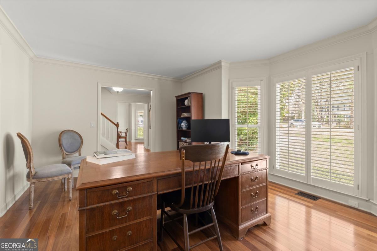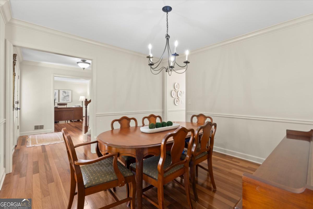 Don't miss this exceptional 4-bedroom, 3.5-bath brick traditional located in the highly sought-after Pope High School district and the active Wicks Creek swim/tennis community. Thoughtfully updated and truly move-in ready, this home offers incredible versatility, a private backyard retreat, and a rare detached garage with additional living space-an uncommon feature in the neighborhood. Tucked away from major streets yet conveniently located near community amenities, the property offers the perfect balance of privacy and connection. The current owners transformed the original drive-under garage into a bright daylight walkout basement featuring a full bath, built-in entertainment center, and custom wood cabinetry-ideal for a media room, recreation space, guest retreat, or secondary living area. A standout feature of the property is the detached two-car garage with approximately 500 square feet of conditioned living space above. This flexible space includes three separate rooms, perfect for a teen suite, home office, creative studio, fitness room, or au pair space. The structure also provides generous storage for lawn and garden equipment. Inside, beautiful Brazilian teak hardwood floors flow throughout the main level and continue up the staircase. Just off the foyer, a spacious office or sitting room opens seamlessly into the inviting family room featuring a fireplace, built-in shelving, and views of the lush, fenced backyard. The fully renovated kitchen is a true showstopper with ceiling-height custom cabinetry, quartz countertops, new stainless steel appliances, a designer backsplash, and a large island perfect for gathering and entertaining. A formal dining room completes the main level. Upstairs, the spacious primary suite offers a renovated ensuite bath and two walk-in closets. Three additional bedrooms share a well-appointed hall bath. Step outside to the newly rebuilt deck overlooking the fully fenced backyard-perfect for outdoor entertaining, play, or relaxing evenings at home. The beautifully landscaped yard features a hardscape stone patio and walkway and sits on over half an acre. Additional features include plantation shutters, double-pane windows, irrigation system, landscape lighting, and premium composite exterior shutters with decorative tiebacks. Wicks Creek offers a wonderful sense of community with a pool, two tennis/pickleball courts, playground, and a large open play field directly across the street. Conveniently located just minutes from top-rated schools, shopping, dining, and East Cobb Park, this home truly checks every box.