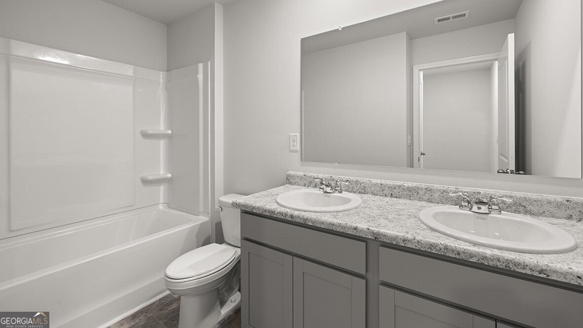 Welcome to the desirable Oaks at Cedar Grove community in Fairburn, GA that is home to 8189 Elkhorn Drive. This Belhaven floorplan is well designed with 4 bedrooms and 2.5 bathrooms in the 1,991 square feet on a basement. From the quaint front porch, the front foyer opens directly to a flex room that can be used as an office space or dining room to gather with family and friends. As you make your way through the front hallway, you will pass a powder room directly across from the staircase. Relax and unwind in the large, open concept great room. The great room flows easily into the beautiful kitchen that boasts granite countertops, stainless-steel appliances, and finely crafted cabinets. Up the stairs you'll run directly into the laundry room. To the right is the spacious primary suite bedroom. Homeowners can enjoy the luxury bathroom with dual vanity and a large walk-in closet. 3 additional bedrooms and a dual vanity bathroom make up the rest of the second floor. Reach out to us at Oaks at Cedar Grove today to get your tour of 8189 Elkhorn Drive!