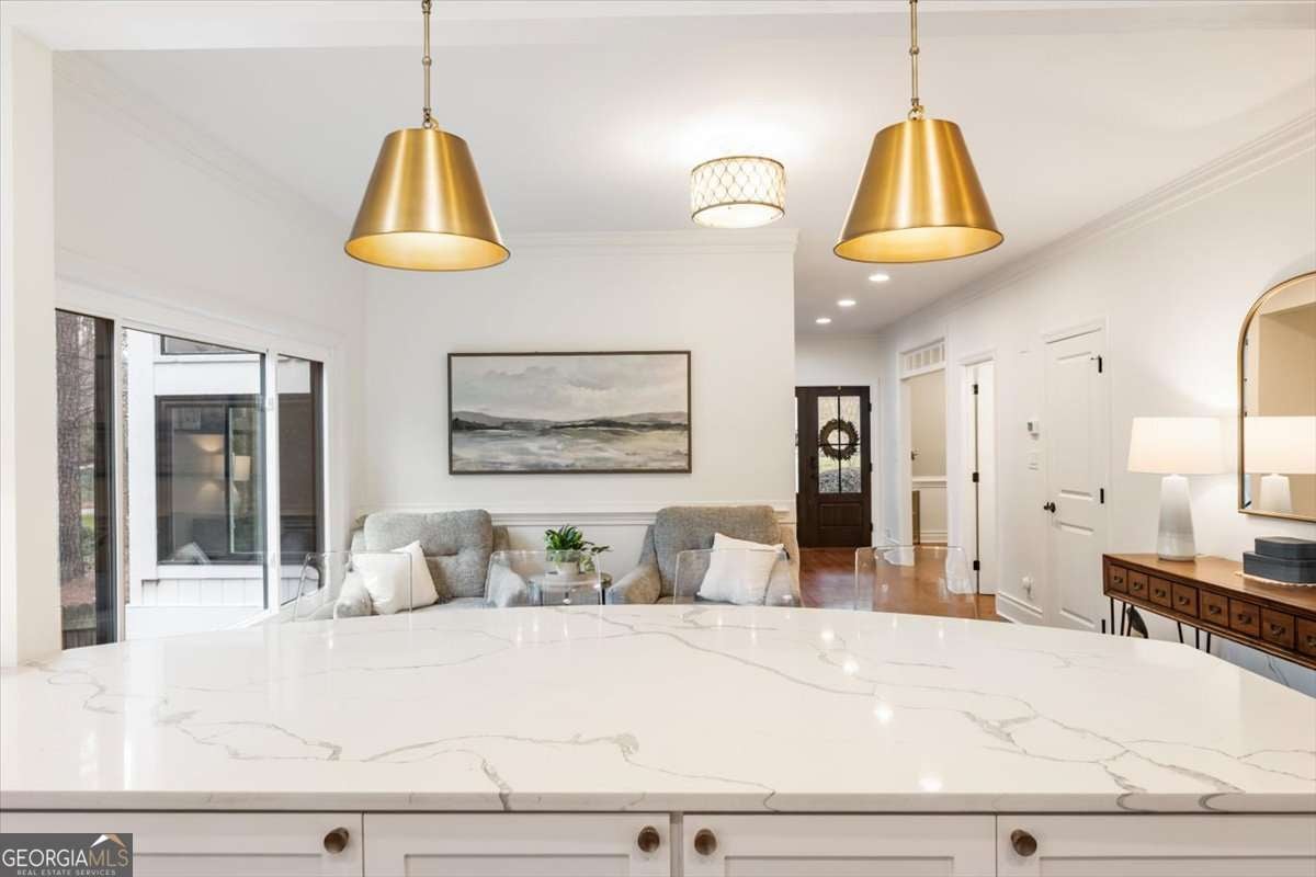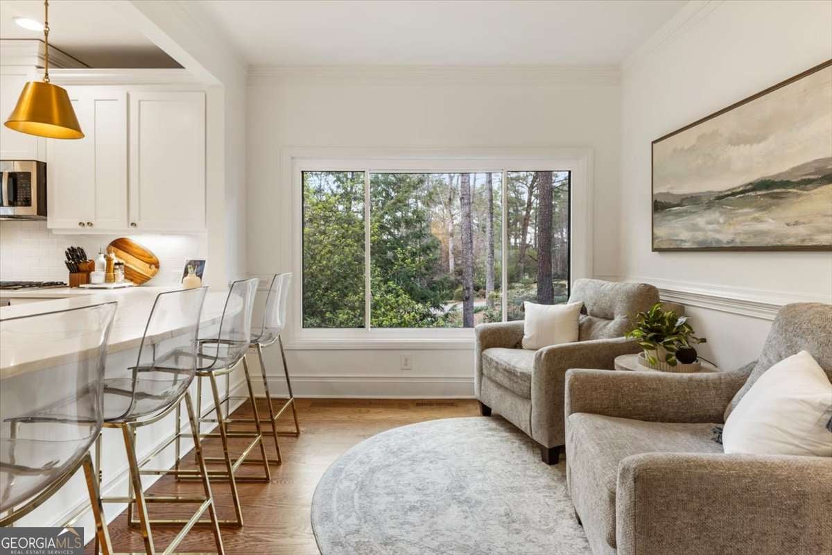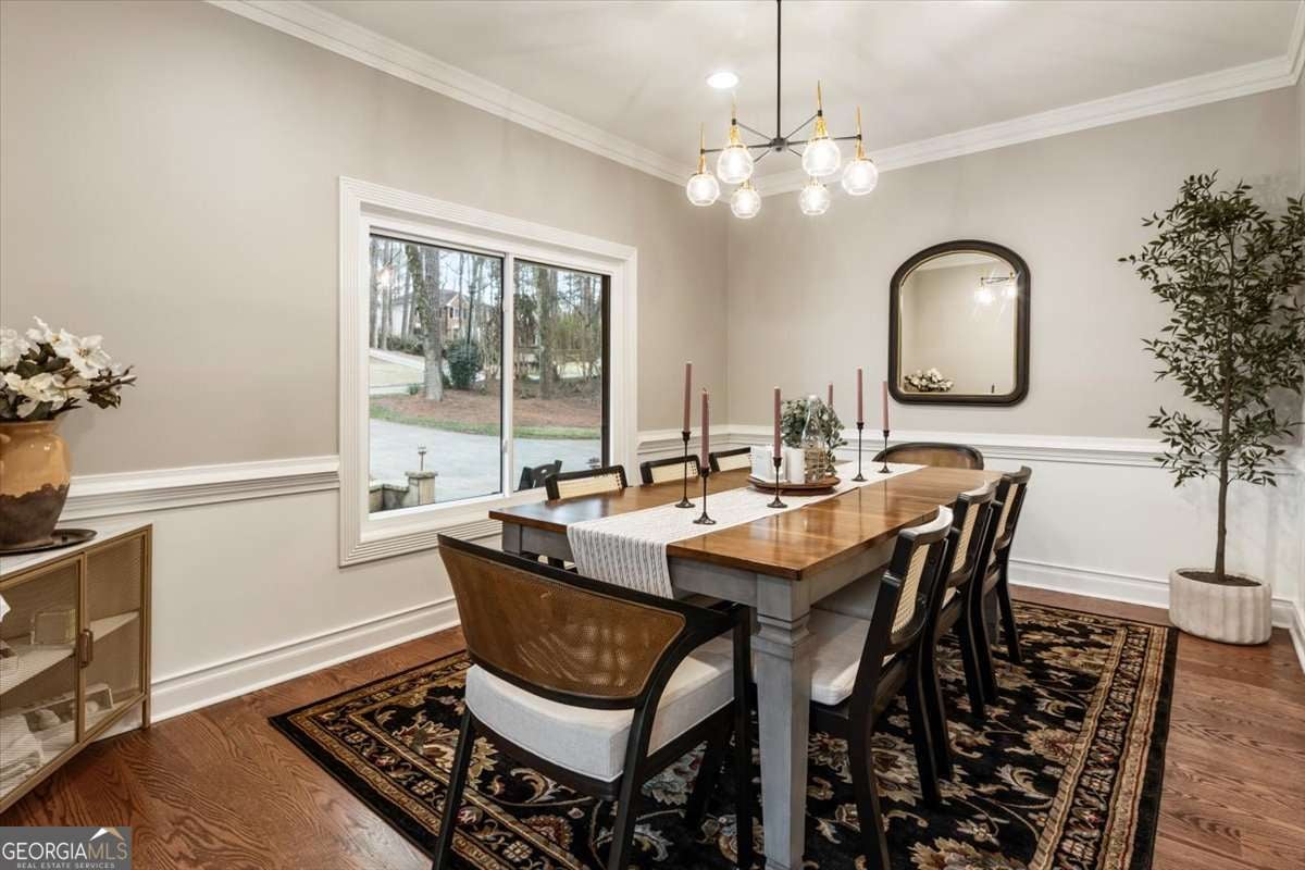 A PERFECT 10, MAGAZINE WORTHY DESIGNER FEATURES!!! LUXURIOUS home on 3/4 acre large lot in sought-after Country Club of Roswell - Willow Springs! Welcomed by a storybook lemonade sipping flagstone front porch, home offers MARVELOUS architectural details w/INTRICATE millwork, vaulted/tray ceilings, expansive new windows flooding natural light throughout, stunning hardwood floors, JUST WOW!! At the heart of the home you'll find a chef's kitchen where modern luxury and sophisticated design converge seamlessly. Instantly catching your eye is the striking pristine white cabinetry, subway tile, expansive breakfast bar, large walk-in pantry, quartz countertops, built-in ice maker & bar area, Thermador/Bosch stainless-steel appliances, all seamlessly opening to keeping/breakfast area. First floor is complete with vaulted fireside family room, formal dining room, full bath, large laundry room and mud room right off the garage entry. Upper floor features the owner's suite, exuding a sense of grandeur promising a retreat where everyday living meets five-star luxury, complete with tray ceilings, hardwood floors, sitting area, with large windows overlooking private wooded escape. DECADENT SPA BATH features rich tiles, quartz counters, expansive walk-in shower/bathtub combo & custom walk-in closet. Two additional bedrooms and large guest bath featuring dual vanities complete this level. The daylight walk-out terrace level highlights a family room/gathering area, two guest bedrooms, full bathroom, plus office/bonus room. Relax and unwind in the stunning outdoor retreat, featuring Trex deck off main, large patio below, playground, with cozy fireplace overlooking the expansive professionally landscaped backyard large enough for a football team, roasting s'mores around the firepit, or simply unwinding the day away. Did I mention the newer windows, HVAC, hot water heater, and brand new roof!!! The Country Club of Roswell (membership not included) offers resort amenities such as a pool, golf course, tennis courts, workout facilities, bar, wine club/dinners, full dining service, and much more! Leave the car behind in this friendly golf cart community offering loads of family activities, concerts/movies at the park and more throughout the year! Why would you want to live anywhere else?