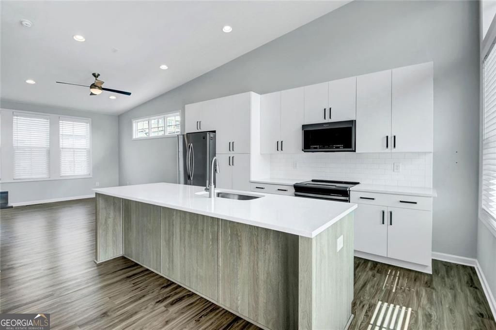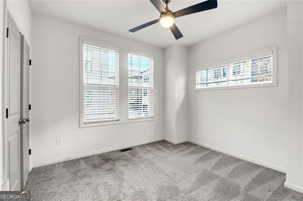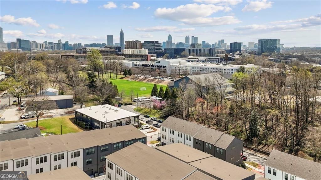 Experience elevated intown living at 900 Brees Ct - a distinctive, like new end-unit townhome near Atlanta's vibrant and rapidly growing West Midtown and Upper Westside districts. Designed with a unique and functional floor plan with true penthouse-style appeal and skyline views of Midtown Atlanta with benefits of added privacy as an end unit. The upper-level living space offers an airy, open-concept layout with soaring vaulted ceilings and hardwood floors seamlessly connects the kitchen, dining, and living areas - perfect for entertaining or enjoying everyday living above the city. The kitchen features a large island, ample cabinet storage, quartz countertops, and stainless steel appliances. Large windows bring in abundant natural light while framing impressive urban views. Step outside onto the private oversized deck, an extension of the living space for relaxing mornings with coffee, outdoor dining, or enjoying Atlanta's skyline sunsets. On the main level, the 2 bedroom, 2 full bath layout designed for comfort and flexibility work well for guests, roommates, or a dedicated work-from-home setup. For convenience, the laundry is also located on this level. This home features an oversized 2 car tandem garage with extra storage space on the terrace level. Community features: a green space, gathering area with fire pit, and plenty guest parking. Move-in ready and low maintenance, this home offers convenience and the character that makes intown living special. Located within walking distance from Westside Provisions and just minutes from top restaurants, grocery stores, breweries like Monday Night Brewing, retail, and entertainment such as the Interlock and The Works. Easy access to major highways and downtown Atlanta, this home delivers location, lifestyle, and value in one complete package.