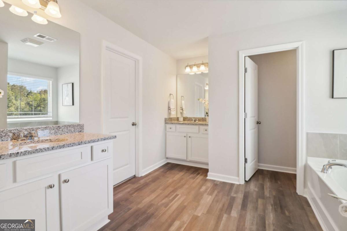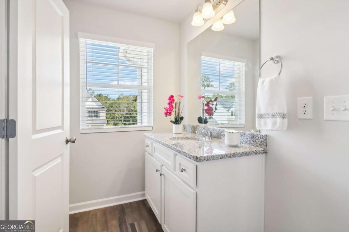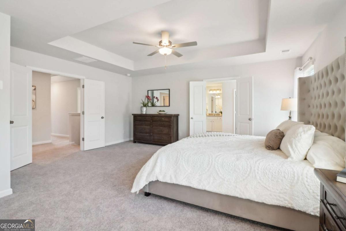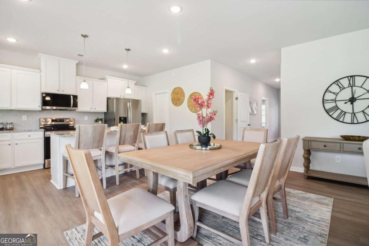 The large backyard and extended driveway provide ample space for extra parking or outdoor enjoyment. Inside, you'll find grand interiors and an open-concept layout. Enter through a dramatic foyer into a flexible formal space that can serve as a home office, guest room, or additional sitting area. The separate dining room and large great room, complete with a stunning gas fireplace, are perfect for entertaining. The dream kitchen is bathed in natural light and features LG stainless steel appliances, abundant cabinet space, and thoughtful design details. Upstairs, the expansive owner's suite includes a private sitting area and a spa-inspired en suite bathroom. Spacious secondary bedrooms provide comfort for family or guests. Don't miss this rare opportunity to own a stylish, well-appointed home with exceptional incentives in one of Loganville's most desirable communities. Welcome to Stephens Landing in the heart of Loganville, Gwinnett County. The Bellwood Plan offers luxurious living. *Stock photos