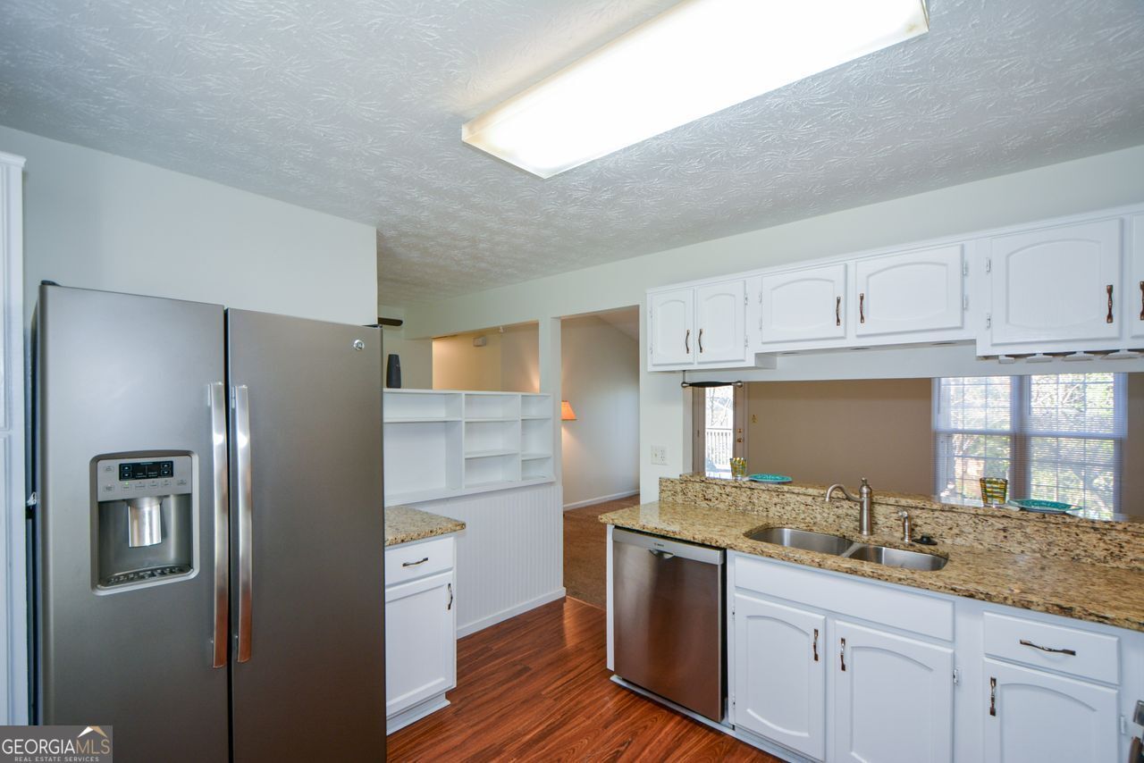 Rare Find! A house in Alpharetta, 30022 zip code, under $450,000. This wonderful 3-bedroom, 2.5 bath home offers an open concept living room and dining room. Walk out from your living room onto a large deck overlooking a private fenced backyard, which is perfect for relaxing and entertaining. This house is move-in-ready with fresh, bright, clean new interior paint on the walls and trim. The kitchen has white cabinets, stone counters, brick backsplash, under counter lighting, and ss appliances. Three bedrooms and two full baths are on the upper level. The lower level has a cozy gas logs fireplace and additional living space, laundry, and half bath. Brand new water heater. Fantastic location that is walking distance to top rated schools, restaurants, and shopping. What could be better? There's no HOA. Look no further, this is the one!