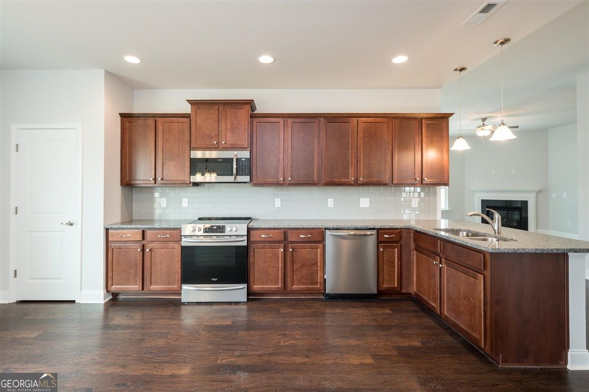 Beautiful new construction ranch home in the desirable Park Place community in Bowdon! This spacious 4 bedroom, 3 bathroom home offers 2,316 square feet of thoughtfully designed living space on a .378 acre lot. The open concept layout features a large kitchen with granite countertops, tile backsplash, stainless steel appliances, and an expanded layout perfect for entertaining. The kitchen flows seamlessly into the living area, highlighted by a cozy electric fireplace and durable LVP flooring throughout the main living spaces. The home also features a formal dining area with tray ceiling and decorative trim, adding character and style for gatherings and special occasions. The primary suite includes a double vanity, separate tub and shower, and spacious walk-in closet. Three additional bedrooms and well-appointed bathrooms provide plenty of space for family, guests, or a home office. Additional features include a Daeko smart lighting system, 2-car garage, and Adams Homes' 1-2-10 builder warranty for peace of mind. Conveniently located just minutes to I-20, downtown Carrollton, and Villa Rica, and within walking distance to Bowdon High School. Current price reflects $65,000 in builder incentives. Multiple new construction homes available in the Park Place community with varying floor plans and lot sizes. Contact listing agent for additional inventory and builder incentives.