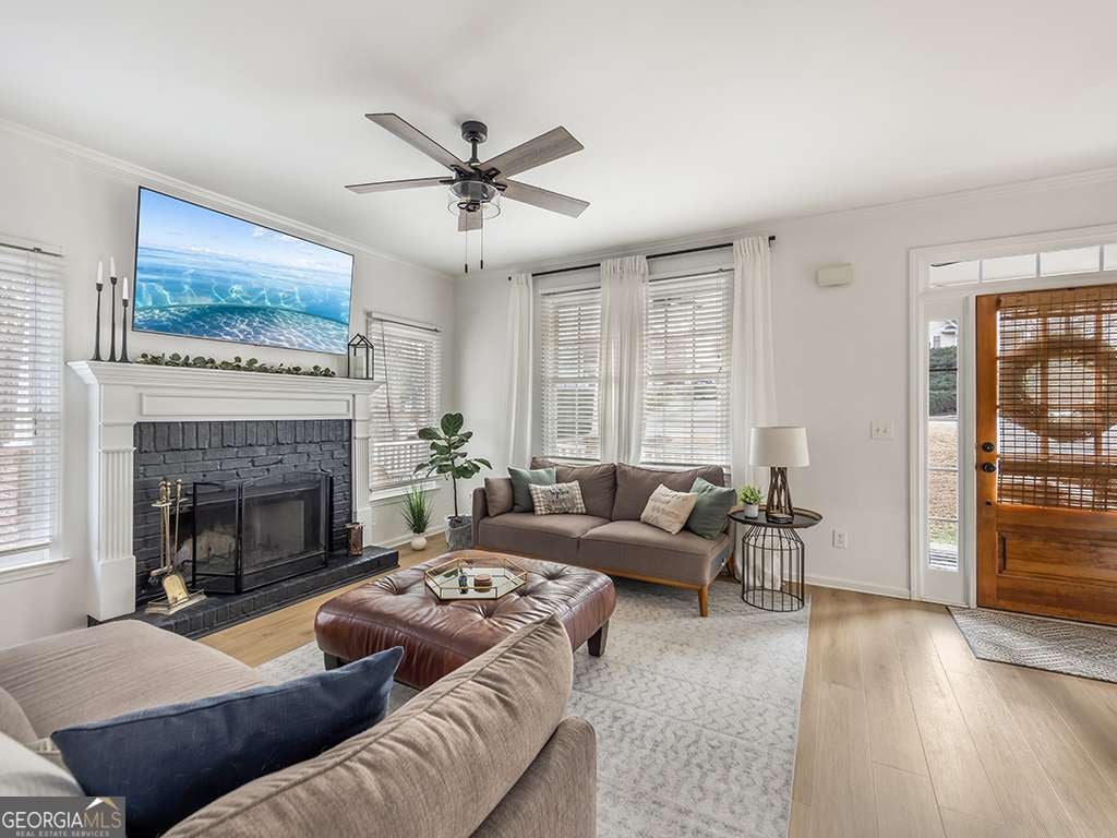 Welcome Home to 150 Mountain Vista Blvd., Canton, GA 30115 - a beautifully updated home offering timeless charm, thoughtful upgrades, and inviting indoor and outdoor living spaces in a desirable location. The main level living room is warm and inviting, centered around a charming wood-burning fireplace and white oak luxury vinyl plank flooring throughout. The fully remodeled kitchen features quartz countertops, brand new stainless steel appliances, blending modern style with everyday functionality. The staircase has been upgraded with white oak hardwood treads and modern handrails, adding a refined architectural touch. This well-maintained home features 3 bedrooms and 3.5 bathrooms, with all bedrooms conveniently located upstairs. The light-filled primary suite includes a spacious walk-in closet and an ensuite bath with double vanities, a soaking garden tub, and a separate stand-up shower. The two additional bedrooms offer character and comfort, with one carpeted and the other featuring hardwood flooring that continues from the upstairs landing. Additionally, a spacious bonus room above the garage can easily serve as a media room, home office, gym, or playroom. In addition to the three bedrooms, the home offers additional large flexible spaces that create excellent opportunities for additional living uses. The finished basement includes a large room with a closet and a full bathroom, ideal for guest space, an office, or extended living area. Outdoor living shines with a charming covered wrap around front porch with ceiling fan, along with a beautifully renovated backyard hardscape featuring two patios and stone steps that wrap around both sides of the home, creating multiple areas to relax and entertain. The rear upper deck provides an amazing view of the forest and stream that cuts through the terrain, tranquility at its finest. Conveniently located just minutes from downtown Canton, The Mill on Etowah, The Outlet Shoppes at Atlanta, Northside Hospital Cherokee, parks, libraries, and easy access to I-575. This home offers the perfect blend of comfort, convenience, and lifestyle.