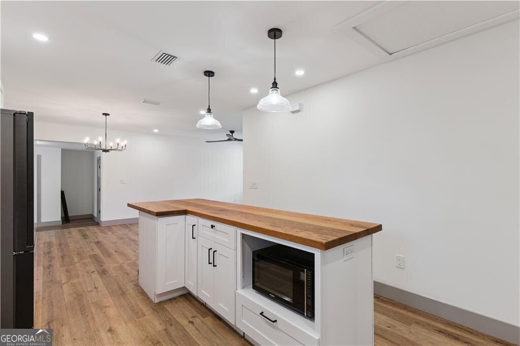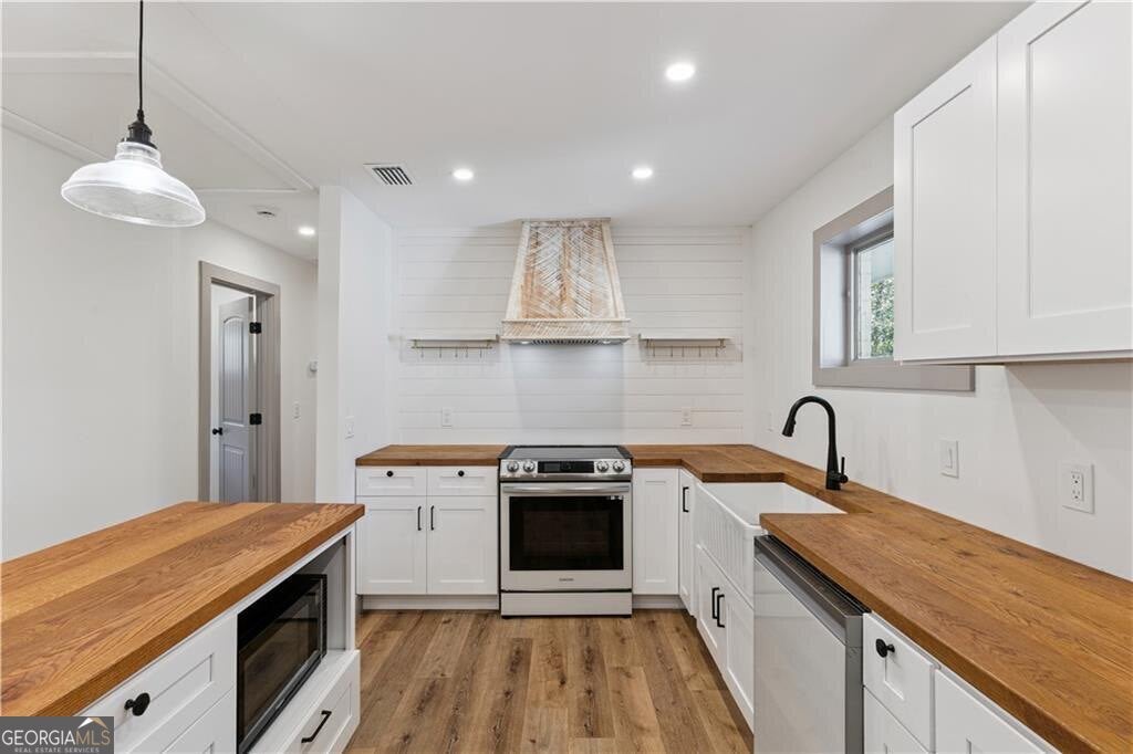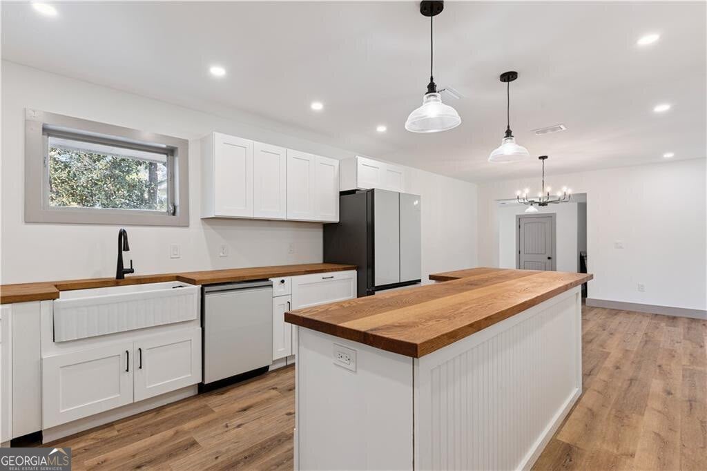 Completely remodeled and GORGEOUS! The home was fully renovated in 2023 and features spray foam insulation, updated plumbing, and updated electrical, offering comfort and peace of mind. Floor plan offers separate den with lots of windows, living room, kitchen with island and dining area. The kitchen is stunning and offers custom made white oak countertops, soft close drawers and BEAUTIFUL custom hood vent built with reclaimed white-washed wood. Situated on a corner lot in a great location, this property provides convenient access to everything Jesup has to offer. Move-in ready and truly a must-see! This beautifully updated home was originally a three-bedroom home, it is currently configured as a spacious two-bedroom with the third bedroom converted into an oversized walk-in closet for the primary suite. Home Warranty Included. Seller licensed Realtor in GA. Roof 15 yrs, Water Heater - newer, HVAC 3 yrs. UTILITIES: City Water & Sewer. GA Power. Easy to show!