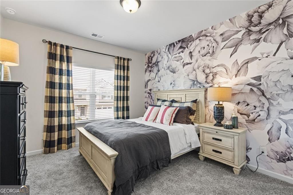 Move-In Ready May! The Maddux II plan in Sanders Park by Smith Douglas Homes, a new townhome community in Austell, GA. This thoughtfully designed 3-bedroom, 2.5-bath townhome offers a two-car garage and an open-concept layout ideal for today's lifestyle. The main level features a spacious living-kitchen-dining combination, creating a seamless flow for everyday living and entertaining. The entry foyer includes a convenient coat closet, perfect for greeting guests. A sleek linear fireplace anchors the family room, while black interior finishes add a modern, upscale touch. The kitchen is well-appointed with upgraded cabinetry including 42" upper cabinets for added storage, a tile backsplash, Quartz countertops, pantry, and luxury vinyl plank (LVP) flooring. LVP flooring continues throughout the main living areas. Tile flooring in the primary bath, hall bath, and laundry room. An eye-catching open iron-rail staircase on both the first and second floors leads upstairs to the private living quarters. The primary suite features a large walk-in closet and a spacious tiled shower and garden tub. Two additional bedrooms, a shared hall bath, and a conveniently located laundry room complete the second floor. Enjoy 9-foot ceilings on both levels, enhancing the open and airy feel of the home. Rear paio overlooks green space. Planned neighborhood amenities include a community pool, and lawn maintenance is included in the HOA, giving you more time to enjoy the things you love. Photos are representative of the actual home not of home. Seller incentives available with the use of a preferred lender. Don't miss this opportunity to own a new construction townhome in Austell-schedule your tour today!