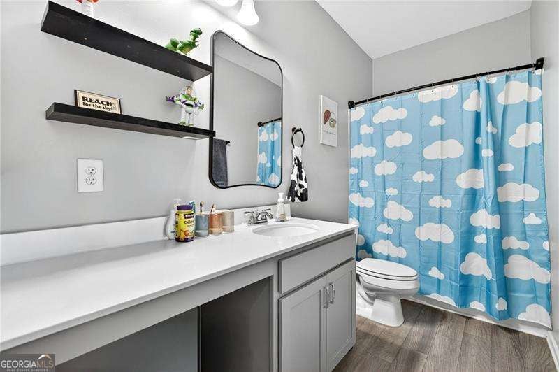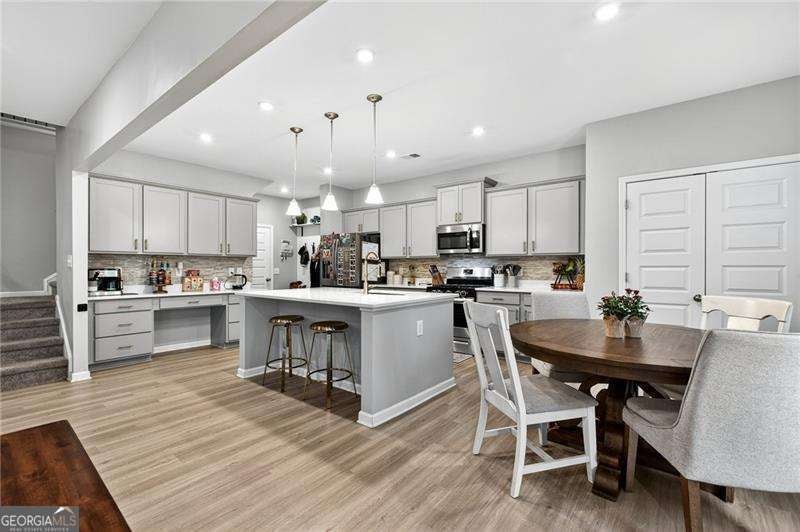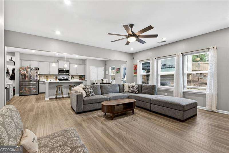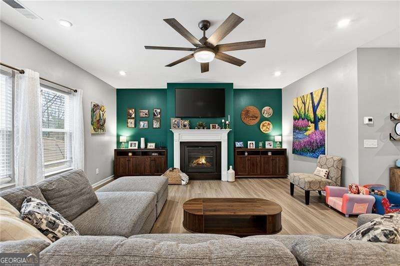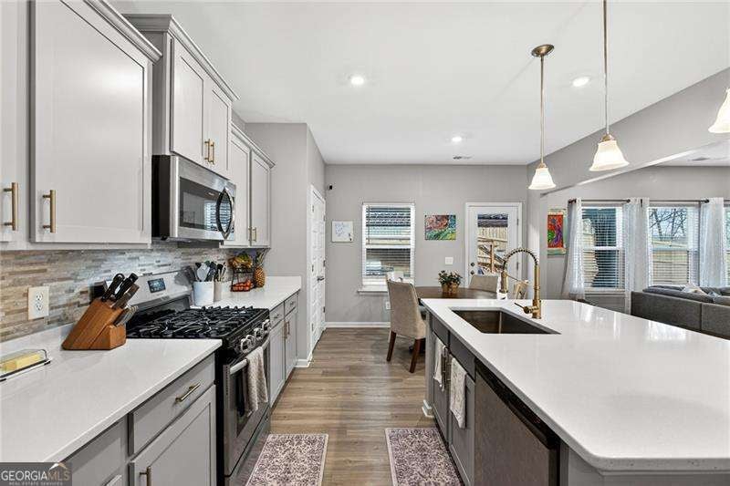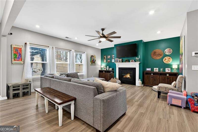 Welcome Home to this nearly new, well-maintained, 4-bedroom, 2.5-bath home offering 2,600 sq ft of perfectly appointed living space situated in the up-and-coming growing town of Ball Ground. This charming home boasts a cul-de-sac lot on a quiet, family-friendly street. You are immediately greeted by the open floor plan that flows seamlessly through the home right out to the oversized private fenced rear yard featuring a newly expanded patio area with plenty of room to grill, relax and entertain. Unwind from your day as you take in the fresh air, peace and quiet this neighborhood offers while watching the kids play. Additional storage is provided with the 10 x 12 shed-perfect for storing lawn equipment, tools, or seasonal decor. This space could easily be finished providing additional square footage for crafting, gaming or just entertaining. The home features gleaming LVP flooring and custom trim throughout the main level of the home which boasts a formal dining room with stylish accent wall and open concept floorplan. The main level has been thoughtfully updated, including a stylish accent wall in the dining room. The oversized living room features a wall of windows creating an open airy feeling, a cozy gas fireplace and opens seamlessly to the Chef's kitchen, showcasing tons of solid surface countertops, custom backsplash, stainless steel appliances, upgraded cabinetry, island breakfast bar, workspace/coffee bar, breakfast area and plenty of pantry space. The spacious primary ensuite includes an upgraded walk-in shower for a touch of luxury and oversized his and her closet. Designer decorated kids rooms await your little ones. And most importantly the convenience of a laundry room located in close proximity to all of the bedrooms. Situated less than a mile from up and coming downtown Ball Ground, offering quick and easy access to I-575, restaurants, shops, parks and local attractions. A warm, welcoming community makes this the perfect place to call home. Make your appointment to tour this one of a kind property today!!!
