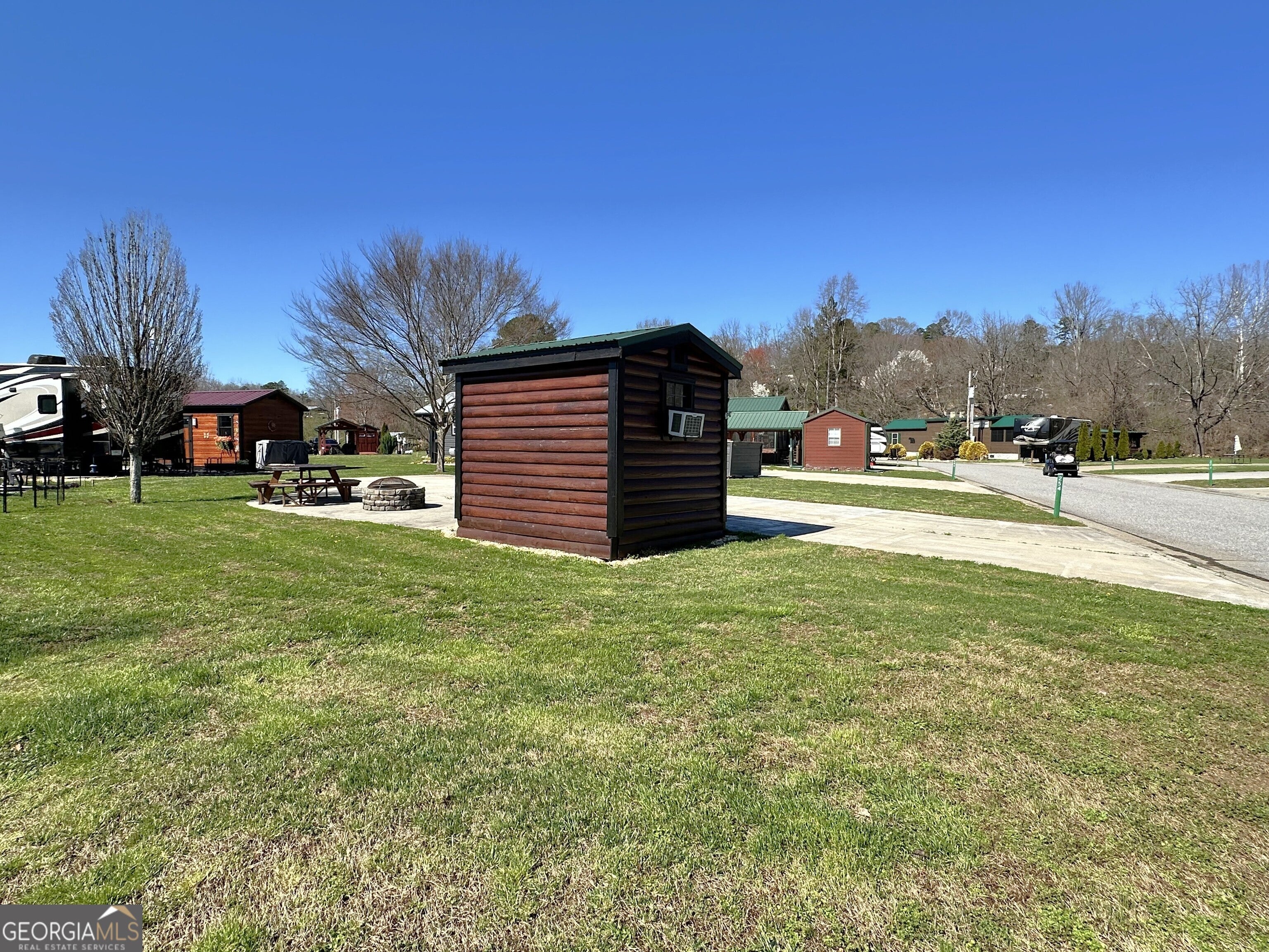 Unique shaped RV lot with plenty of green space. Wide cement RV pad will handle the largest of RV's and parking for your other vehicles. Nice 8x8 storage shed that's finished off on the inside. Additional concrete pad allows for firepit and picnic table seating. Easy access back-in site and mountain views. A beautiful vacation lot, future permanent residence or rental property. Local lender financing available! Crossing Creeks RV Resort and Spa welcomes class A,B and C RV's, as well as travel trailers and 5th Wheels!
