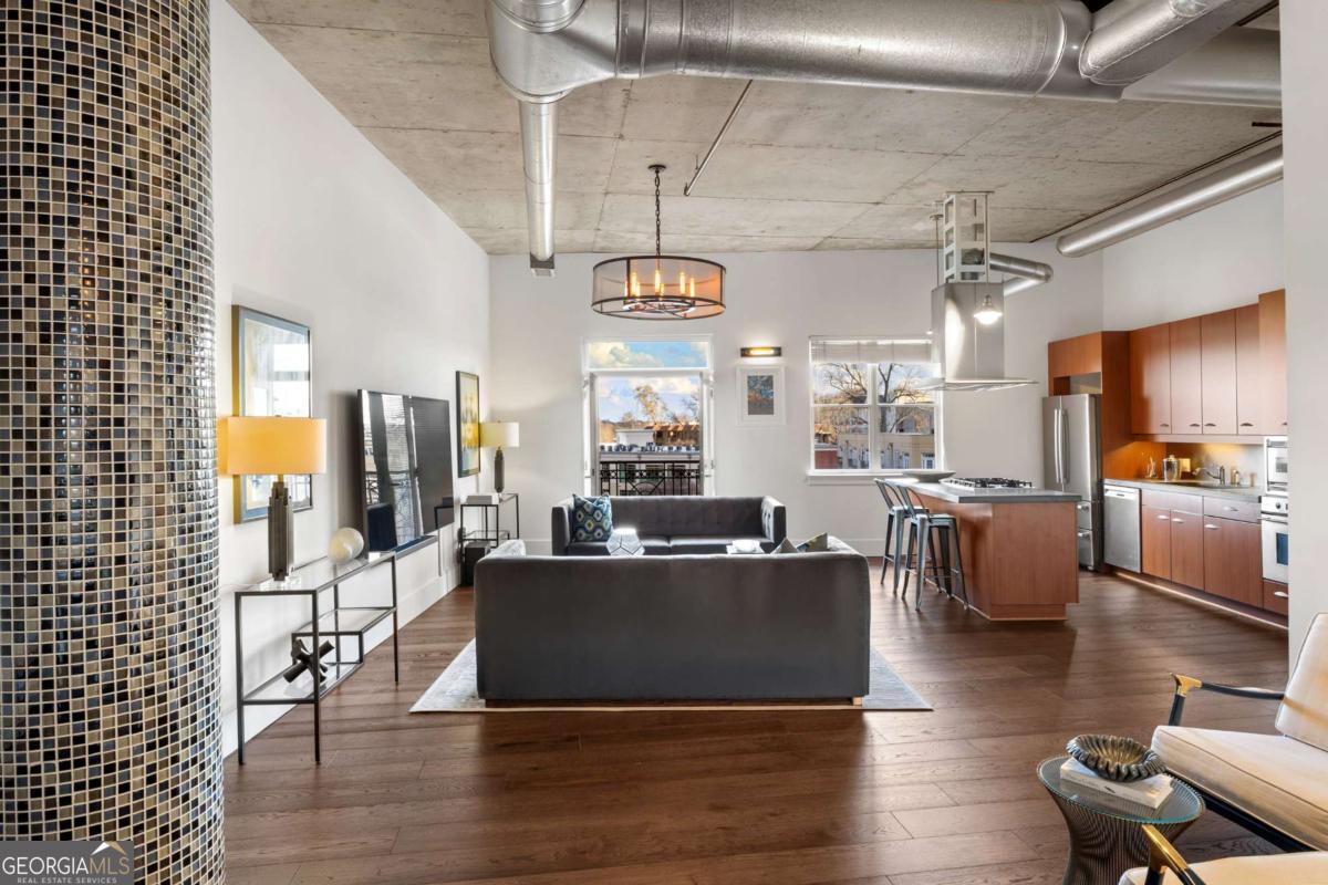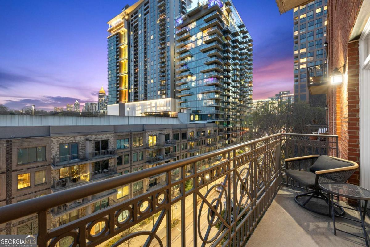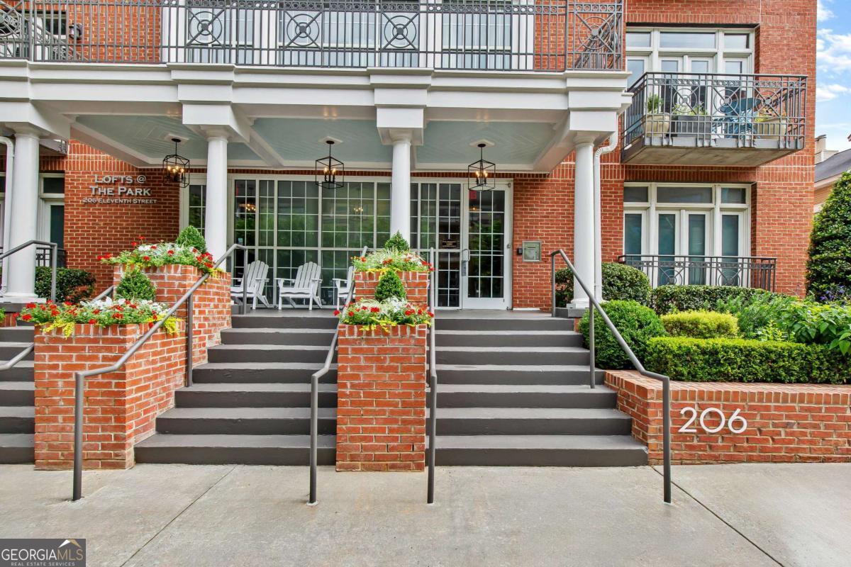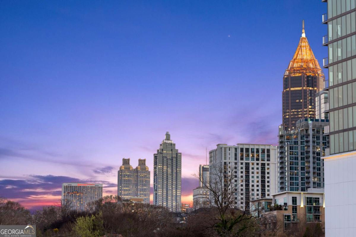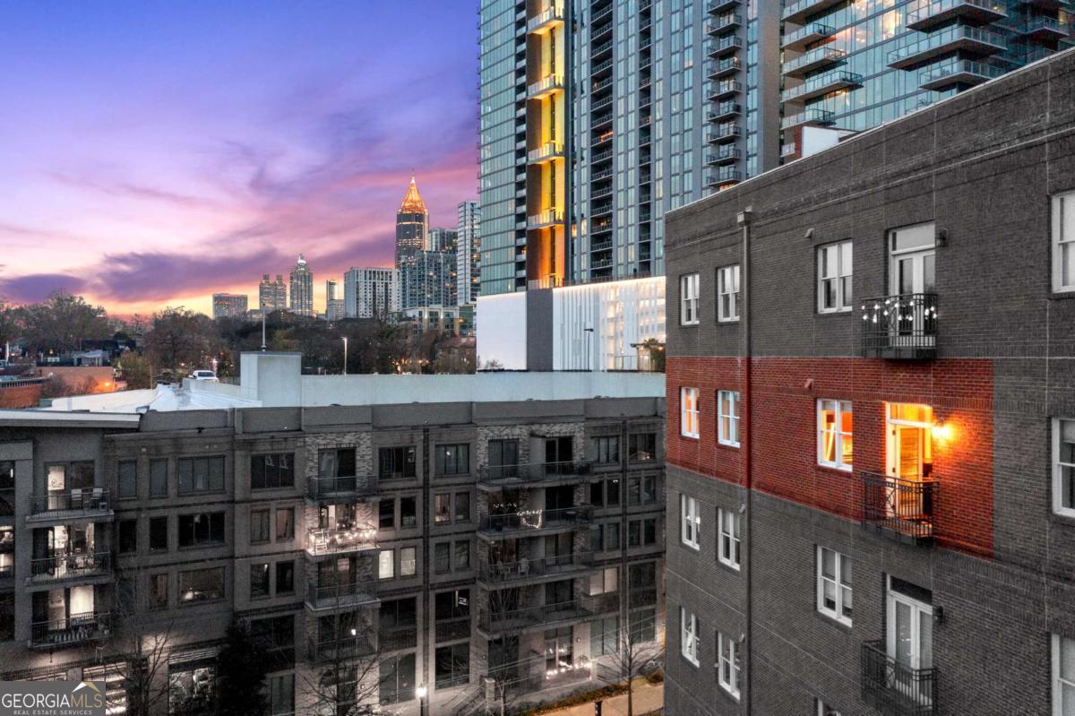 Perfectly positioned just one block from Piedmont Park, this striking corner loft offers a rare opportunity to experience authentic Midtown loft living with panoramic park and skyline views. Set within one of Midtown's most coveted boutique loft buildings, the residence blends industrial architecture, natural light, and walkable city lifestyle in a way that few homes in Atlanta can offer. Occupying the highly sought-after southeast corner, the home is filled with beautiful natural light from sunrise through late afternoon. Two private balconies extend the living space outdoors, framing unobstructed views of Piedmont Park's treetops and the Atlanta skyline-an exceptionally rare vantage point that brings the energy of the city together with the tranquility of green space. Inside, the residence showcases true loft architecture, where scale, light, and texture define the living experience. Soaring 11.5-foot exposed concrete ceilings, exposed ductwork, and newly refinished hardwood floors create a bold architectural canvas, while expansive windows flood the interiors with natural light and open views in every direction. The result is a living space that feels both dramatic and effortlessly livable-equally suited for quiet mornings overlooking the park or evenings entertaining guests. At the center of the home, the kitchen is thoughtfully designed to balance form and function. Poured-in-place concrete countertops, premium SieMatic cabinetry, and a generous island with gas range create a refined yet industrial aesthetic consistent with the loft's architectural character. A full suite of Bosch appliances, including a gas stove, dishwasher, and refrigerator, along with a GE microwave, provides modern performance within a beautifully streamlined design. The primary suite serves as a peaceful retreat above the city, where French doors open directly onto a private balcony overlooking Piedmont Park. Morning light filters through the trees while the skyline rises beyond, creating a uniquely serene Midtown setting. The ensuite bath features a double vanity and whirlpool tub, offering comfort and privacy within the suite. The secondary bedroom offers exceptional versatility and is enhanced by custom built-ins and a Murphy bed, allowing the space to easily transition between guest accommodations, office, or creative studio. A full laundry room with new front-loading washer and dryer adds everyday convenience-an amenity rarely found in Midtown condominium living. The residence is located within an intimate 24-residence boutique building, where this home is one of only four two-bedroom residences, creating a level of exclusivity seldom found in Midtown. With two balconies, authentic loft architecture, and uninterrupted park views just steps from Piedmont Park, the home offers a lifestyle that seamlessly blends urban energy with natural beauty. Furniture is negotiable, presenting the opportunity for a turnkey Midtown retreat in one of Atlanta's most walkable and vibrant neighborhoods.