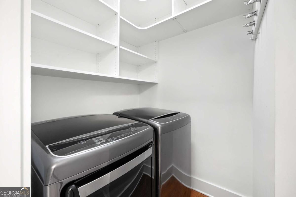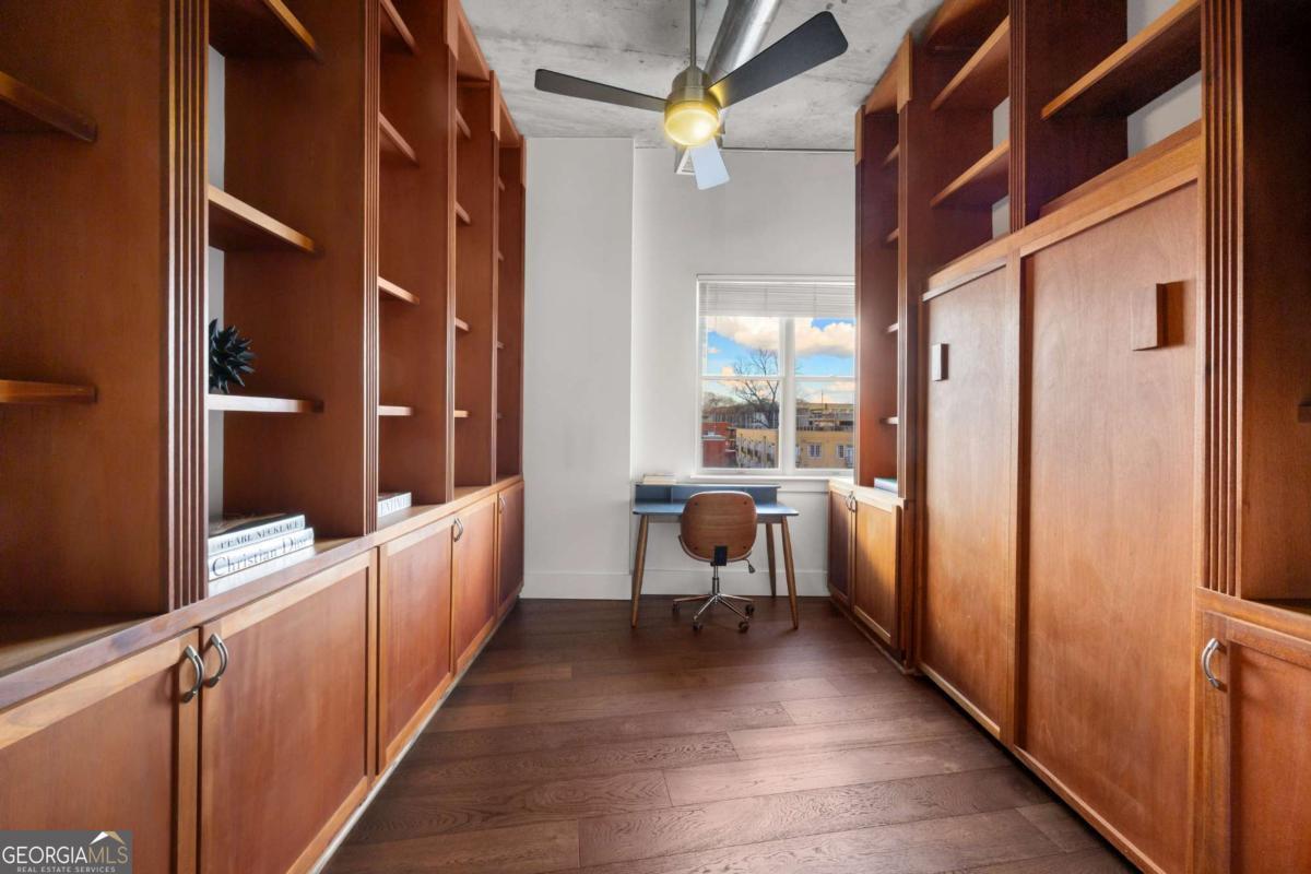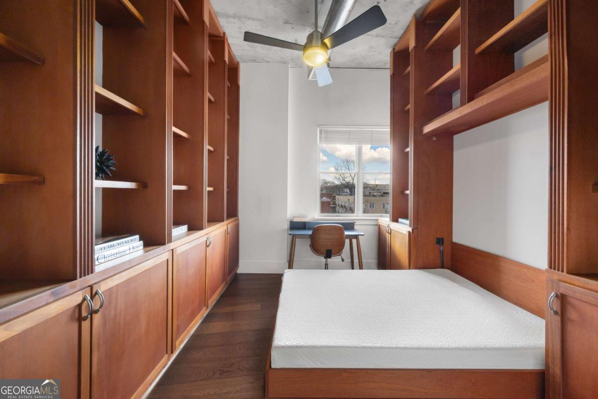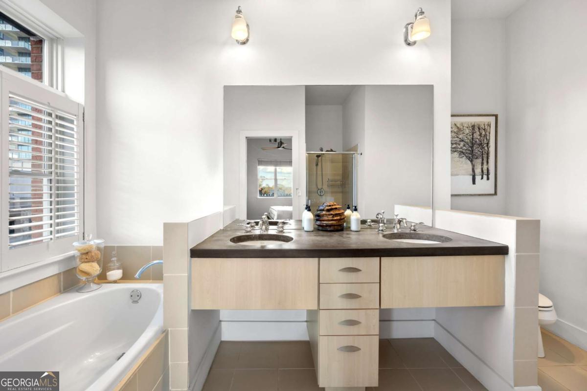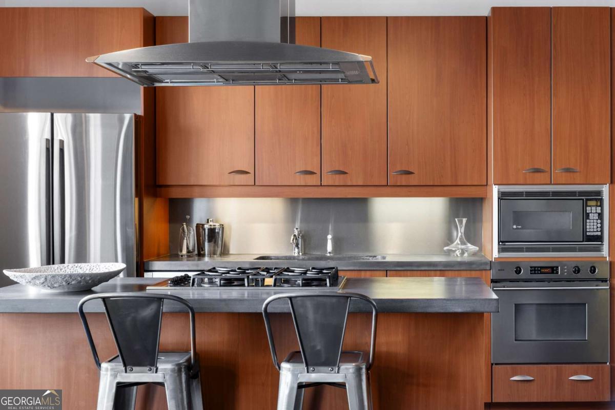 Perfectly positioned just one block from Piedmont Park, this striking corner loft offers a rare opportunity to experience authentic Midtown loft living with panoramic park and skyline views. Set within one of Midtown's most coveted boutique loft buildings, the residence blends industrial architecture, natural light, and walkable city lifestyle in a way that few homes in Atlanta can offer. Occupying the highly sought-after southeast corner, the home is filled with beautiful natural light from sunrise through late afternoon. Two private balconies extend the living space outdoors, framing unobstructed views of Piedmont Park's treetops and the Atlanta skyline-an exceptionally rare vantage point that brings the energy of the city together with the tranquility of green space. Inside, the residence showcases true loft architecture, where scale, light, and texture define the living experience. Soaring 11.5-foot exposed concrete ceilings, exposed ductwork, and newly refinished hardwood floors create a bold architectural canvas, while expansive windows flood the interiors with natural light and open views in every direction. The result is a living space that feels both dramatic and effortlessly livable-equally suited for quiet mornings overlooking the park or evenings entertaining guests. At the center of the home, the kitchen is thoughtfully designed to balance form and function. Poured-in-place concrete countertops, premium SieMatic cabinetry, and a generous island with gas range create a refined yet industrial aesthetic consistent with the loft's architectural character. A full suite of Bosch appliances, including a gas stove, dishwasher, and refrigerator, along with a GE microwave, provides modern performance within a beautifully streamlined design. The primary suite serves as a peaceful retreat above the city, where French doors open directly onto a private balcony overlooking Piedmont Park. Morning light filters through the trees while the skyline rises beyond, creating a uniquely serene Midtown setting. The ensuite bath features a double vanity and whirlpool tub, offering comfort and privacy within the suite. The secondary bedroom offers exceptional versatility and is enhanced by custom built-ins and a Murphy bed, allowing the space to easily transition between guest accommodations, office, or creative studio. A full laundry room with new front-loading washer and dryer adds everyday convenience-an amenity rarely found in Midtown condominium living. The residence is located within an intimate 24-residence boutique building, where this home is one of only four two-bedroom residences, creating a level of exclusivity seldom found in Midtown. With two balconies, authentic loft architecture, and uninterrupted park views just steps from Piedmont Park, the home offers a lifestyle that seamlessly blends urban energy with natural beauty. Furniture is negotiable, presenting the opportunity for a turnkey Midtown retreat in one of Atlanta's most walkable and vibrant neighborhoods.