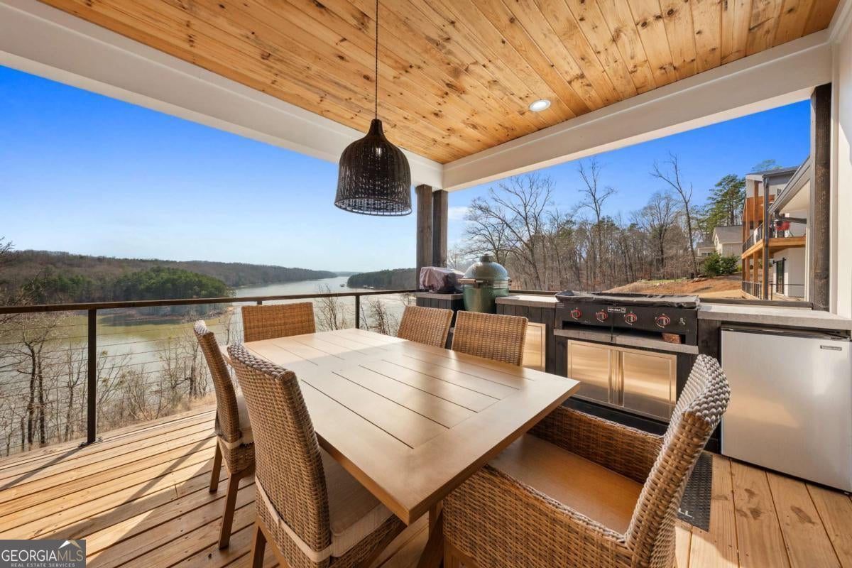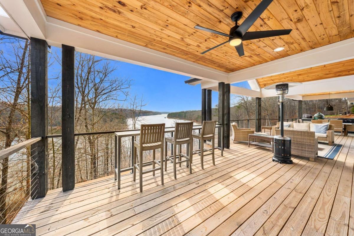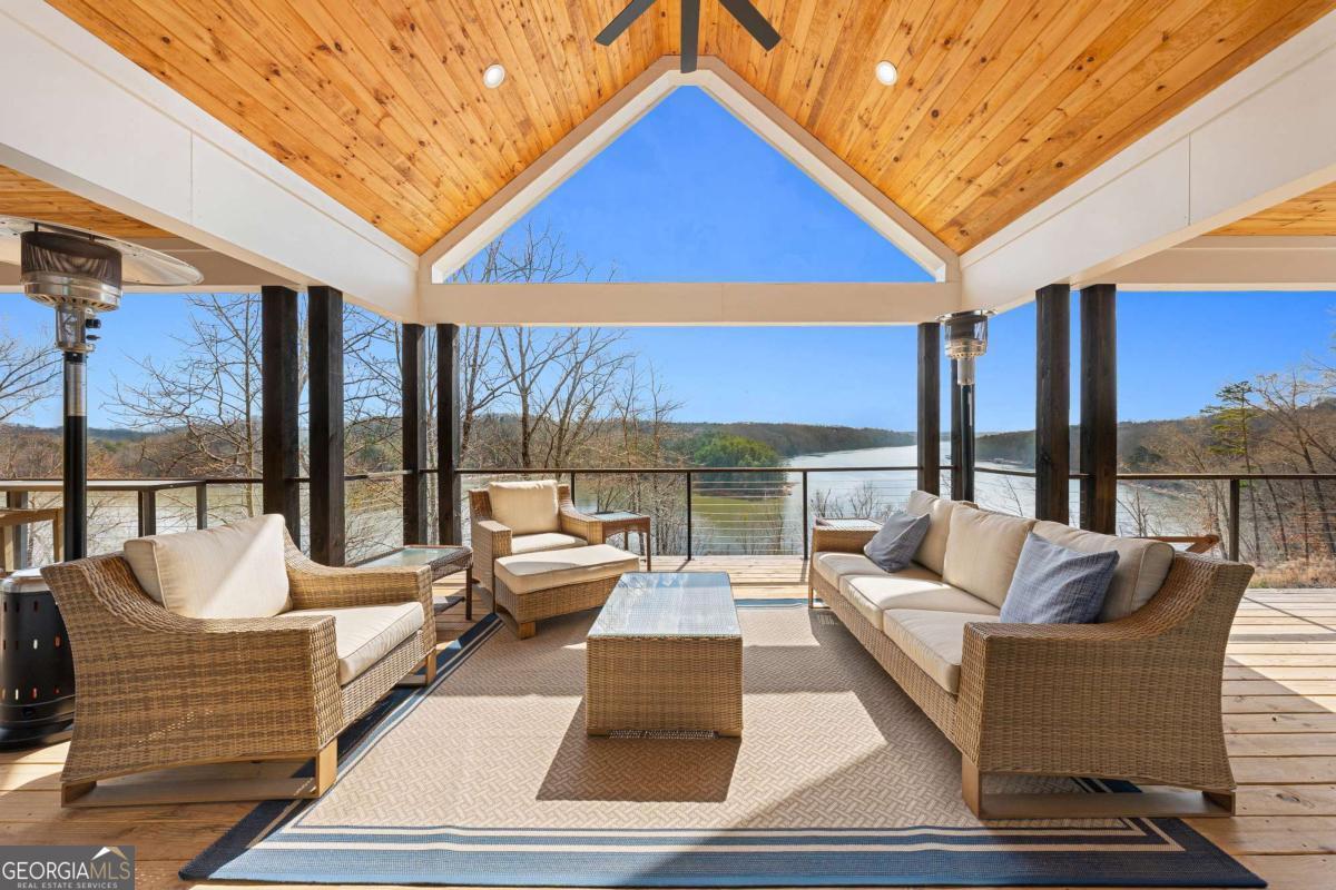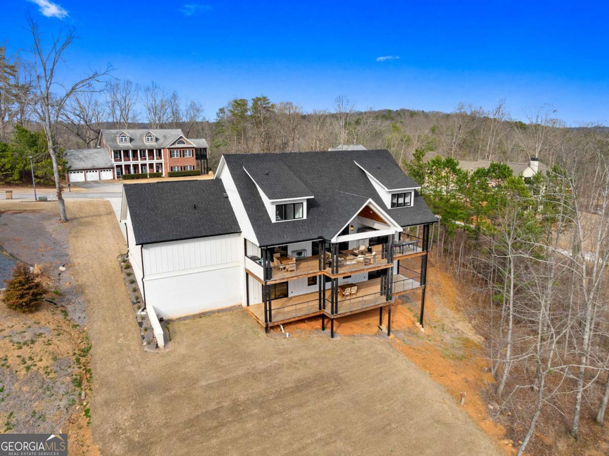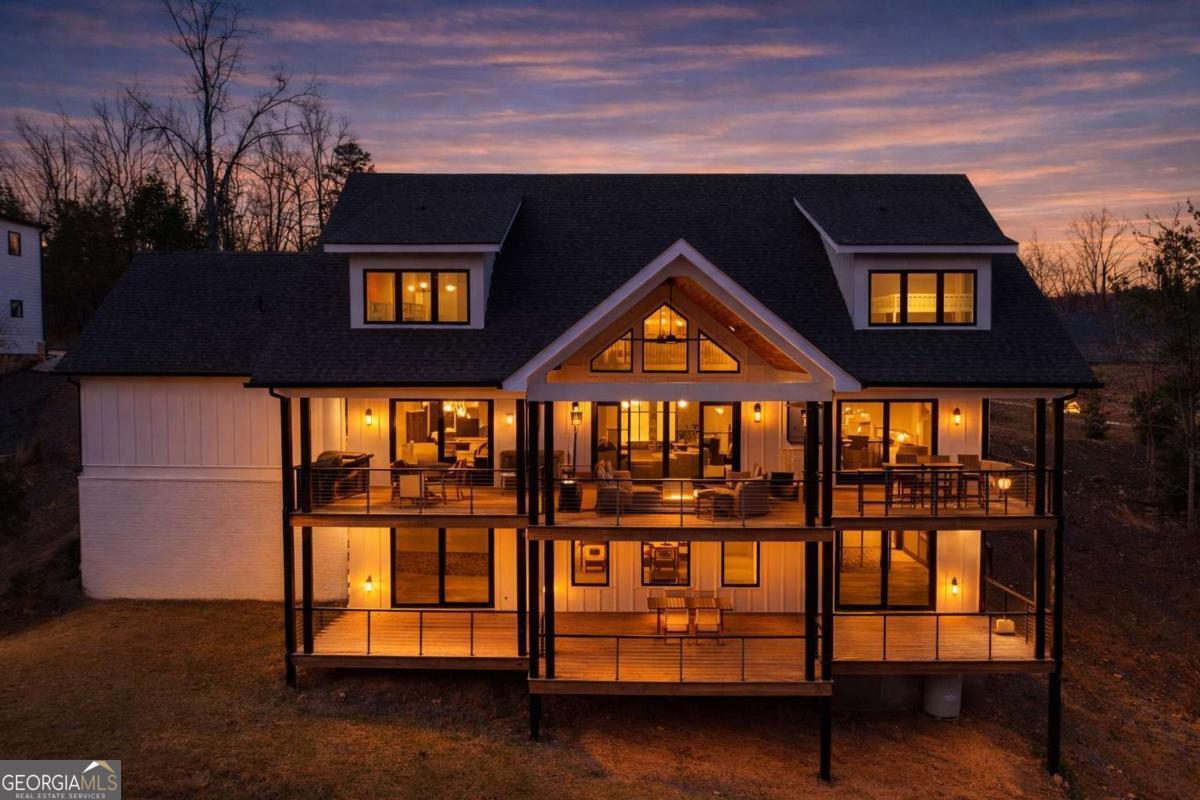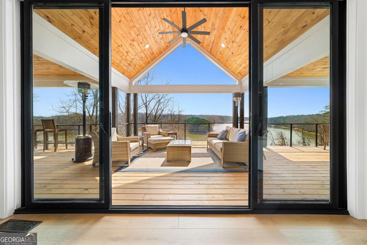 Life on Lake Lanier has a rhythm all its own. From peaceful mornings on the porch to afternoons on the water to ending every day with the sun melting into the water - all from your very own back porch. Custom-built in 2022 and set on over an acre with the shoreline just steps away, this custom lakefront home was designed to capture the view from nearly every room. From the moment you enter, the lake immediately draws your eye through walls of glass and expansive slider doors that open to covered porches stretching across the entire back of the home, inviting you to slow down and stay awhile. This home was designed around the view and the lifestyle. The two-story vaulted great room, anchored by a 60" paneled gas fireplace and a dramatic custom wine wall, sets the tone for effortless entertaining. The kitchen is thoughtfully designed for gathering and features professional-grade appliances including a 48" Sub-Zero paneled refrigerator, a 48" dual-fuel 5 Star range, quartz countertops, and a generous prep and storage pantry. Whether hosting a holiday crowd or a casual weekend on the lake, this space functions beautifully. Glass sliders adjacent to the dining area enhance the fabulous lake views, leading out to a covered porch with an outdoor kitchen, perfect for cookouts after a day on the water. Outdoor living takes center stage with approximately 1,400square feet of covered porches across two levels - ideal for morning coffee, sunset dinners, bird watching, and tranquil lake views. The backyard extends nearly to the shoreline, offering the opportunity to maintain open views and even add a path for lake access if desired. And the boating life? It's easy here. Your deeded boat slip (#11, second from the end facing big water) is included with the property and maintained by the HOA. It is just a short golf cart ride from your front door- making time on the water part of everyday life. The main-level owner's suite is a retreat of its own, with sweeping lake views and direct porch access. The spa-inspired bath offers double vanities, a soaking tub, a separate tiled shower, and a spacious custom closet. A conveniently located laundry room adds to the thoughtful design. Upstairs, two private ensuites with walk-in closets provide comfort and privacy for family or guests, along with an expandable spray-foam insulated attic perfect for storage and ideal for future expansion. The terrace level was created for relaxed evenings and weekend gatherings. A bourbon bar with a sink, dishwasher, and refrigerator anchors the space, alongside a family room with an electric fireplace, office or exercise room, spacious guest bedroom, full bath, and a second laundry room. Glass sliders lead to the lower covered porch, perfect for extending the living space outdoors. All of this, just 10-15 minutes to Northeast Georgia Medical Center, the Olympic Rowing Venue, the Boathouse Event Center, I-985, and Gainesville's shopping and dining. This is more than a home, it's where life slows down, memories are made, and the lake becomes part of your everyday story.