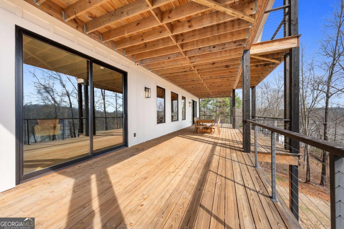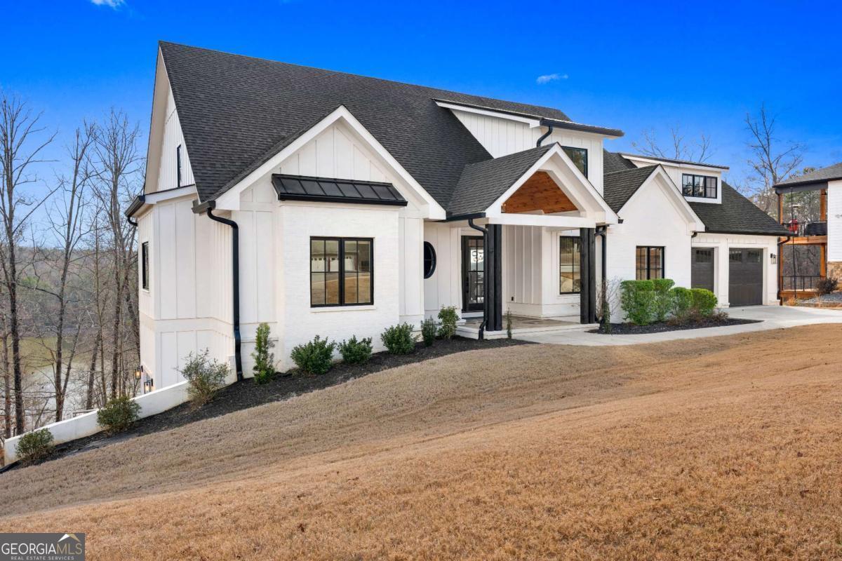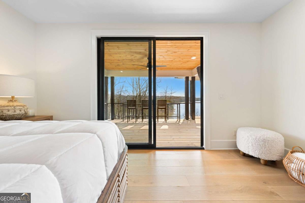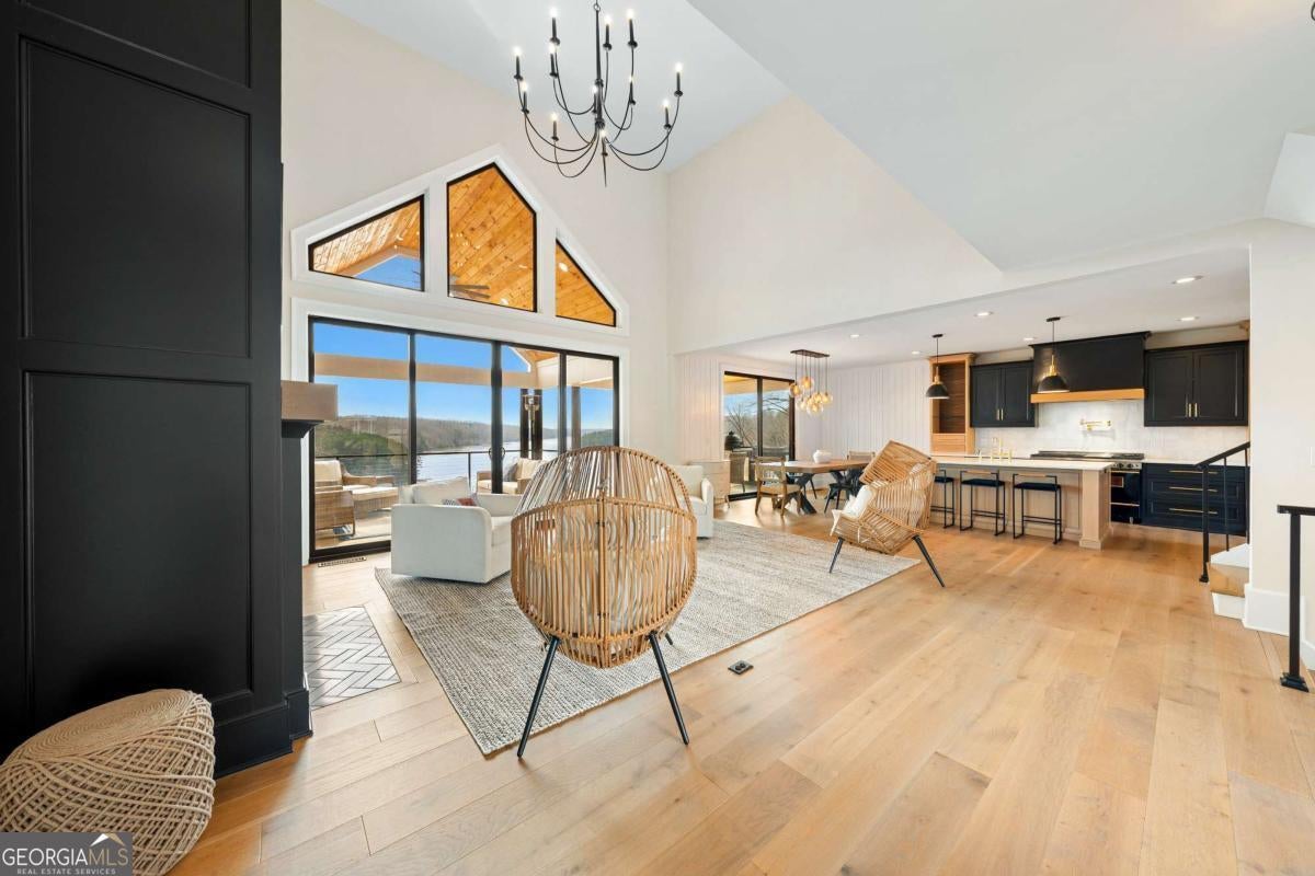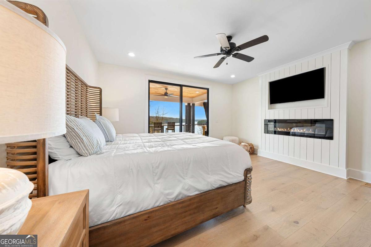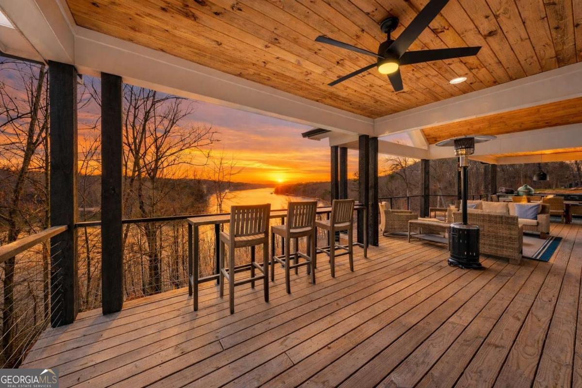 Life on Lake Lanier has a rhythm all its own. From peaceful mornings on the porch to afternoons on the water to ending every day with the sun melting into the water - all from your very own back porch. Custom-built in 2022 and set on over an acre with the shoreline just steps away, this custom lakefront home was designed to capture the view from nearly every room. From the moment you enter, the lake immediately draws your eye through walls of glass and expansive slider doors that open to covered porches stretching across the entire back of the home, inviting you to slow down and stay awhile. This home was designed around the view and the lifestyle. The two-story vaulted great room, anchored by a 60" paneled gas fireplace and a dramatic custom wine wall, sets the tone for effortless entertaining. The kitchen is thoughtfully designed for gathering and features professional-grade appliances including a 48" Sub-Zero paneled refrigerator, a 48" dual-fuel 5 Star range, quartz countertops, and a generous prep and storage pantry. Whether hosting a holiday crowd or a casual weekend on the lake, this space functions beautifully. Glass sliders adjacent to the dining area enhance the fabulous lake views, leading out to a covered porch with an outdoor kitchen, perfect for cookouts after a day on the water. Outdoor living takes center stage with approximately 1,400square feet of covered porches across two levels - ideal for morning coffee, sunset dinners, bird watching, and tranquil lake views. The backyard extends nearly to the shoreline, offering the opportunity to maintain open views and even add a path for lake access if desired. And the boating life? It's easy here. Your deeded boat slip (#11, second from the end facing big water) is included with the property and maintained by the HOA. It is just a short golf cart ride from your front door- making time on the water part of everyday life. The main-level owner's suite is a retreat of its own, with sweeping lake views and direct porch access. The spa-inspired bath offers double vanities, a soaking tub, a separate tiled shower, and a spacious custom closet. A conveniently located laundry room adds to the thoughtful design. Upstairs, two private ensuites with walk-in closets provide comfort and privacy for family or guests, along with an expandable spray-foam insulated attic perfect for storage and ideal for future expansion. The terrace level was created for relaxed evenings and weekend gatherings. A bourbon bar with a sink, dishwasher, and refrigerator anchors the space, alongside a family room with an electric fireplace, office or exercise room, spacious guest bedroom, full bath, and a second laundry room. Glass sliders lead to the lower covered porch, perfect for extending the living space outdoors. All of this, just 10-15 minutes to Northeast Georgia Medical Center, the Olympic Rowing Venue, the Boathouse Event Center, I-985, and Gainesville's shopping and dining. This is more than a home, it's where life slows down, memories are made, and the lake becomes part of your everyday story.