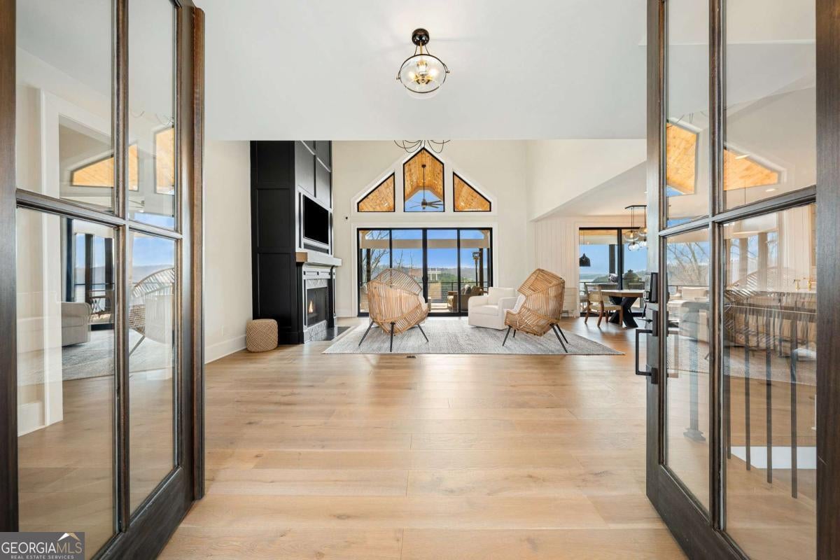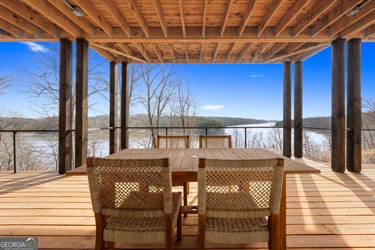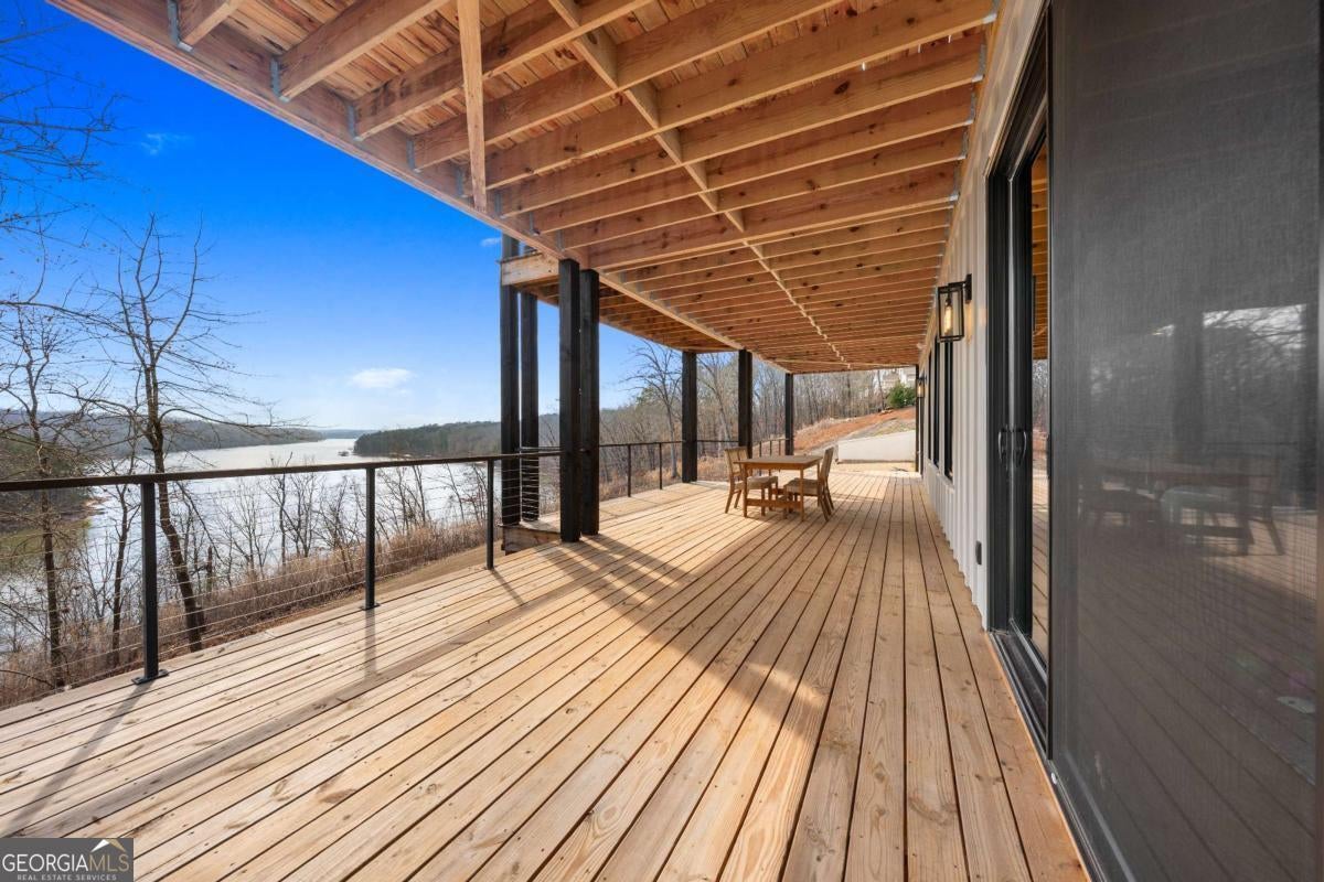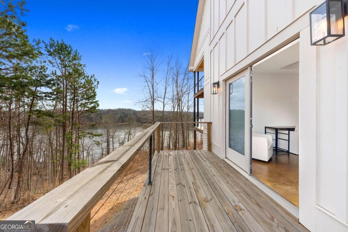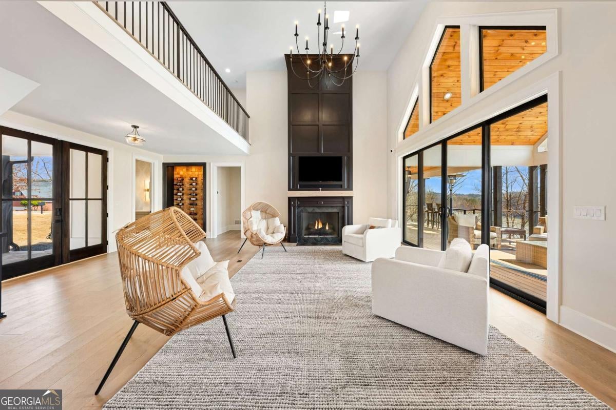 Life on Lake Lanier has a rhythm all its own. From peaceful mornings on the porch to afternoons on the water to ending every day with the sun melting into the water - all from your very own back porch. Custom-built in 2022 and set on over an acre with the shoreline just steps away, this custom lakefront home was designed to capture the view from nearly every room. From the moment you enter, the lake immediately draws your eye through walls of glass and expansive slider doors that open to covered porches stretching across the entire back of the home, inviting you to slow down and stay awhile. This home was designed around the view and the lifestyle. The two-story vaulted great room, anchored by a 60" paneled gas fireplace and a dramatic custom wine wall, sets the tone for effortless entertaining. The kitchen is thoughtfully designed for gathering and features professional-grade appliances including a 48" Sub-Zero paneled refrigerator, a 48" dual-fuel 5 Star range, quartz countertops, and a generous prep and storage pantry. Whether hosting a holiday crowd or a casual weekend on the lake, this space functions beautifully. Glass sliders adjacent to the dining area enhance the fabulous lake views, leading out to a covered porch with an outdoor kitchen, perfect for cookouts after a day on the water. Outdoor living takes center stage with approximately 1,400square feet of covered porches across two levels - ideal for morning coffee, sunset dinners, bird watching, and tranquil lake views. The backyard extends nearly to the shoreline, offering the opportunity to maintain open views and even add a path for lake access if desired. And the boating life? It's easy here. Your deeded boat slip (#11, second from the end facing big water) is included with the property and maintained by the HOA. It is just a short golf cart ride from your front door- making time on the water part of everyday life. The main-level owner's suite is a retreat of its own, with sweeping lake views and direct porch access. The spa-inspired bath offers double vanities, a soaking tub, a separate tiled shower, and a spacious custom closet. A conveniently located laundry room adds to the thoughtful design. Upstairs, two private ensuites with walk-in closets provide comfort and privacy for family or guests, along with an expandable spray-foam insulated attic perfect for storage and ideal for future expansion. The terrace level was created for relaxed evenings and weekend gatherings. A bourbon bar with a sink, dishwasher, and refrigerator anchors the space, alongside a family room with an electric fireplace, office or exercise room, spacious guest bedroom, full bath, and a second laundry room. Glass sliders lead to the lower covered porch, perfect for extending the living space outdoors. All of this, just 10-15 minutes to Northeast Georgia Medical Center, the Olympic Rowing Venue, the Boathouse Event Center, I-985, and Gainesville's shopping and dining. This is more than a home, it's where life slows down, memories are made, and the lake becomes part of your everyday story.