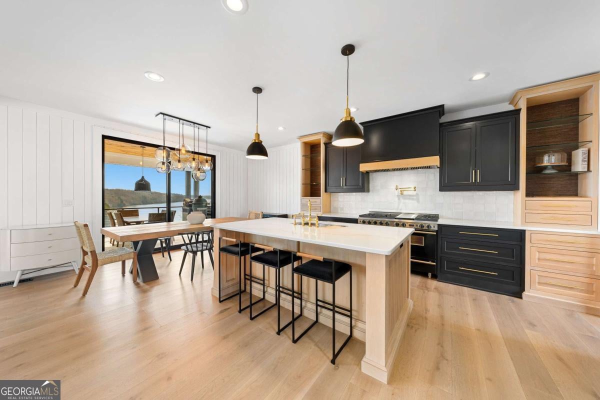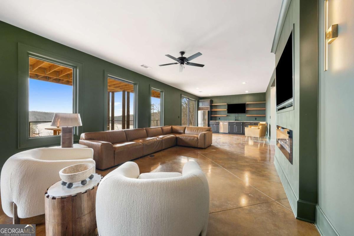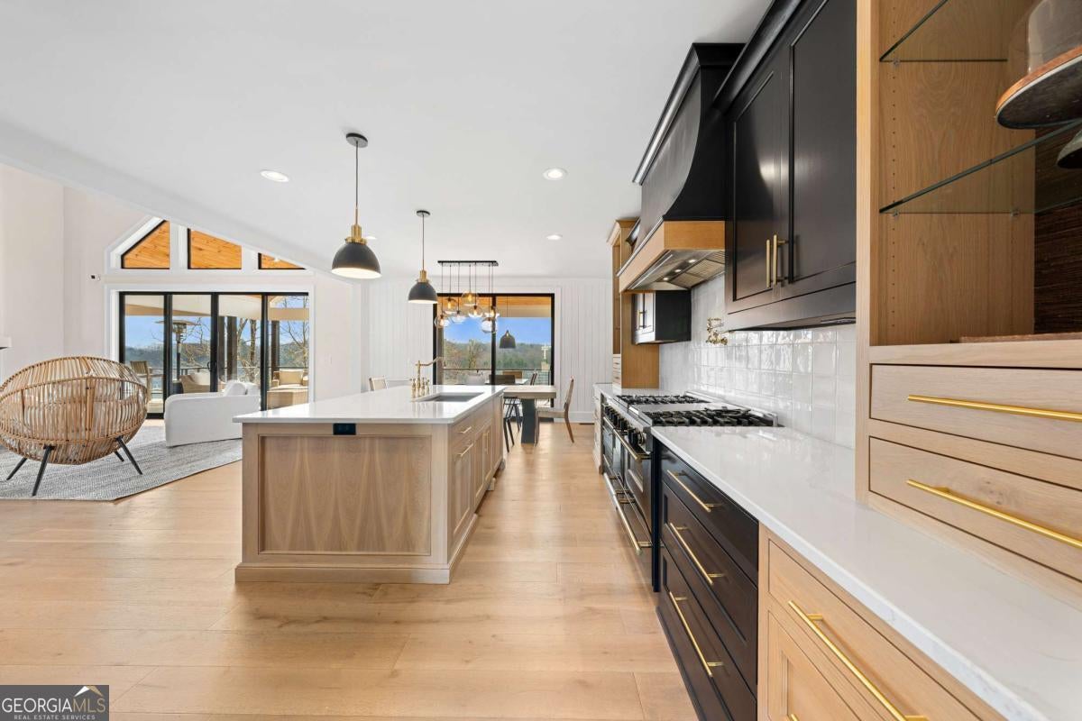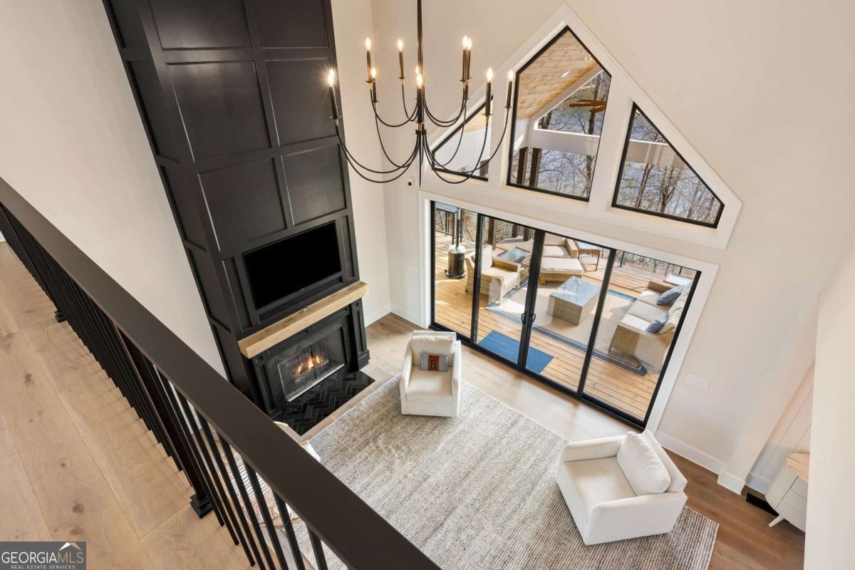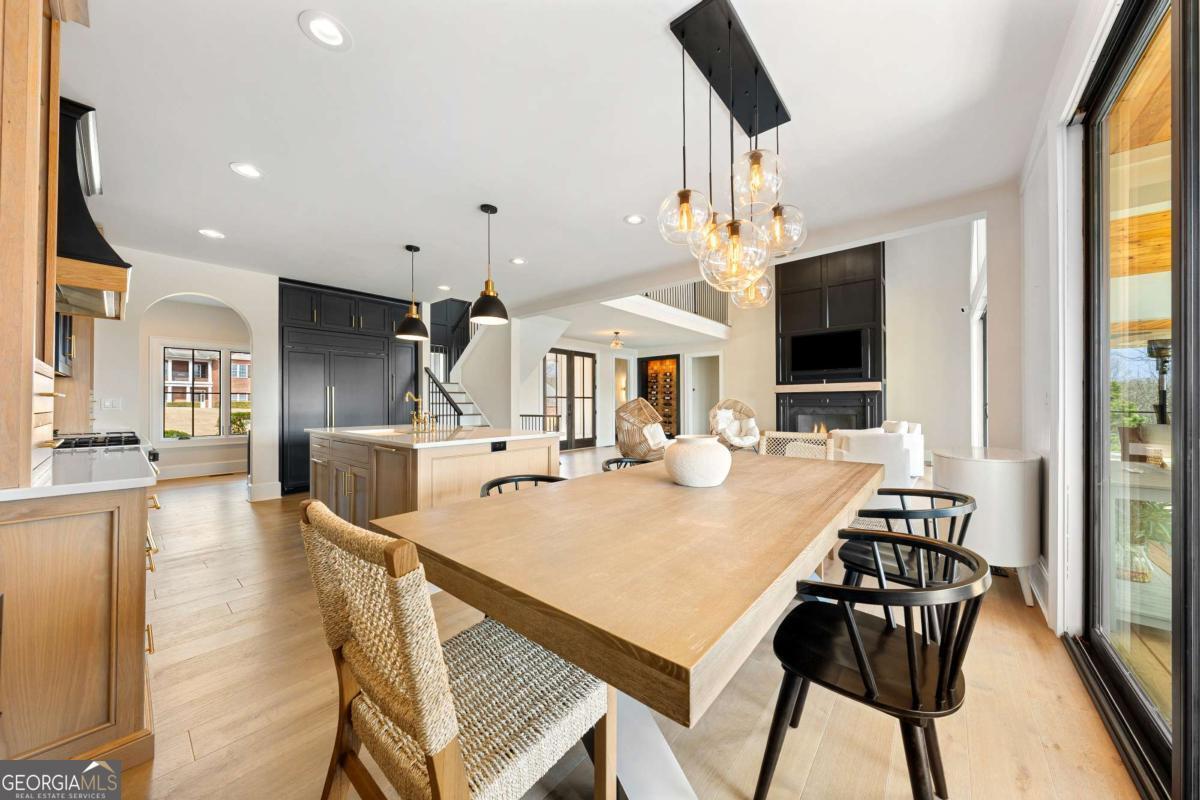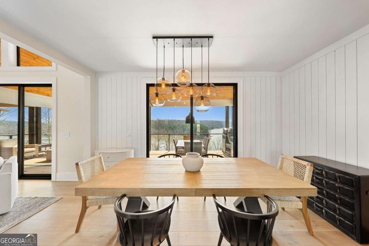 Life on Lake Lanier has a rhythm all its own. From peaceful mornings on the porch to afternoons on the water to ending every day with the sun melting into the water - all from your very own back porch. Custom-built in 2022 and set on over an acre with the shoreline just steps away, this custom lakefront home was designed to capture the view from nearly every room. From the moment you enter, the lake immediately draws your eye through walls of glass and expansive slider doors that open to covered porches stretching across the entire back of the home, inviting you to slow down and stay awhile. This home was designed around the view and the lifestyle. The two-story vaulted great room, anchored by a 60" paneled gas fireplace and a dramatic custom wine wall, sets the tone for effortless entertaining. The kitchen is thoughtfully designed for gathering and features professional-grade appliances including a 48" Sub-Zero paneled refrigerator, a 48" dual-fuel 5 Star range, quartz countertops, and a generous prep and storage pantry. Whether hosting a holiday crowd or a casual weekend on the lake, this space functions beautifully. Glass sliders adjacent to the dining area enhance the fabulous lake views, leading out to a covered porch with an outdoor kitchen, perfect for cookouts after a day on the water. Outdoor living takes center stage with approximately 1,400square feet of covered porches across two levels - ideal for morning coffee, sunset dinners, bird watching, and tranquil lake views. The backyard extends nearly to the shoreline, offering the opportunity to maintain open views and even add a path for lake access if desired. And the boating life? It's easy here. Your deeded boat slip (#11, second from the end facing big water) is included with the property and maintained by the HOA. It is just a short golf cart ride from your front door- making time on the water part of everyday life. The main-level owner's suite is a retreat of its own, with sweeping lake views and direct porch access. The spa-inspired bath offers double vanities, a soaking tub, a separate tiled shower, and a spacious custom closet. A conveniently located laundry room adds to the thoughtful design. Upstairs, two private ensuites with walk-in closets provide comfort and privacy for family or guests, along with an expandable spray-foam insulated attic perfect for storage and ideal for future expansion. The terrace level was created for relaxed evenings and weekend gatherings. A bourbon bar with a sink, dishwasher, and refrigerator anchors the space, alongside a family room with an electric fireplace, office or exercise room, spacious guest bedroom, full bath, and a second laundry room. Glass sliders lead to the lower covered porch, perfect for extending the living space outdoors. All of this, just 10-15 minutes to Northeast Georgia Medical Center, the Olympic Rowing Venue, the Boathouse Event Center, I-985, and Gainesville's shopping and dining. This is more than a home, it's where life slows down, memories are made, and the lake becomes part of your everyday story.