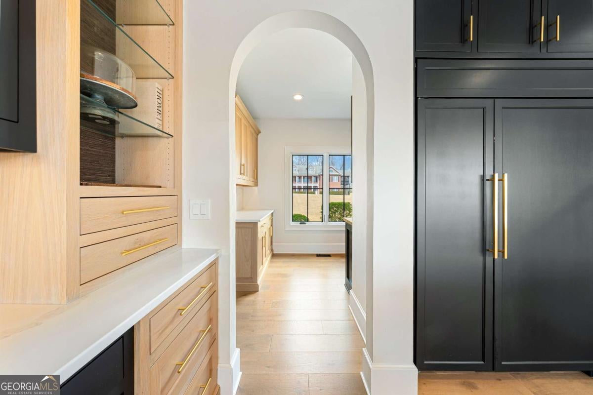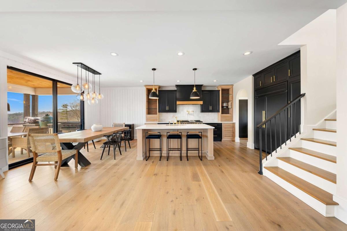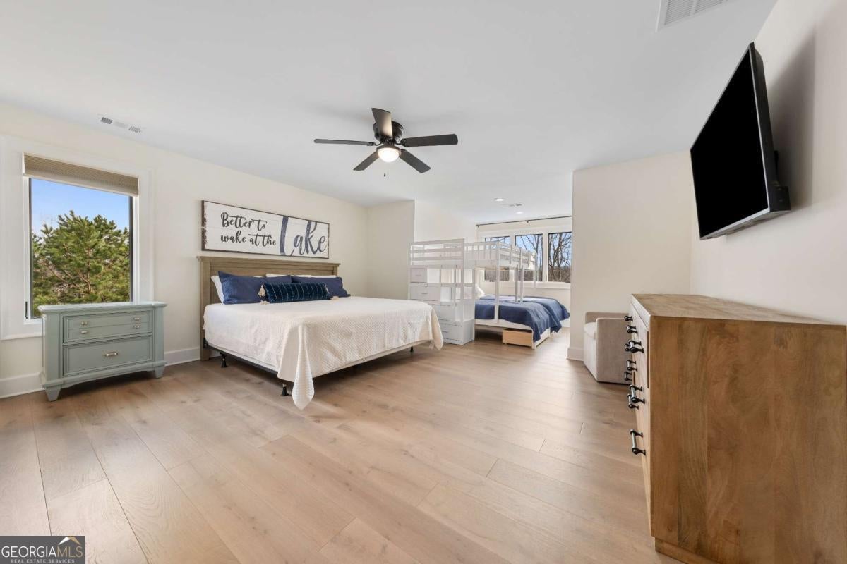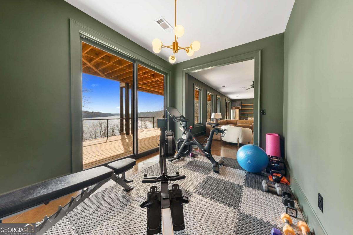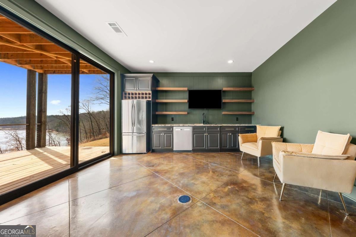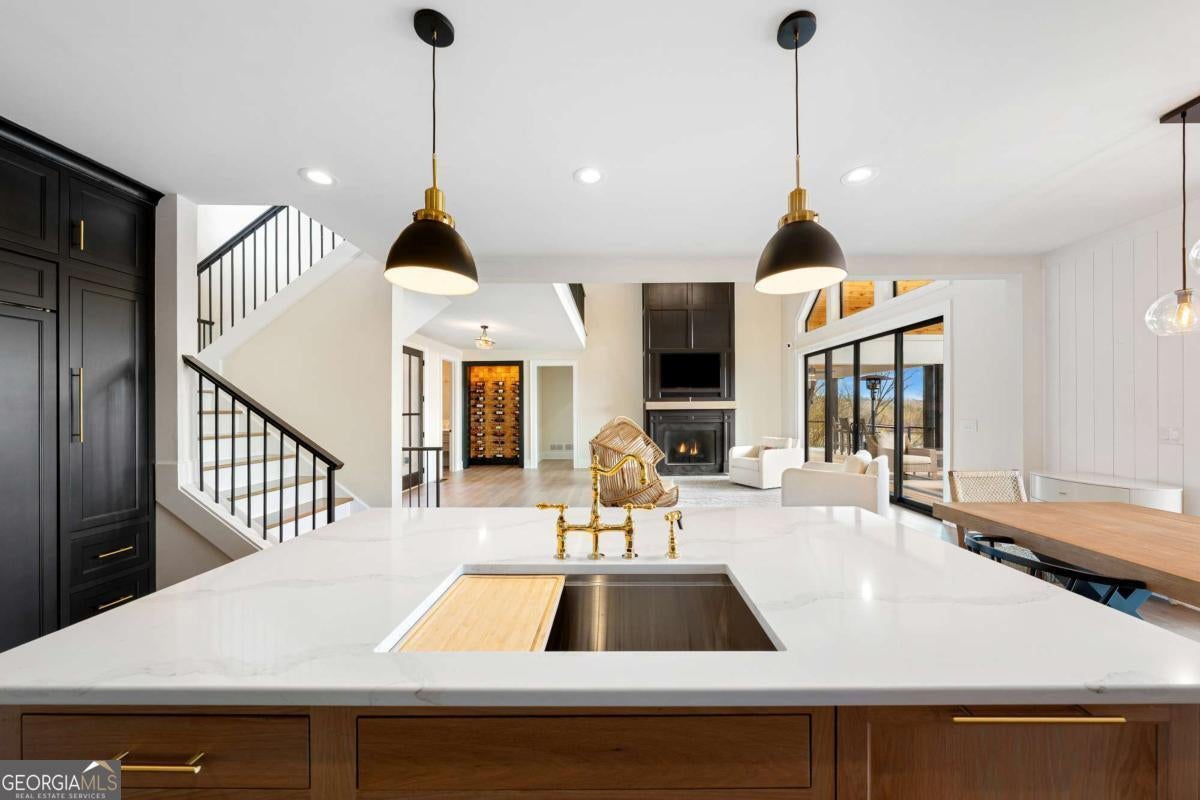 Life on Lake Lanier has a rhythm all its own. From peaceful mornings on the porch to afternoons on the water to ending every day with the sun melting into the water - all from your very own back porch. Custom-built in 2022 and set on over an acre with the shoreline just steps away, this custom lakefront home was designed to capture the view from nearly every room. From the moment you enter, the lake immediately draws your eye through walls of glass and expansive slider doors that open to covered porches stretching across the entire back of the home, inviting you to slow down and stay awhile. This home was designed around the view and the lifestyle. The two-story vaulted great room, anchored by a 60" paneled gas fireplace and a dramatic custom wine wall, sets the tone for effortless entertaining. The kitchen is thoughtfully designed for gathering and features professional-grade appliances including a 48" Sub-Zero paneled refrigerator, a 48" dual-fuel 5 Star range, quartz countertops, and a generous prep and storage pantry. Whether hosting a holiday crowd or a casual weekend on the lake, this space functions beautifully. Glass sliders adjacent to the dining area enhance the fabulous lake views, leading out to a covered porch with an outdoor kitchen, perfect for cookouts after a day on the water. Outdoor living takes center stage with approximately 1,400square feet of covered porches across two levels - ideal for morning coffee, sunset dinners, bird watching, and tranquil lake views. The backyard extends nearly to the shoreline, offering the opportunity to maintain open views and even add a path for lake access if desired. And the boating life? It's easy here. Your deeded boat slip (#11, second from the end facing big water) is included with the property and maintained by the HOA. It is just a short golf cart ride from your front door- making time on the water part of everyday life. The main-level owner's suite is a retreat of its own, with sweeping lake views and direct porch access. The spa-inspired bath offers double vanities, a soaking tub, a separate tiled shower, and a spacious custom closet. A conveniently located laundry room adds to the thoughtful design. Upstairs, two private ensuites with walk-in closets provide comfort and privacy for family or guests, along with an expandable spray-foam insulated attic perfect for storage and ideal for future expansion. The terrace level was created for relaxed evenings and weekend gatherings. A bourbon bar with a sink, dishwasher, and refrigerator anchors the space, alongside a family room with an electric fireplace, office or exercise room, spacious guest bedroom, full bath, and a second laundry room. Glass sliders lead to the lower covered porch, perfect for extending the living space outdoors. All of this, just 10-15 minutes to Northeast Georgia Medical Center, the Olympic Rowing Venue, the Boathouse Event Center, I-985, and Gainesville's shopping and dining. This is more than a home, it's where life slows down, memories are made, and the lake becomes part of your everyday story.