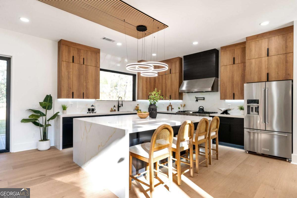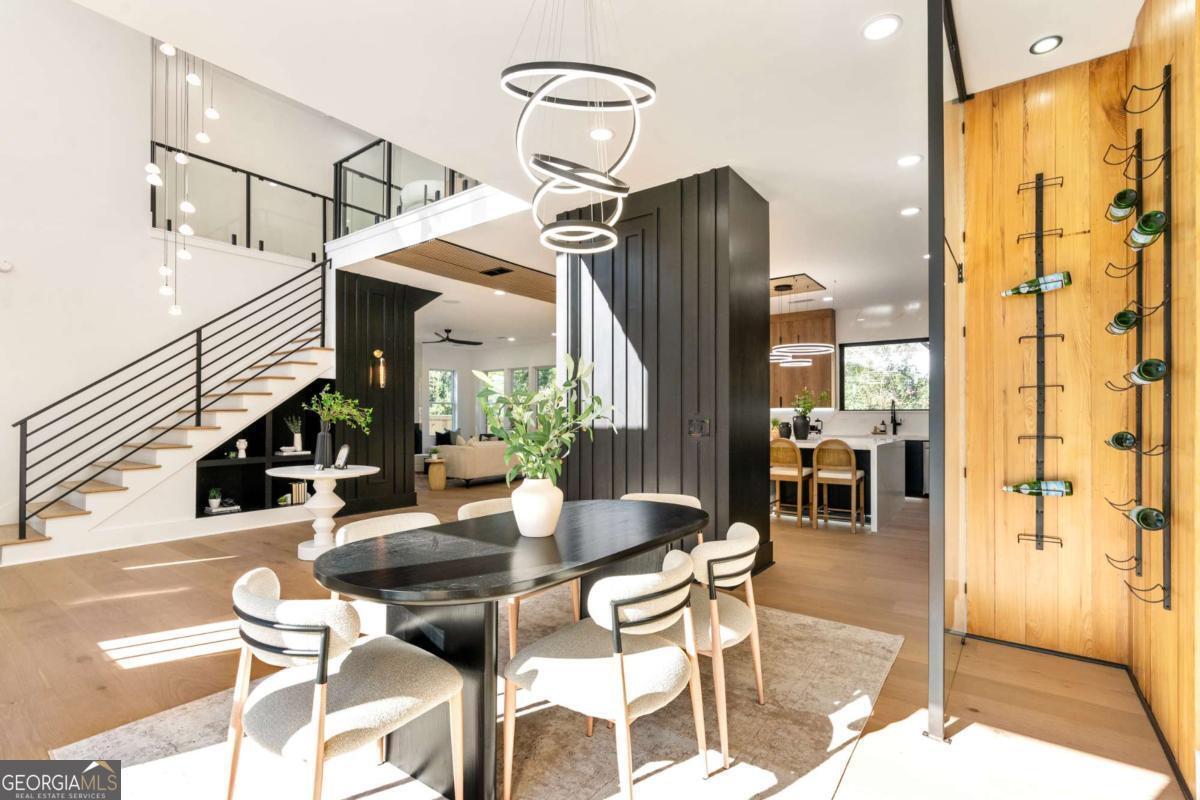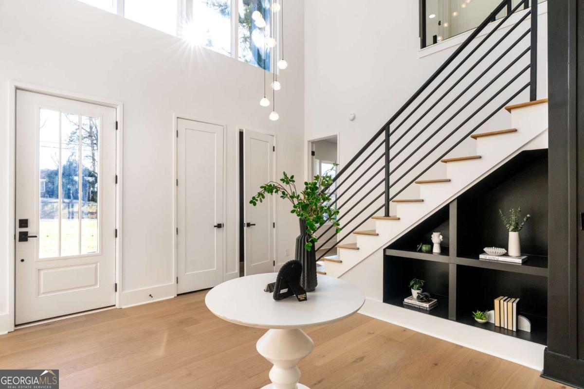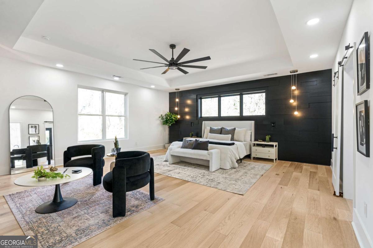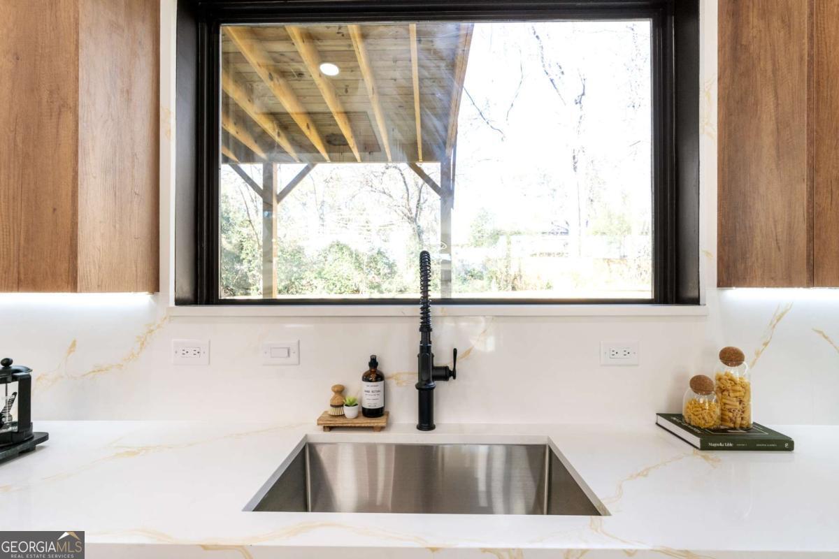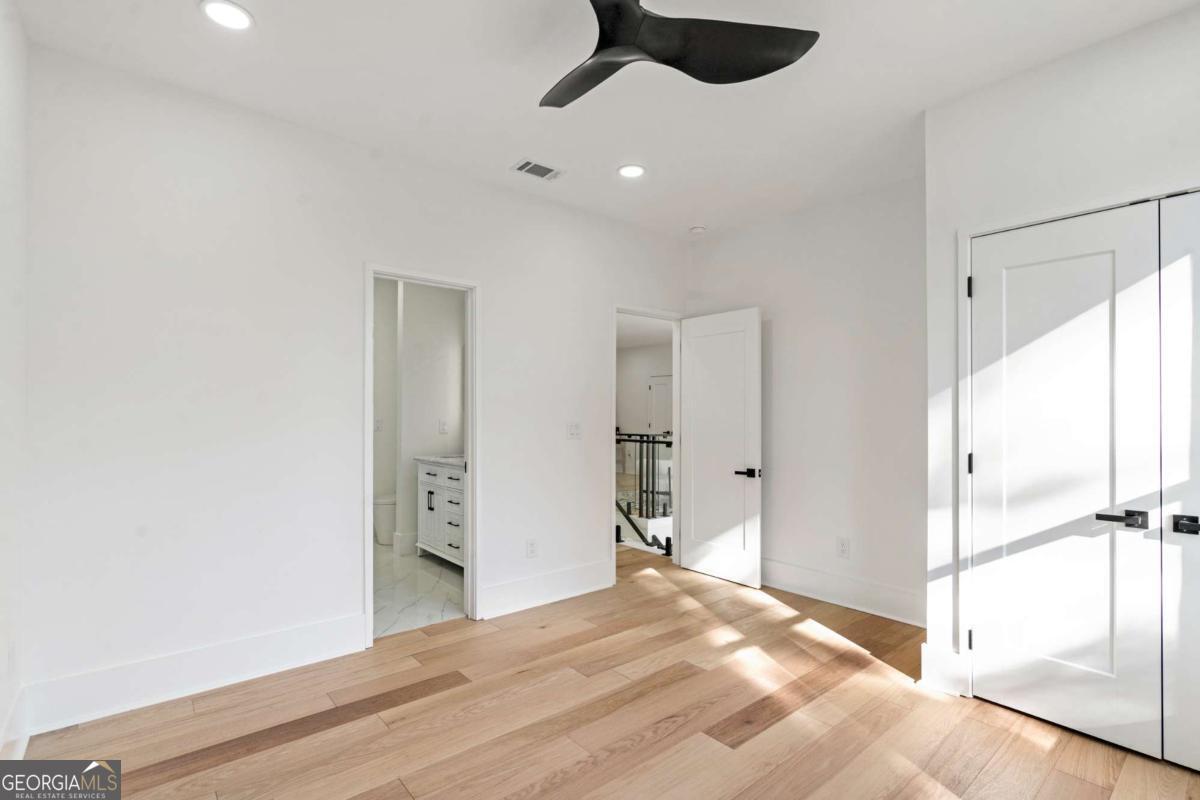 Stunning new construction home just minutes from East Lake Golf Club offering 4 bedrooms and 3.5 bathrooms, thoughtfully designed with high-end finishes and modern functionality throughout. The open-concept main level features hardwood flooring, designer lighting, and two-way recessed lighting that creates a warm, elevated ambiance. The chef's kitchen is a showstopper with a large quartz island equipped with built-in charging stations, under-cabinet lighting, a 6-burner gas range with griddle and double ovens, pot filler, and custom cabinetry. Bifold doors seamlessly connect the indoor living space to a patio with a fireplace, perfect for entertaining. The oversized primary suite is a private retreat featuring custom accent walls, a fireplace, Bluetooth speakers, and a private deck with access to a shared deck. The spa-inspired ensuite bathroom showcases double vanities with sconce lighting, backlit mirrors, floor-to-ceiling tile, an expanded double shower, soaker tub, and a separate water closet. Additional highlights include encased wine storage, Bluetooth speakers both indoors and out, two decks + patio, four fireplaces, glass-view railing at the upper-level sitting area, and tiled bathrooms. The fenced backyard adds privacy, while the two-car tandem garage includes EV chargers for modern convenience. This exceptional home blends luxury, comfort, and cutting-edge design in every detail.
