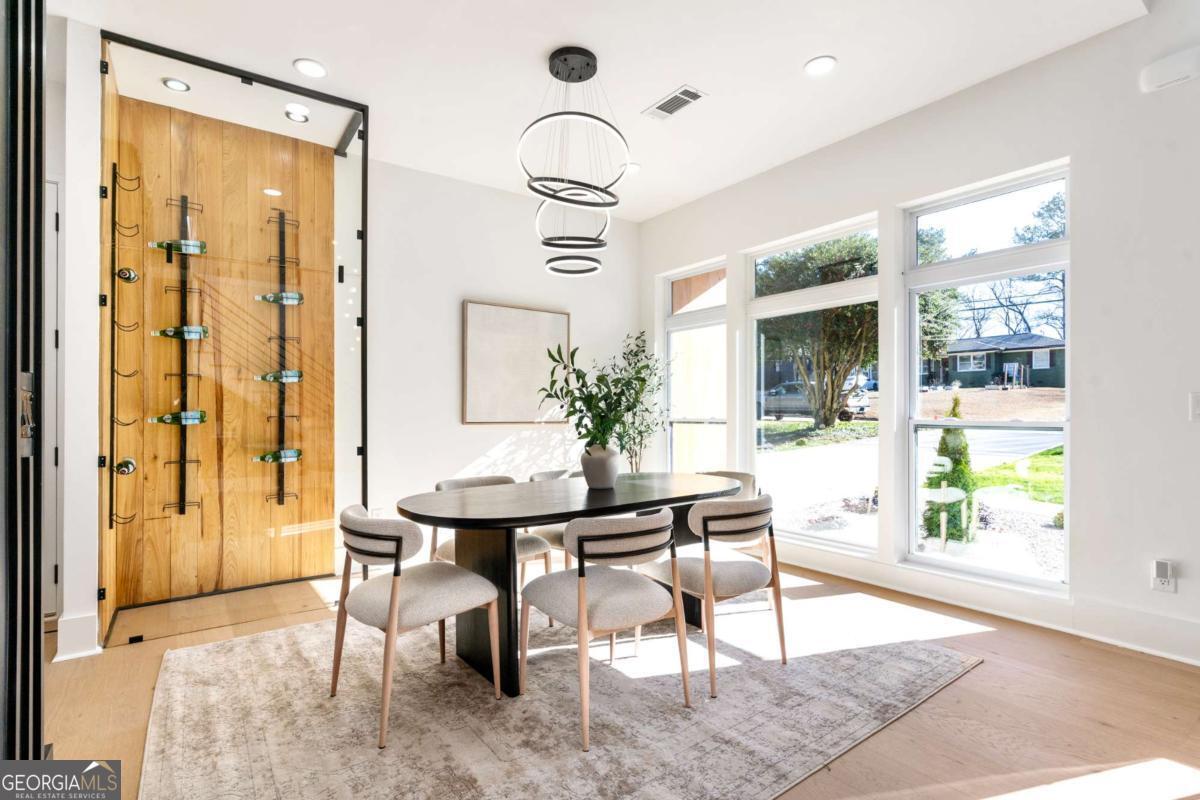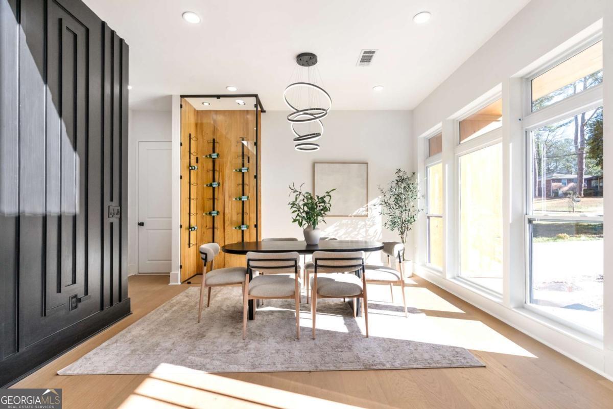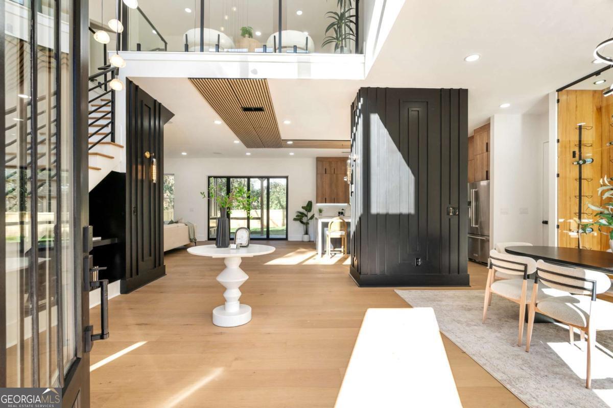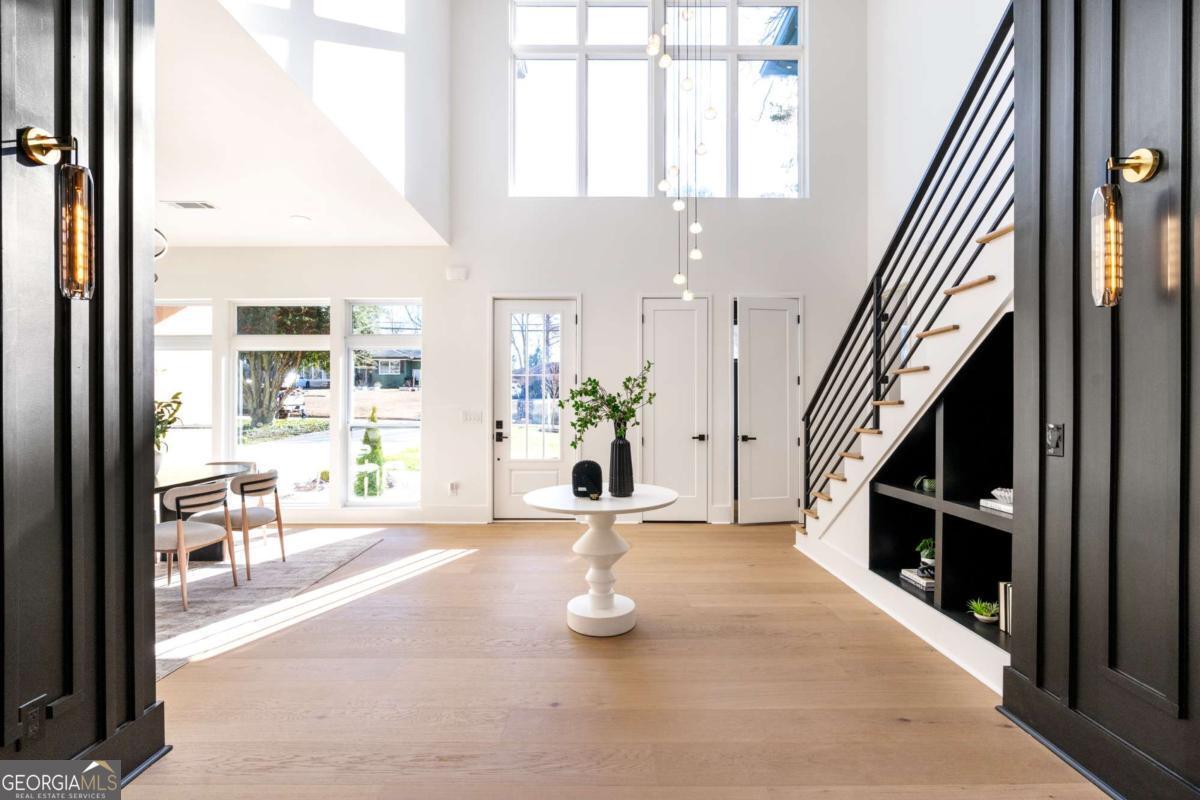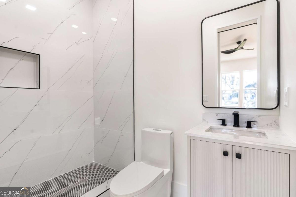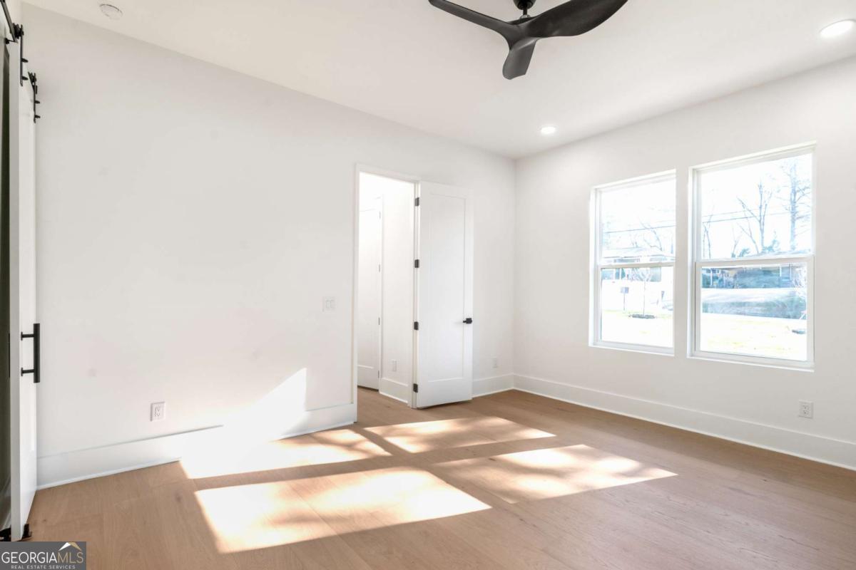 Stunning new construction home just minutes from East Lake Golf Club offering 4 bedrooms and 3.5 bathrooms, thoughtfully designed with high-end finishes and modern functionality throughout. The open-concept main level features hardwood flooring, designer lighting, and two-way recessed lighting that creates a warm, elevated ambiance. The chef's kitchen is a showstopper with a large quartz island equipped with built-in charging stations, under-cabinet lighting, a 6-burner gas range with griddle and double ovens, pot filler, and custom cabinetry. Bifold doors seamlessly connect the indoor living space to a patio with a fireplace, perfect for entertaining. The oversized primary suite is a private retreat featuring custom accent walls, a fireplace, Bluetooth speakers, and a private deck with access to a shared deck. The spa-inspired ensuite bathroom showcases double vanities with sconce lighting, backlit mirrors, floor-to-ceiling tile, an expanded double shower, soaker tub, and a separate water closet. Additional highlights include encased wine storage, Bluetooth speakers both indoors and out, two decks + patio, four fireplaces, glass-view railing at the upper-level sitting area, and tiled bathrooms. The fenced backyard adds privacy, while the two-car tandem garage includes EV chargers for modern convenience. This exceptional home blends luxury, comfort, and cutting-edge design in every detail.