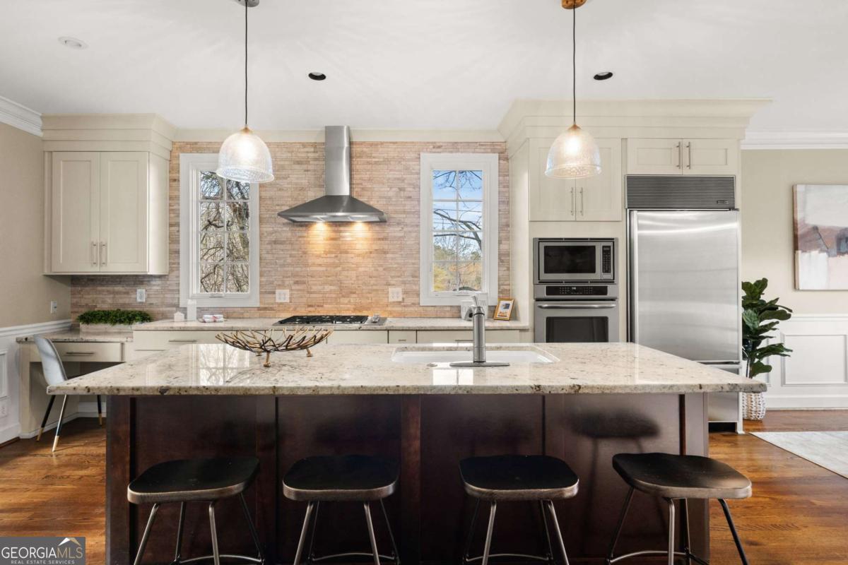 Master on the Main, beautifully renovated townhome in the Heart of Vinings. This End unit offers the perfect blend of modern luxury, comfort, and convenience. The spacious primary suite on the main levels offers hardwood flooring with sitting area, exquisitely renovated bathroom with double vanity, marble countertops, custom tile walk shower and a custom closet system. Entertaining is a must in the beautifully renovated kitchen with large island, quartz countertops, Sub Zero Refrigerator, porcelain farm sink and stainless-steel appliances. French doors open to a private screened porch where you can enjoy coffee or cocktails surrounded by lush vegetation-ideal for relaxing or entertaining. This stunning residence also features an open foyer with an abundance of natural light, hard wood floors, a large family room with gas fireplace, a separate dining room and powder room, all on the main level. Upstairs you will find three large bedrooms and laundry area(which can easily be moved to the main level). In addition, the unfinished basement/two car garage adds valuable living space and endless possibilities. Perfect for a private home gym, dedicated office, media lounge, storage or additional living area, this versatile space enhances both comfort and functionality. Perfectly tucked away in the heart of Vinings, this home is walkable to Vinings Jubilee, boutique shops, restaurants, parks, scenic trails, and the Chattahoochee River Greenway and provides quick access to Truist Park, major highways, and Hartsfield-Jackson Atlanta International Airport.
