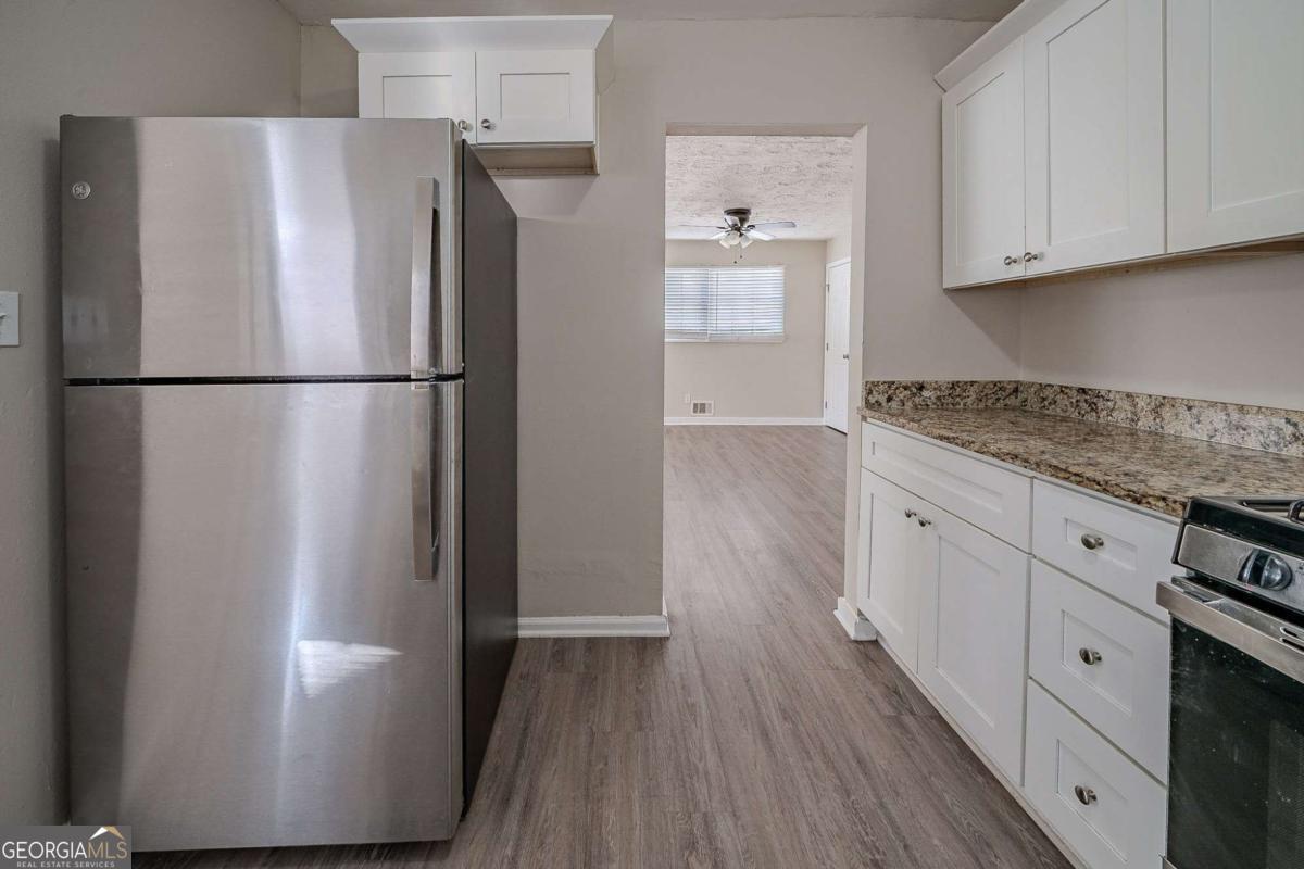 Welcome to this beautiful 2-level, 4-bedroom, 2-bathroom home, offering modern features and a comfortable living space. The main level features a bright and spacious living area, complemented by a stunning white kitchen with sleek stainless steel appliances, stone countertops, and ample cabinet space. The open concept layout makes entertaining a breeze, while large windows allow natural light to fill the home. The home includes generously sized bedrooms and two well-appointed bathrooms, ensuring comfort and convenience for all family members. The lower level boasts a laundry room, adding to the functionality of this home. Step outside to the private, fenced backyard with a cozy back patio - perfect for outdoor gatherings, relaxation, or gardening. A driveway provides space for one car, while vinyl flooring throughout adds both style and ease of maintenance. Don't miss the opportunity to make this your new home! Schedule your showing today to see all this home has to offer!