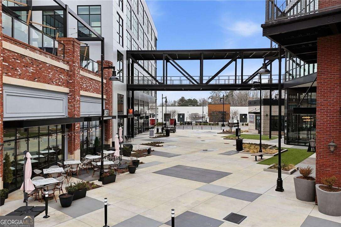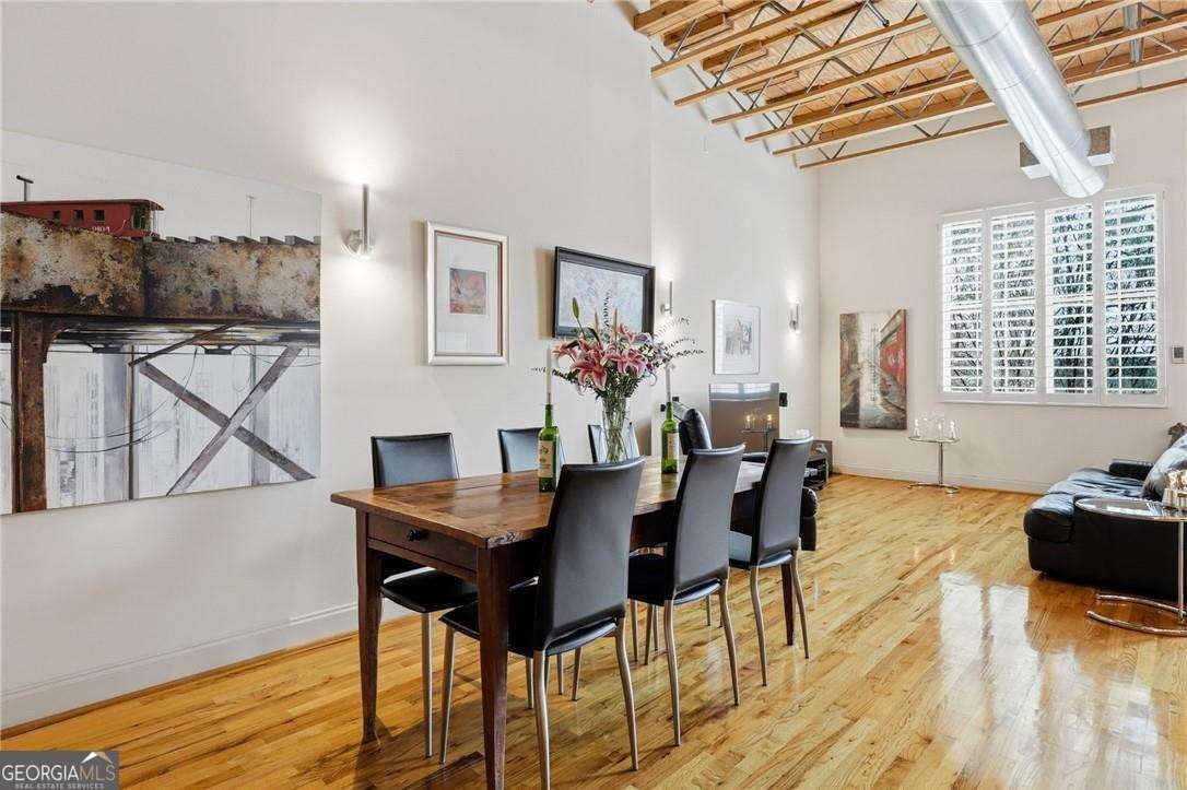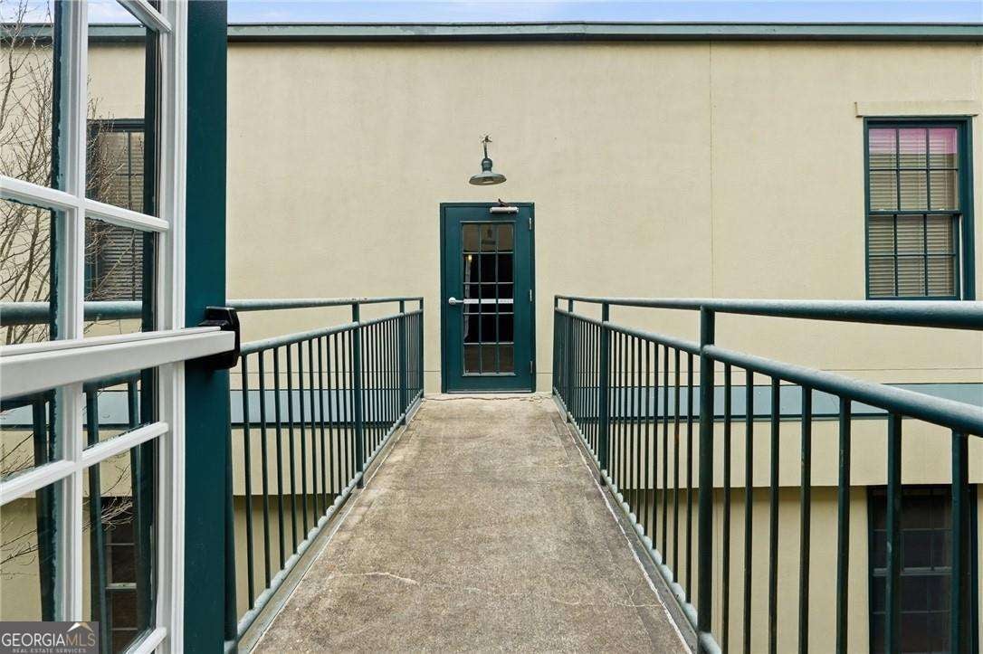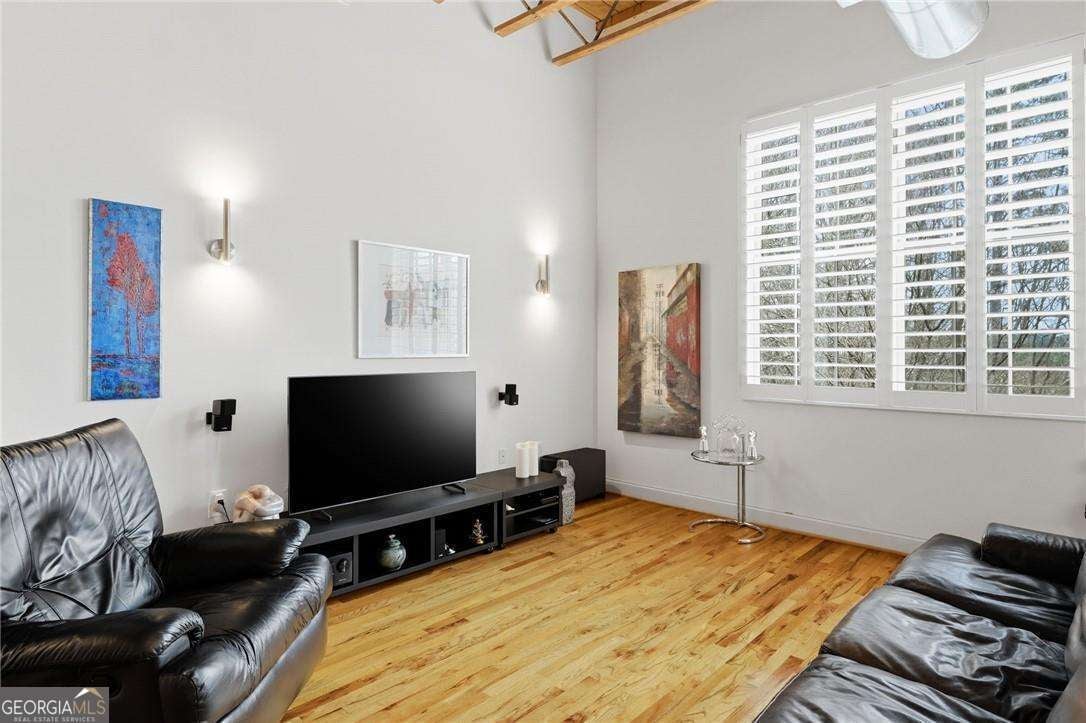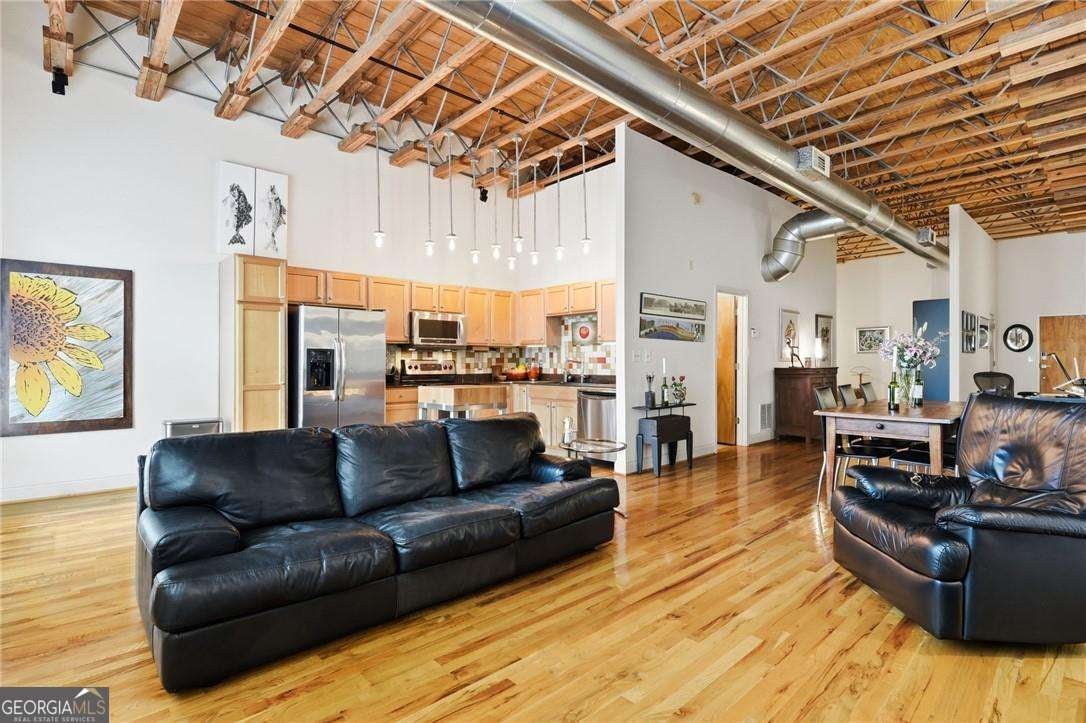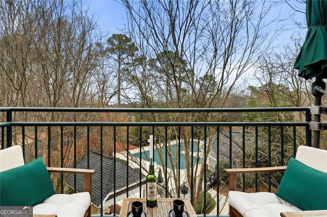 Experience distinctive loft living in the heart of downtown Roswell at 1843 Liberty Lane in sought-after Liberty Lofts. Located in the historic former Roswell High School, this top-floor 1 bedroom, 1 bath loft blends architectural character with modern comfort in one of Roswell's most coveted communities. As you enter, you will LOVE the soaring wooden ceilings, exposed metal ductwork, and beautiful hardwood floors that give this loft its signature industrial charm. Heading outside, new french doors with storm doors open to a private balcony - a rare feature in the building and the only balcony on this floor with an unobstructed view overlooking the pool, offering exceptional privacy and a peaceful outdoor retreat. The open concept living space is accentuated by designer lighting, plantation shutters, and abundant natural light, creating a warm and inviting atmosphere perfect for both relaxing and entertaining. Liberty Lofts offers a friendly, gated community with low HOA fees, making it ideal for buyers seeking low-maintenance living in a prime, downtown location. Step outside and enjoy an easy walk to the restaurants, bars, shops, and vibrant atmosphere of Southern Post, Canton Street and Downtown Roswell. Commuters will also appreciate the quick access to GA 400, connecting you easily to the greater Atlanta area and Hartsfield Jackson International Airport. Combining location, historic character, architectural details, and a rare private balcony view, this top-floor loft is a standout opportunity in Liberty Lofts. Call for a private showing today!