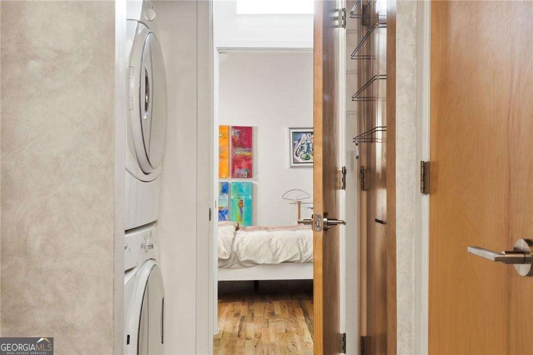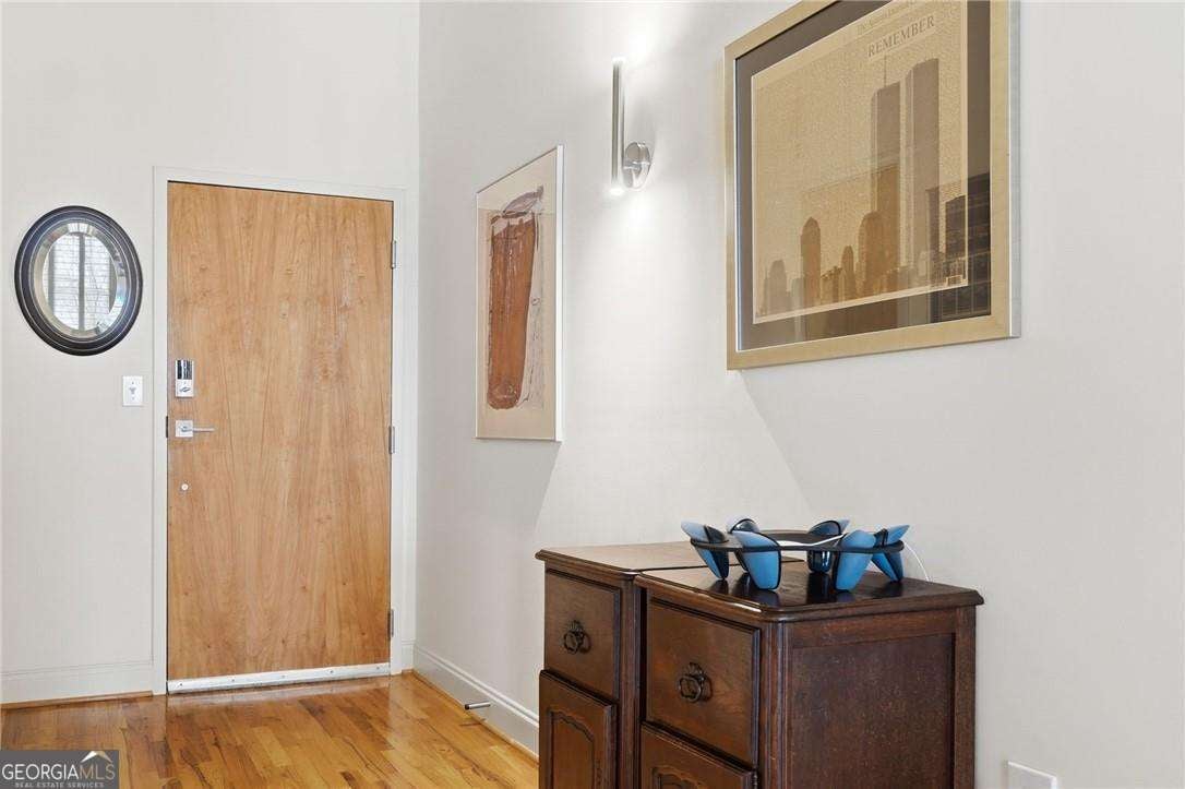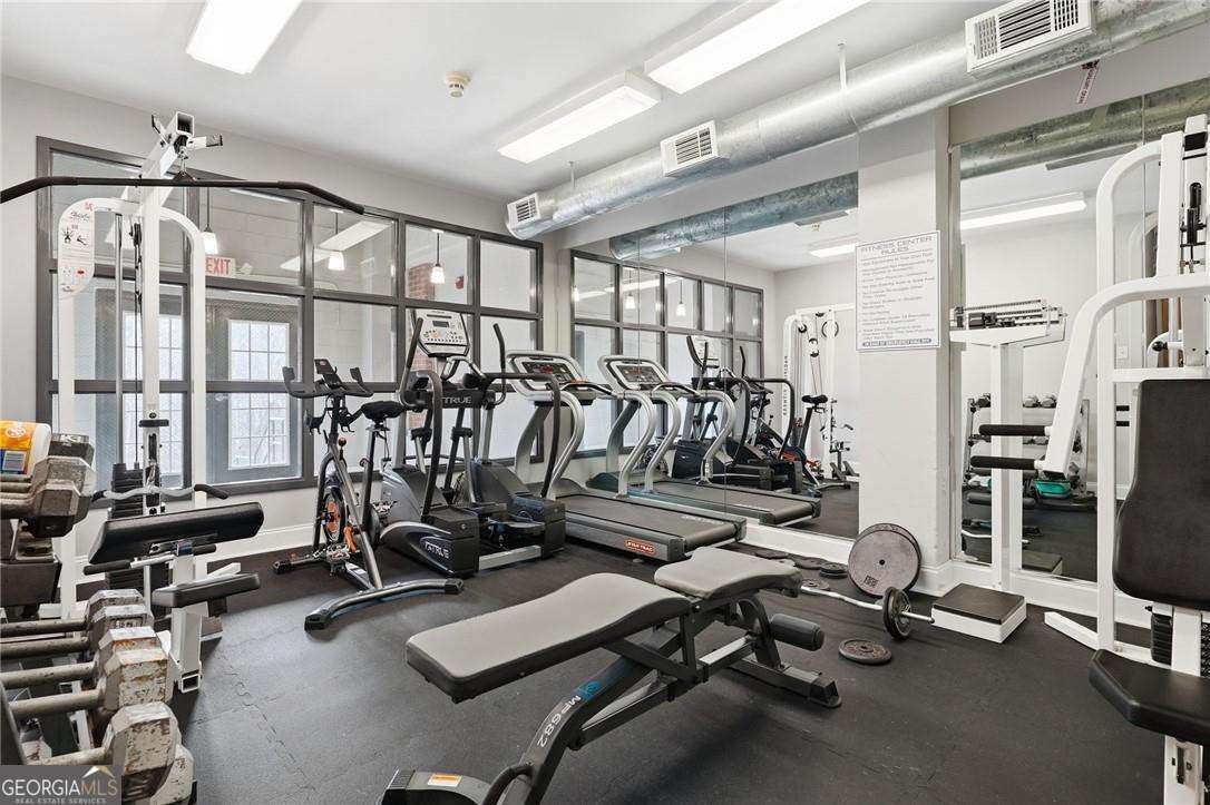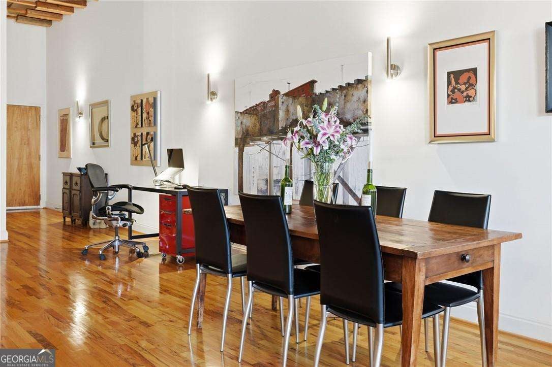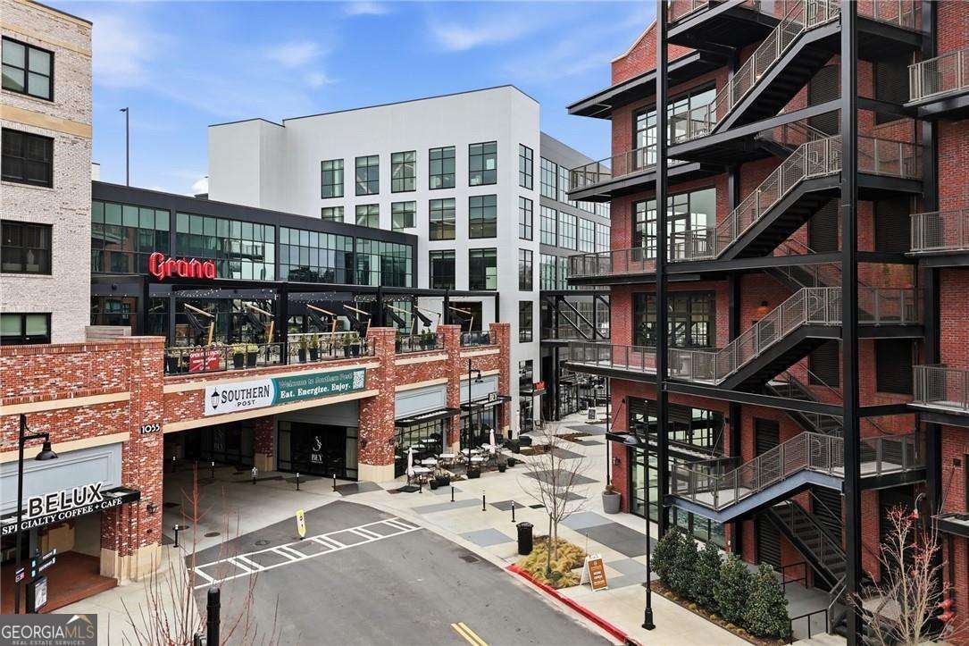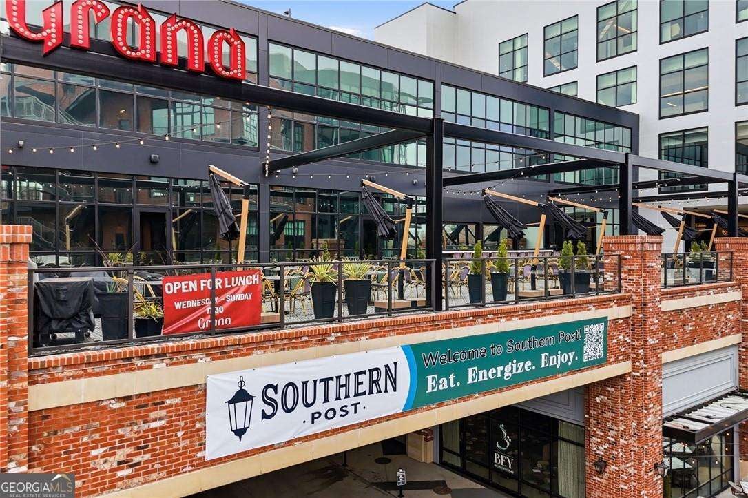 Experience distinctive loft living in the heart of downtown Roswell at 1843 Liberty Lane in sought-after Liberty Lofts. Located in the historic former Roswell High School, this top-floor 1 bedroom, 1 bath loft blends architectural character with modern comfort in one of Roswell's most coveted communities. As you enter, you will LOVE the soaring wooden ceilings, exposed metal ductwork, and beautiful hardwood floors that give this loft its signature industrial charm. Heading outside, new french doors with storm doors open to a private balcony - a rare feature in the building and the only balcony on this floor with an unobstructed view overlooking the pool, offering exceptional privacy and a peaceful outdoor retreat. The open concept living space is accentuated by designer lighting, plantation shutters, and abundant natural light, creating a warm and inviting atmosphere perfect for both relaxing and entertaining. Liberty Lofts offers a friendly, gated community with low HOA fees, making it ideal for buyers seeking low-maintenance living in a prime, downtown location. Step outside and enjoy an easy walk to the restaurants, bars, shops, and vibrant atmosphere of Southern Post, Canton Street and Downtown Roswell. Commuters will also appreciate the quick access to GA 400, connecting you easily to the greater Atlanta area and Hartsfield Jackson International Airport. Combining location, historic character, architectural details, and a rare private balcony view, this top-floor loft is a standout opportunity in Liberty Lofts. Call for a private showing today!
