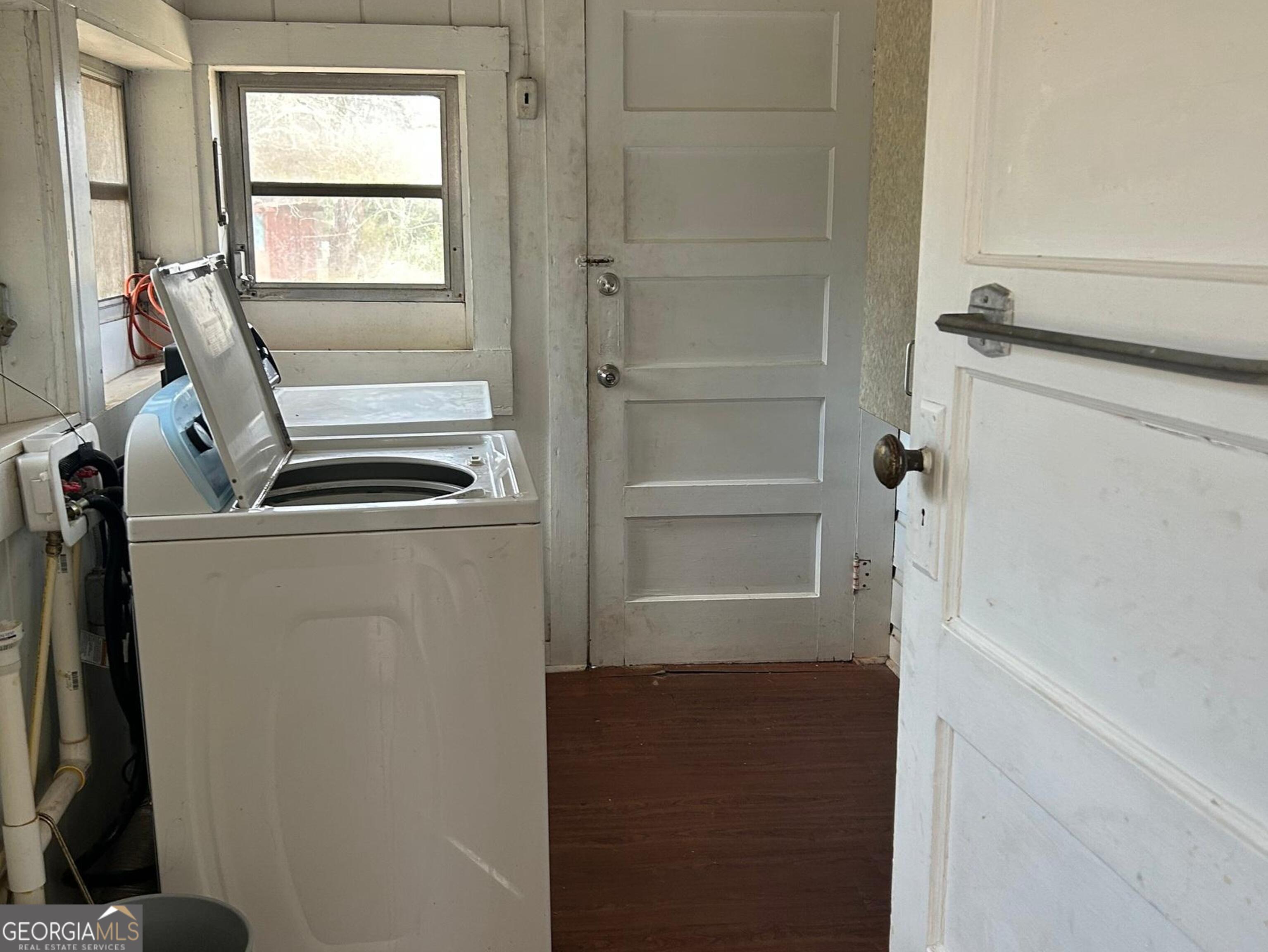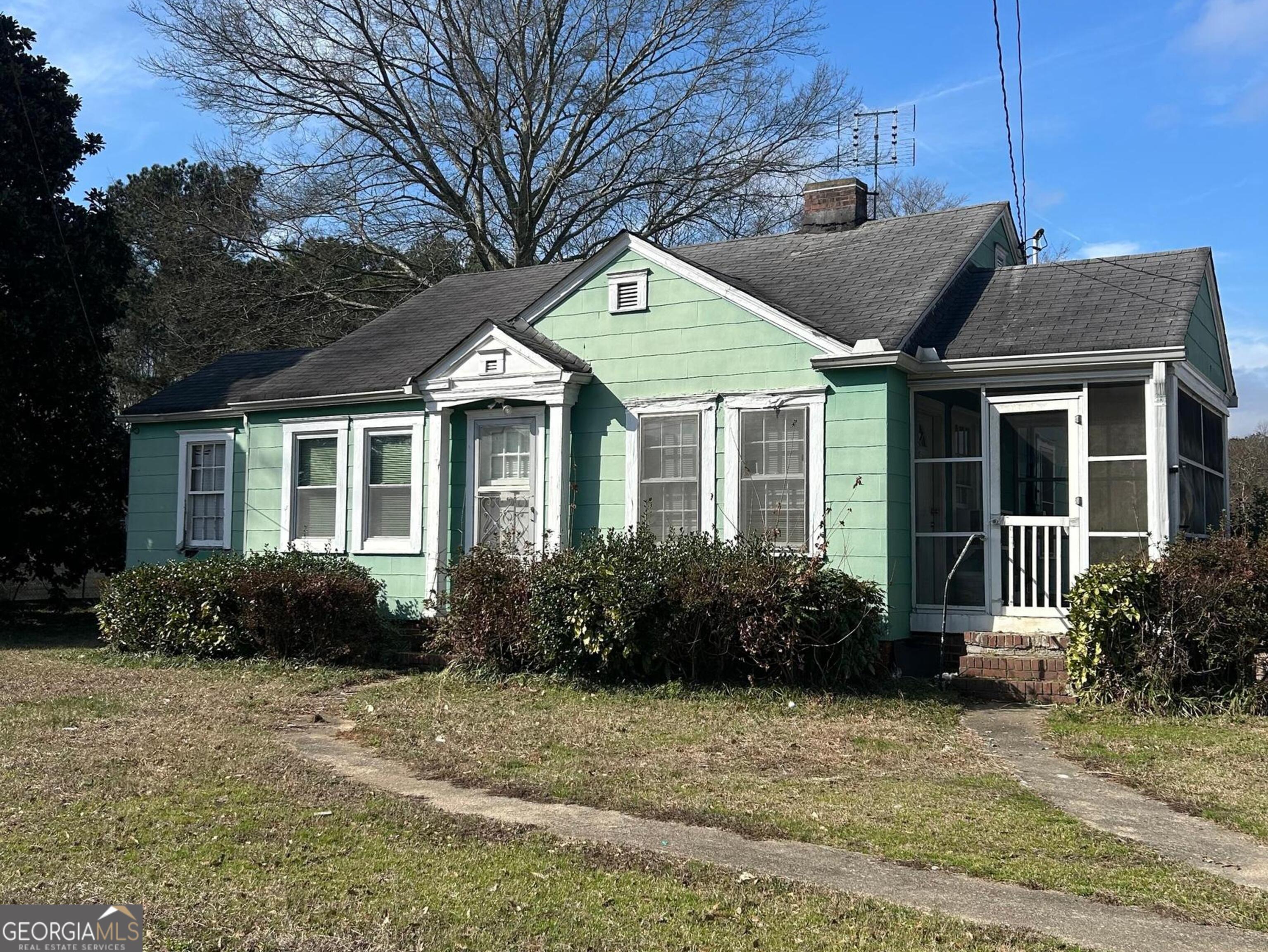 This charming cottage is perfect for investors looking to add to their rental portfolio and has commercial potential as well. 2 bedrooms and 1 remodeled bathroom with a tile shower. Double side (decorative only) fireplace in living room and bedroom. White kitchen cabinets and vintage farmhouse sink. Separate dining room. Laundry room. New deck on back. Large .7 acre lot is flat with 2 outbuildings. Side screen porch. Home is being sold in "as is" condition and does need work/TLC. Location is close to downtown Powder Springs, restaurants, etc. New subdivision with homes starting in the 400s being built 1 house down from this one makes it an excellent investment opportunity.