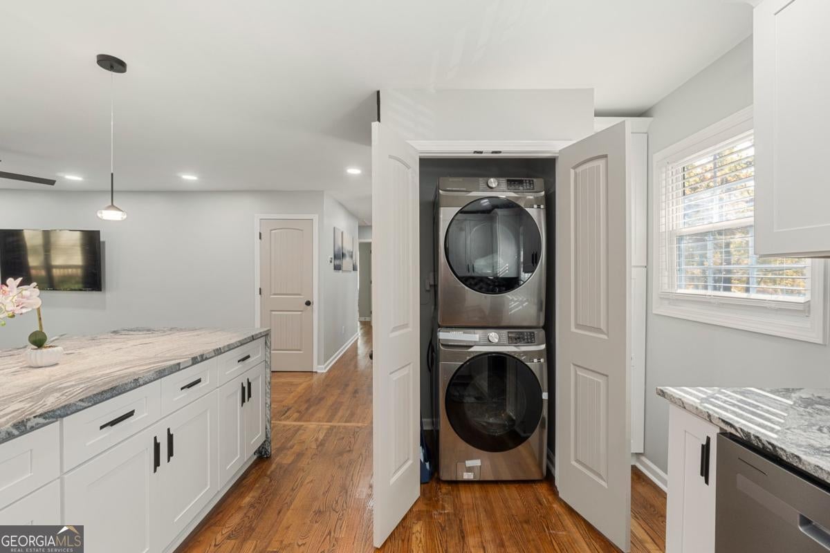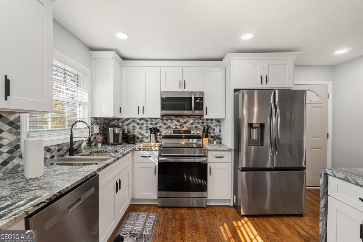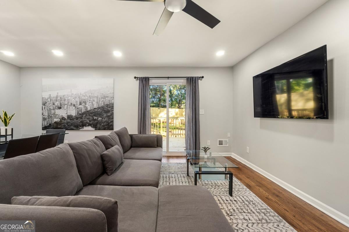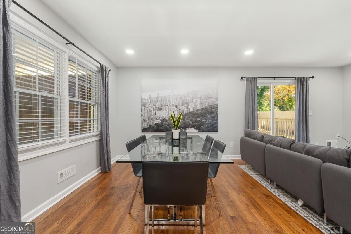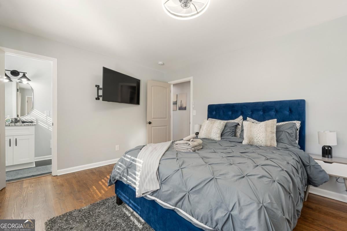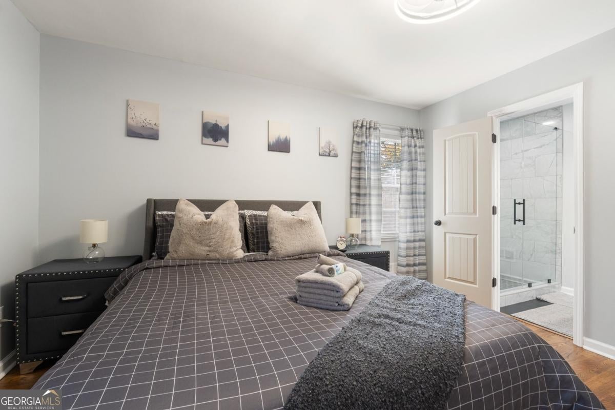 Fully renovated 3BR / 2.5BA four-sided brick home near East Atlanta Village in Gresham Park with leathered granite waterfall island, huge privacy-fenced yard, back deck, and full basement. Turnkey home in a convenient and rapidly growing Atlanta location. This beautifully updated home features solid hardwood floors, stylish marble style bathrooms, and a designer kitchen with leathered granite countertops and a stunning waterfall island, complemented by high-end appliances, soft-close cabinetry, updated lighting, and energy-efficient LED fixtures throughout. The spacious layout includes a primary suite with frameless glass shower and marble-style tile, while the hallway bath also features marble-style finishes. The third bedroom includes its own private half bath, offering flexibility for guests or a home office. Step outside to a large back deck overlooking a huge level backyard fully enclosed with an 8-foot privacy fence, ideal for entertaining, pets, or relaxing outdoors. Additional upgrades include new windows, new HVAC, new roof, and exterior soffit lighting that provides elegant nighttime illumination around the entire home. The property also features a full unfinished basement, offering excellent storage or future expansion potential. Located in Gresham Park just minutes from I-20 and I-285, the home offers convenient access to East Atlanta Village, East Lake Golf Club, Grant Park, Zoo Atlanta, and downtown Atlanta, with numerous dining, entertainment, and recreation options nearby. The home is currently being operated as a short-term rental, offering flexibility for buyers seeking a primary residence with optional rental potential if desired.