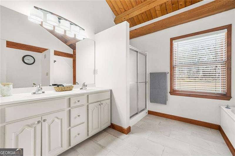 - Interior FeaturesDouble Vanity, Master On Main Level, Split Bedroom Plan, Vaulted Ceiling(s), Walk-In Closet(s), Beamed Ceilings
