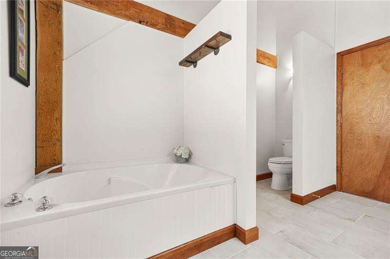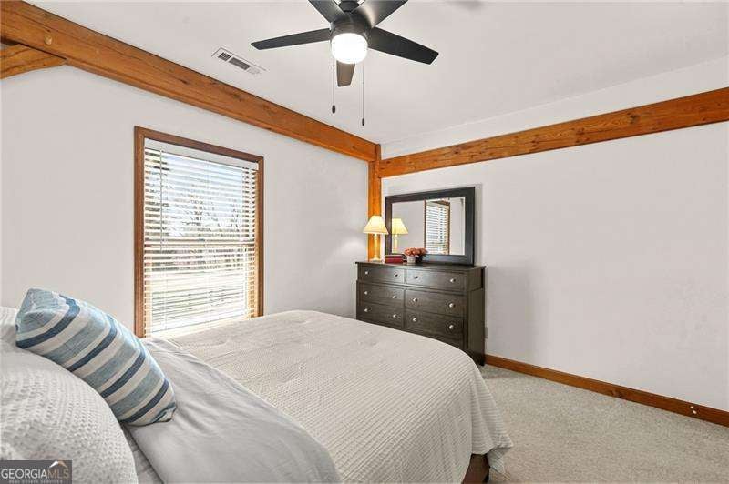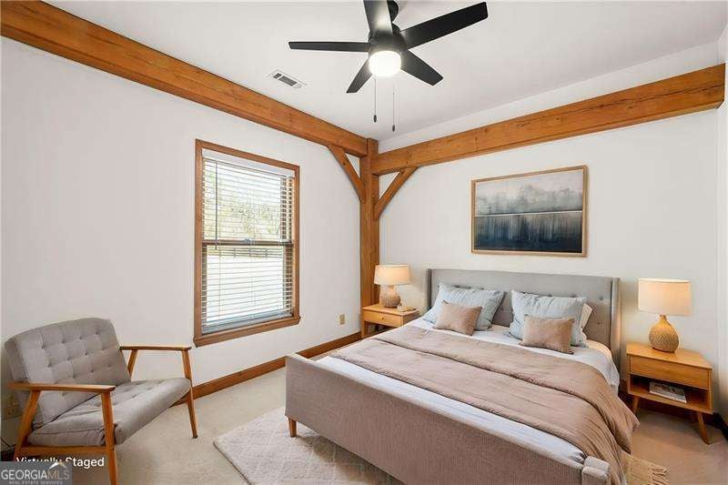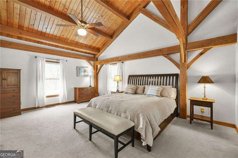 Tucked away down a long drive, this one of a kind timber frame ranch offers the rare combination of privacy, land, and everyday convenience. Set on 2.25 peaceful acres, the property feels secluded and serene while still being close to everything West Cobb has to offer. With its long driveway, additional parking pad, and no HOA restrictions, the property is not just beautiful, but is ideal for those who need space for an RV, boat, or other recreational vehicles. Originally milled by Hearthstone in Newport, Tennessee and constructed on site by a specialized timber frame team, the home showcases stunning center cut white oak beams that remain exposed throughout the interior. The craftsmanship is immediately noticeable as you step inside, where soaring cathedral ceilings and an open floor plan create a warm and dramatic living space that feels both spacious and inviting. Designed for true one level living, the home features a ranch layout with the primary suite on the main level, including an oversized bedroom retreat. Rich hardwood floors, natural wood framing, and windows throughout the home bring the beauty of the outdoors inside. The kitchen is open to the main living areas, making the layout ideal for gatherings and entertaining. Just beyond, a covered back deck overlooks the tranquil setting, offering the perfect place to enjoy morning coffee or unwind while taking in the quiet views of the surrounding property. The terrace level provides incredible flexibility. While unfinished, it is exceptionally clean and well maintained with an epoxy coated floor and abundant storage space. A portion could easily be finished to create additional living space, a workshop, home gym, or hobby area. One of the most appealing aspects of the property is the space it provides outside. There is plenty of room for outdoor living, gardening, or parking recreational vehicles, boats, or equipment. For buyers seeking breathing room without feeling isolated, this property offers a unique opportunity. Despite its peaceful setting, the home remains conveniently located near the best of West Cobb. Shopping and dining along Dallas Highway and in the West Cobb Avenue area are just minutes away. Outdoor enthusiasts will appreciate the nearby trails and natural beauty of Kennesaw Mountain National Battlefield Park and Lake Allatoona. Kennesaw State University is approximately 25 minutes away, making the location ideal for those who want privacy without sacrificing access to the metro area. This is a rare chance to own a thoughtfully built timber frame home on acreage in one of Cobb County's most desirable areas. If you have been searching for something truly distinctive, this property delivers craftsmanship, character, and space in one exceptional setting.