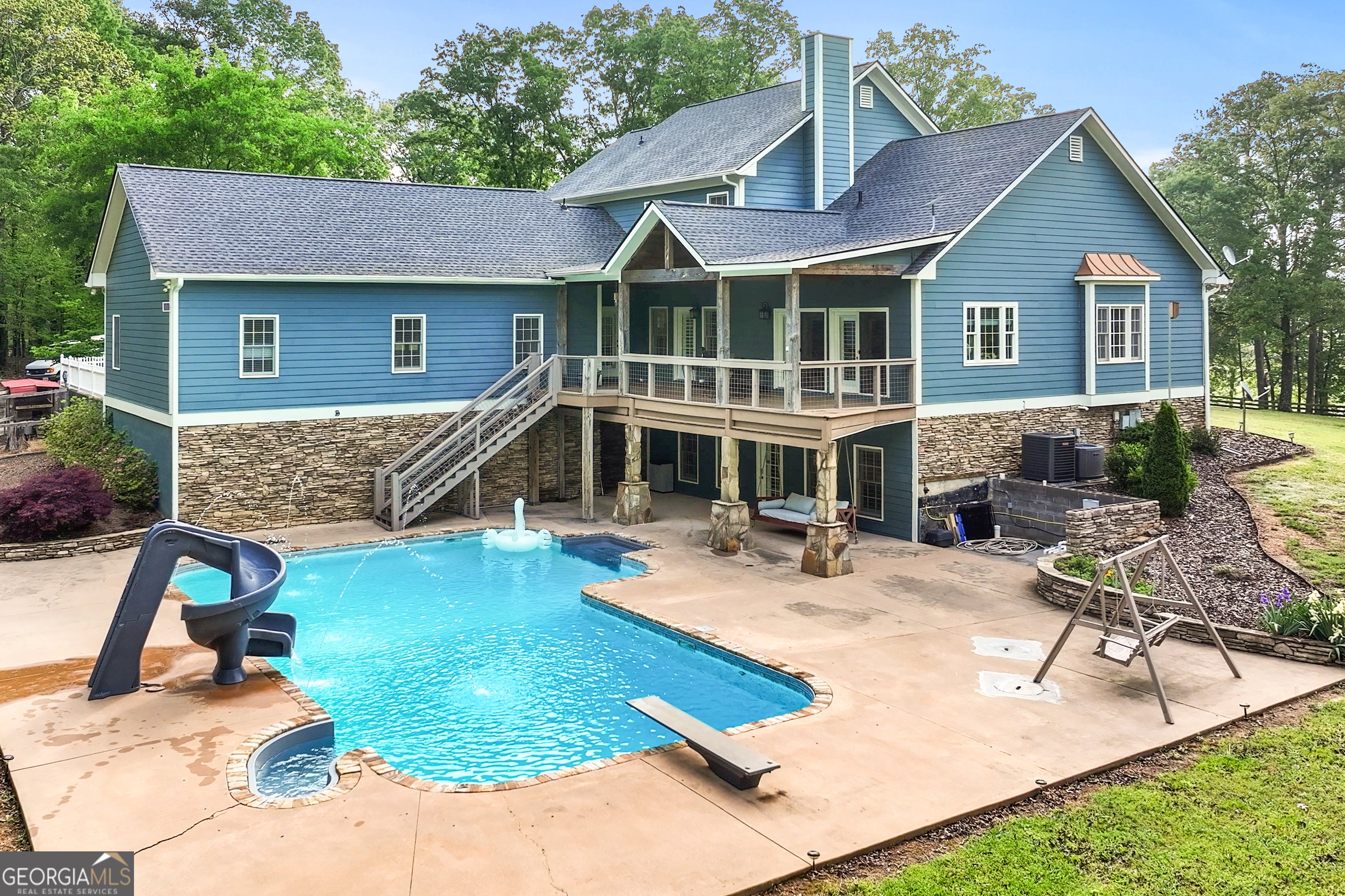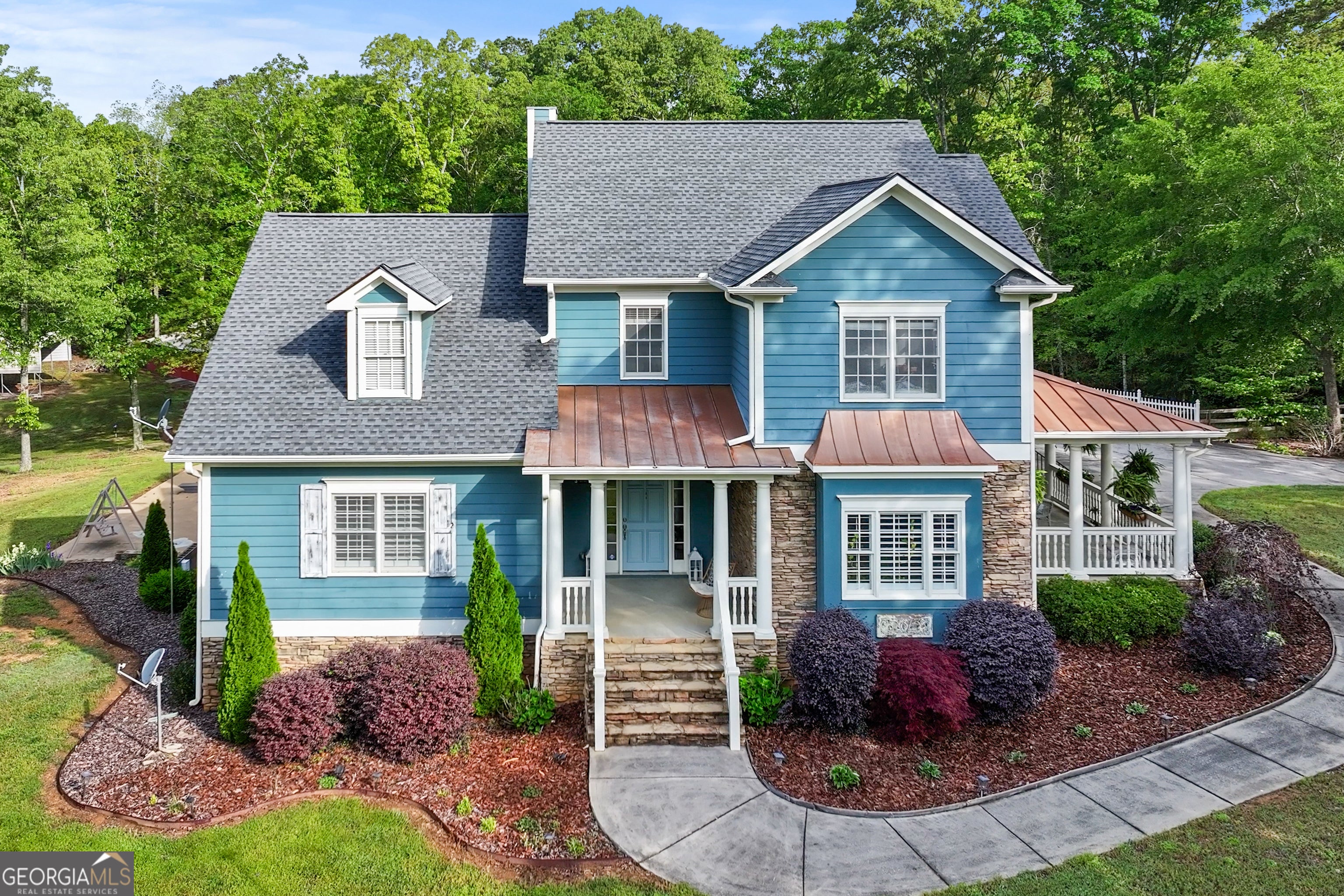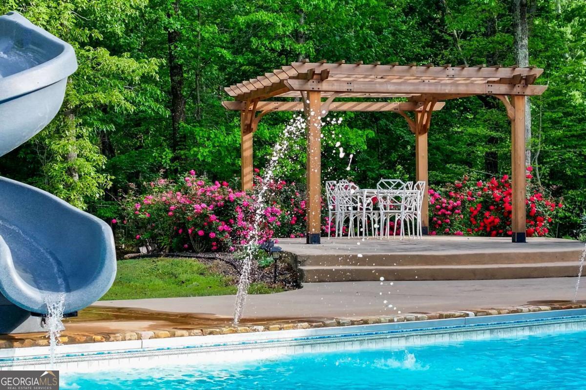 Welcome to your own personal retreat tucked away on a private, 5 acre lot! This charming home sits back on the property after a long, private driveway leading to the side entry, three car garage as well as a covered stone accent front porch and additional side porch. Enjoy quite living with total privacy! Enter the home into the foyer where you will be greeted by rich, warm toned wood flooring and a view into the dining and family rooms. Continue on into the family room where you will enjoy a stone fireplace with wood beamed mantle and custom built in shelving. Move into the farmhouse style kitchen boasting of custom cabinets, stone backsplash, detailed moulding, granite countertops, wood cabinets with under lighting, top of the line stainless appliances, breakfast bar seating, and a huge copper sink. Just off the kitchen is a casual dining space with a view of the family room. Just on the other side of the kitchen is easy access to the formal dining room with room to entertain a crowd! Also located off the main living area is a half bath and a custom laundry/mud room combo with additional countertop space for folding, cabinets for storage, and a sink. Move into your master suite where you will find an oversized room complete shiplap and beamed ceilings, a huge closet, and access to the back porch. The master bath has been updated to include a stunning vanity with double sinks, a framed mirror, a large soaking tub, and beautiful tile shower. Head upstairs will you find 3 additional bedrooms each equally spacious with a shared full bath with shower/tub combo. Enjoy a bonus sitting room upstairs that would be great for a study, game room, or play area. Continue to the full finished basement where you will enjoy an open concept flex space with enough room for another sitting area, home theatre, game room or whatever you wish! The basement also offers a wet bar with sink and space for a refrigerator. Also located in the basement is another bedroom, a full bath, and a bonus room perfect for a home office. Over the garage is a huge unfinished room, turn it into a movie room, or home office. As if this was not enough...we have yet to talk about the outside! This huge, private lot offers a true oasis! Enjoy sitting on any of the three covered porches. Whether you are sitting on the front porch, side porch, or back porch you can enjoy views of the property or overlook the pool. The in ground, saltwater pool features a slide and diving board, making this a dream home. Other outdoor features include a covered patio from the walkout basement, a pergola area, a walking path with bridge, a chicken coop, an expansive lot to add a home garden or micro farm, as well as a working well currently used for the pool and irrigation. Also located on the property is a separate carport perfect for parking additional recreational vehicles as well as a huge enclosed workshop. This property has so much to offer and space to really make it your own! Centrally located to Rockmart, Cartersville and Rome...this home gives you the country living vibes you desire with easy access to local shopping and restaurants.