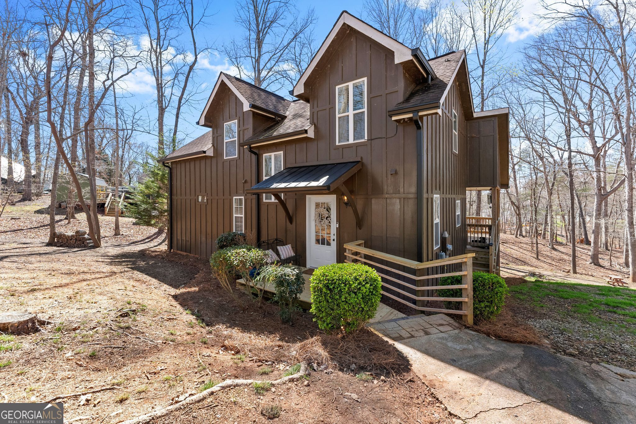 Welcome to lake living in the private, gated community of "A Quiet Place in the Woods" on Lake Lanier. This charming 1.5-story cottage offers a warm and inviting design with gleaming hardwood floors, a welcoming foyer, and an impressive open great room featuring soaring ceilings and a stunning two-story stone fireplace. The kitchen is equipped with stainless steel appliances and flows seamlessly into the main living space, perfect for entertaining. The main-level primary suite provides convenience and privacy, while the covered back deck creates the perfect spot to unwind with an afternoon drink or host friends while enjoying the peaceful wooded setting. Upstairs you'll find two spacious bedrooms, both with walk-in closets, and a well-appointed shared bathroom. Residents of this community enjoy outstanding amenities including a clubhouse, pool, tennis courts, community boat dock and boat storage. Seller holds an inactive Georgia Real Estate License.
