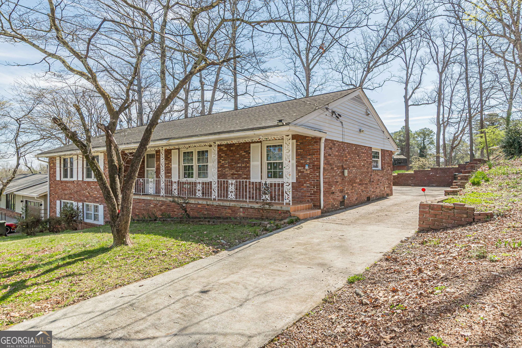 This classic four-sided brick ranch sits on full basement and offers timeless charm and solid construction. The kitchen overlooks a cozy den featuring a fireplace, creating a warm and inviting gathering space. A combined living and dining room area provides ab open setting for entertaining. The main level includes three bedrooms and two full baths. The lower level features a finished room and an additional. full bath, offering flexible space for a recreation, guest suite. or home office. Take advantage of a double car garage. Located in the desirable Young-Longino neighborhood, known for its custom-built homes dating back to the 1950's, this property offers character, space and a wonderful established community. Convenient to Porsche, Delta Headquarters, Woodward Academy, all major highways, and just 14 minutes to Midtown Atlanta.