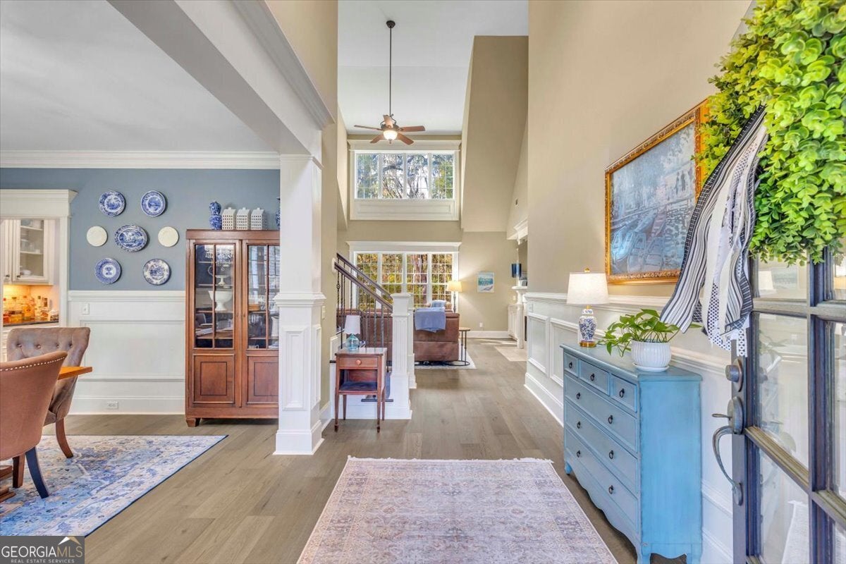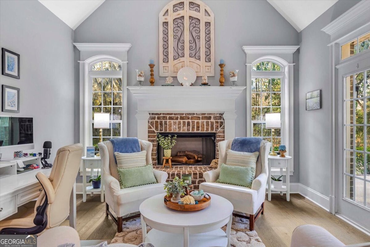 Welcome to 176 Crosswinds Dr in Buckhead North-where privacy, space, and timeless style come together. Nestled on 3.76 acres surrounded by beautiful pine trees, this stately all-brick home offers the perfect blend of peaceful country living with neighborhood amenities available if you desire. Inside, you'll find 5 bedrooms, 4 bathrooms, and 3,814 square feet of thoughtfully designed space. The home features brand-new waterproof engineered hardwood floors downstairs, fresh paint throughout, and a beautifully updated primary shower with new tile. High ceilings and extensive molding create an elegant feel the moment you walk in. The gourmet kitchen is designed for both everyday living and entertaining, featuring custom cabinetry, a built-in oven, and an inviting eat-in area, plus a formal dining room for gatherings. The spacious living areas include gas fireplaces in both the living room and keeping room, creating warm and welcoming spaces to relax or entertain. Step outside to enjoy the screened-in porch, perfect for peaceful mornings or evening sunsets overlooking your private acreage. Car enthusiasts, hobbyists, or anyone needing extra space will love the 4-car garage, including two detached bays that can easily serve as a workshop. Even better, the HOA amenity fee is optional-allowing you to enjoy neighborhood amenities while still having the freedom to keep chickens and live the lifestyle you want. This rare property truly offers the best of both worlds: privacy, acreage, and flexibility-just minutes from Richmond Hill conveniences.