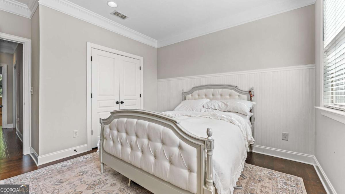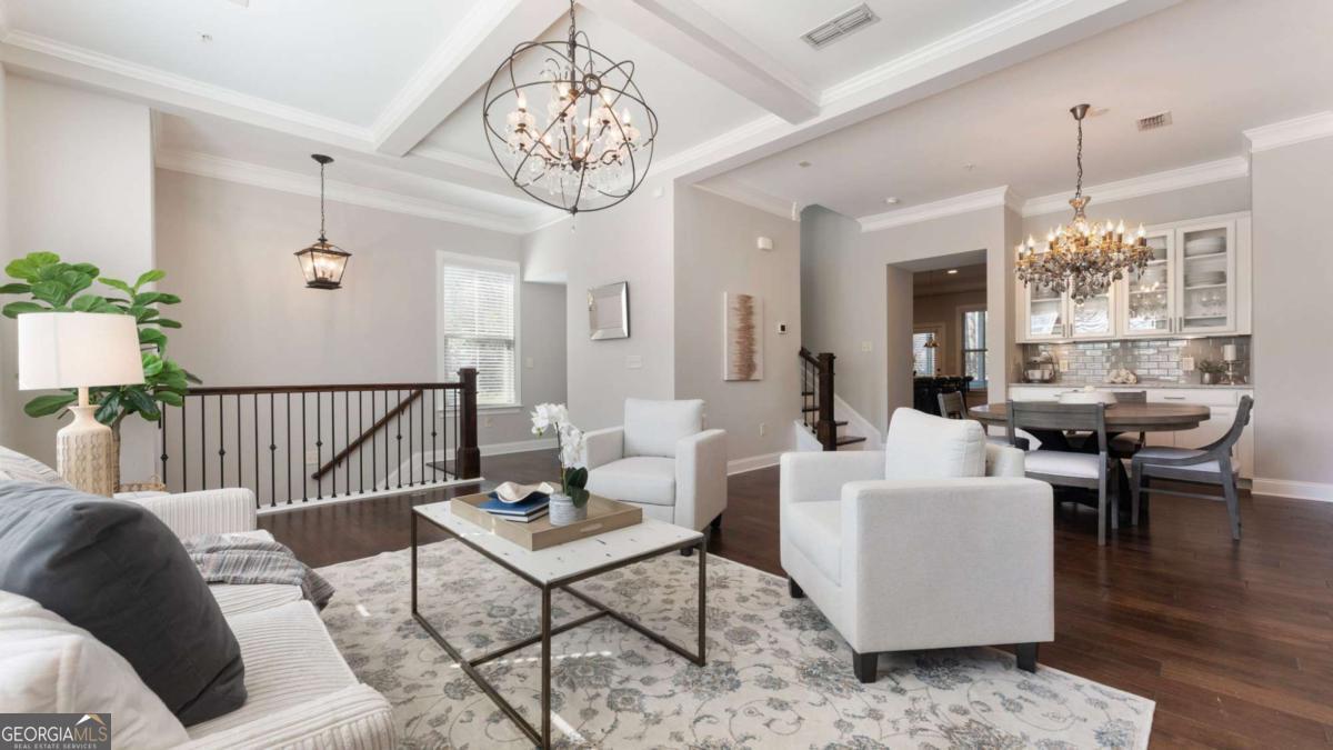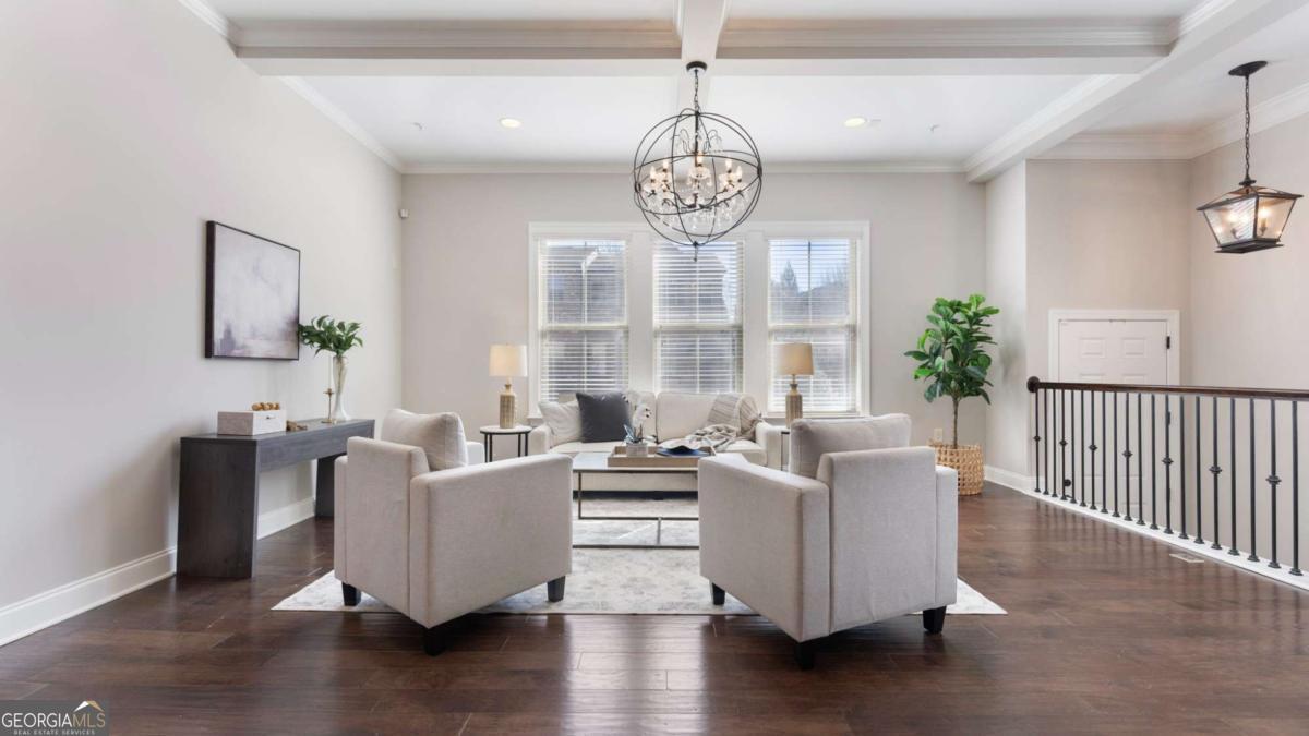 Welcome to your amazing new End-Unit townhome with the largest floor plan in the community in the highly desired 321 Vaughan community. This Downtown Alpharetta location is zoned for Top-Rated Alpharetta Elementary, Hopewell Middle and Cambridge High School! This spacious 4-bedroom, 3.5-bath end unit townhome is over 2,640 square feet and offers an exceptional open layout with 10' ceilings on the main level, 9' ceilings on the other levels, 3 entertainment areas, a coffered ceiling in the Great Room, upgraded crown molding, new designer lighting, and hardwood floors throughout the entire home, including all bedrooms. The elegant main level features a bright front sitting room, a dining area with a stylish Butler's pantry with glass-front cabinetry. The gourmet kitchen is complete with 42" white cabinetry, large entertaining island, upgraded granite countertops, subway tile backsplash, KitchenAid Stainless Steel appliances, gas cooktop, vent hood to the exterior and walk-in pantry. Enjoy a cozy keeping room with a stone gas fireplace, plus a screened-in porch overlooking peaceful, private views, your perfect morning coffee spot or reading nook. A tucked-away half bath offers a new vanity, mirror, and lighting. Upstairs, three generous bedrooms all boast hardwood floors. The convenient laundry room sits just outside the luxurious owner's suite on the top floor. The owner's suite features a tray ceiling and a fully updated spa-style bath with new mirrors, granite countertops, a walk-in shower, and a soaking tub. Secondary bedrooms enjoy privacy and share a well-appointed full bath. The ground level offers incredible flexibility, ideal for a home office with additional living space plus a guest bedroom with multiple windows. The ground floor is complete with a full bathroom, walk-in shower, mudroom area, and oversized storage closet. The extra-long driveway easily fits 4 cars adding another benefit to the property. The perfect home for entertaining inside and out, there are over 20 speaker pre-wires if music is what you enjoy. This townhome lives like a single family home with all of the amazing windows on 3- sides, privacy on the side and rear, plus the long driveway. Here you will enjoy no maintenance of the exterior of your new home or the yard. The Downtown Alpharetta area is the hub of local culture and activity that delivers the luxury of the modern South where you can shop, eat, watch a movie, enjoy a festival or hear a concert. This upscale destination brings together Southern charm with everything you have been looking for! Located nearby Ameris Bank Amphitheatre, this unique setting for music lovers is 45 acres and seats 12,000 people between the under roof and open lawn seating. Less than 1 mile from Downtown Alpharetta and near the Alpha Loop, Avalon, and endless dining, shopping, and entertainment you will love the convenient location and lifestyle with low maintenance. With over 250 shops and 200 restaurants within a 5-mile radius, there are always things to do in Alpharetta! Experience the exceptional lifestyle you will enjoy at 126 Brindle Lane today!