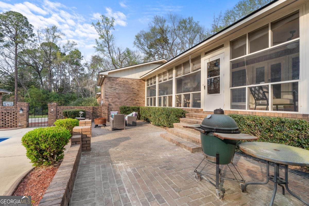 Nestled on a serene and private 1.83-acre lot, this beautifully updated all-brick ranch offers an ideal combination of space, comfort, and modern convenience. With 3 spacious bedrooms and 3.5 bathrooms, the home is designed for both relaxation and entertaining. The heart of the home is a generously sized eat-in kitchen, updated with contemporary finishes and ample cabinet space. The home boasts multiple living areas, including a formal living room, elegant dining room, and a cozy family room-perfect for all occasions. Additional living space provides flexibility for a home office, gym, or entertainment area, while a large screened porch offers tranquil views of the expansive backyard. Outdoors, you'll find a resort-style pool area surrounded by a stately brick fence and expansive patio, ideal for hosting guests or unwinding in privacy. A separate pool house with a living area and full bath provides an excellent mother in law suite, guest quarters or versatile flex space. Completing this exceptional property is a 3-car garage and plenty of room to explore and enjoy the outdoors, all just minutes from town.