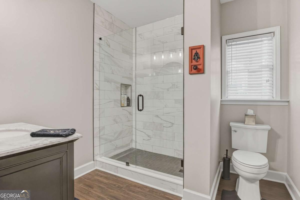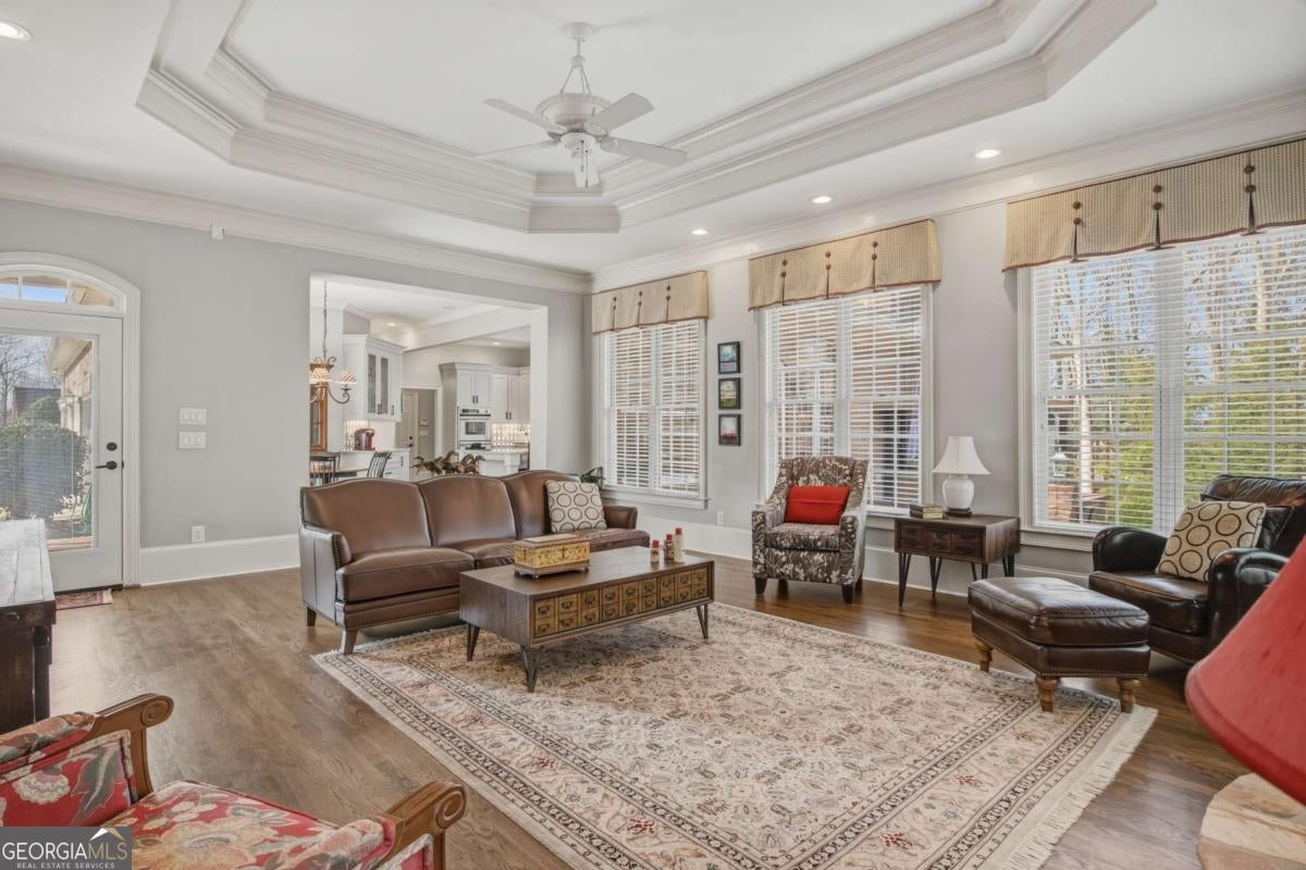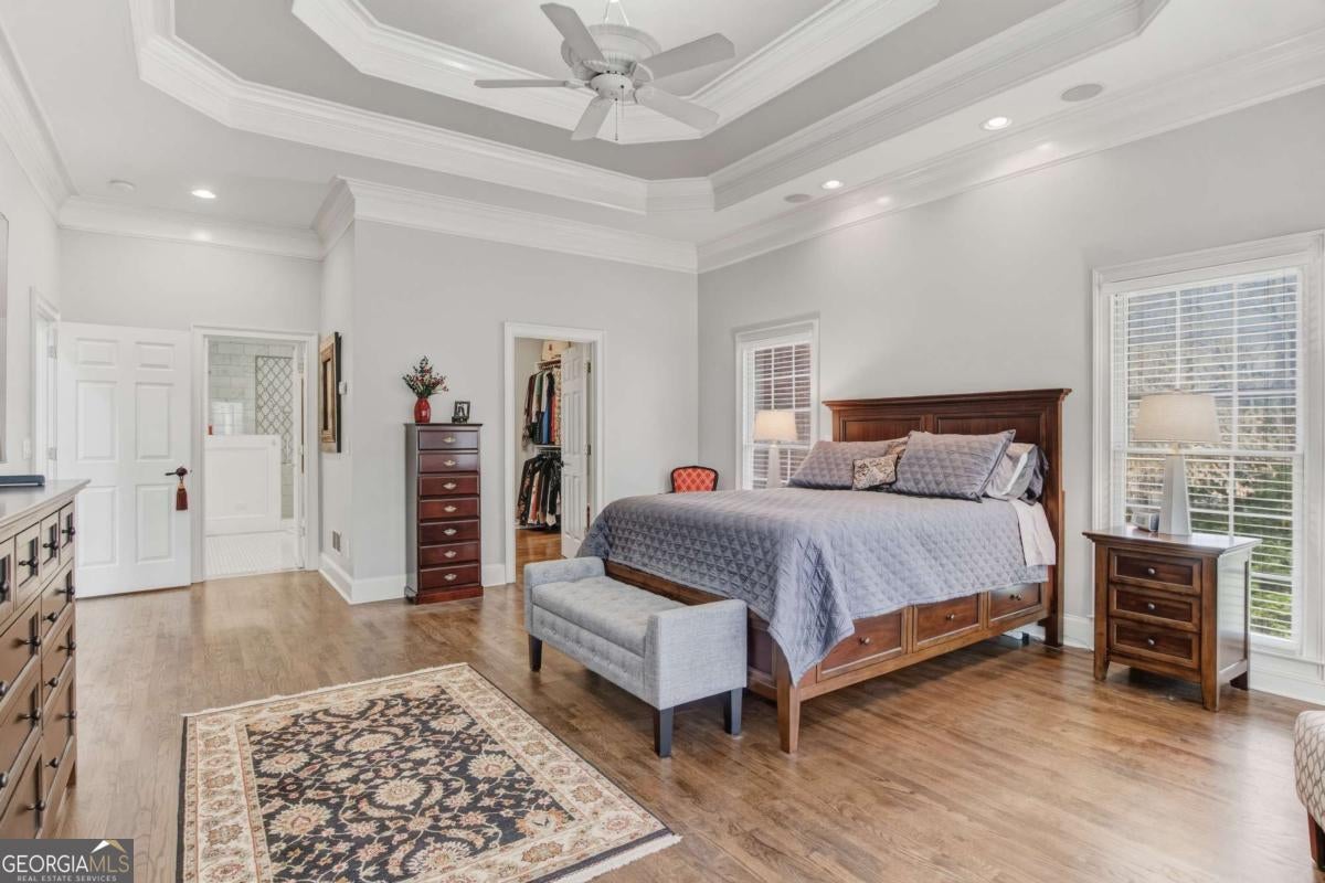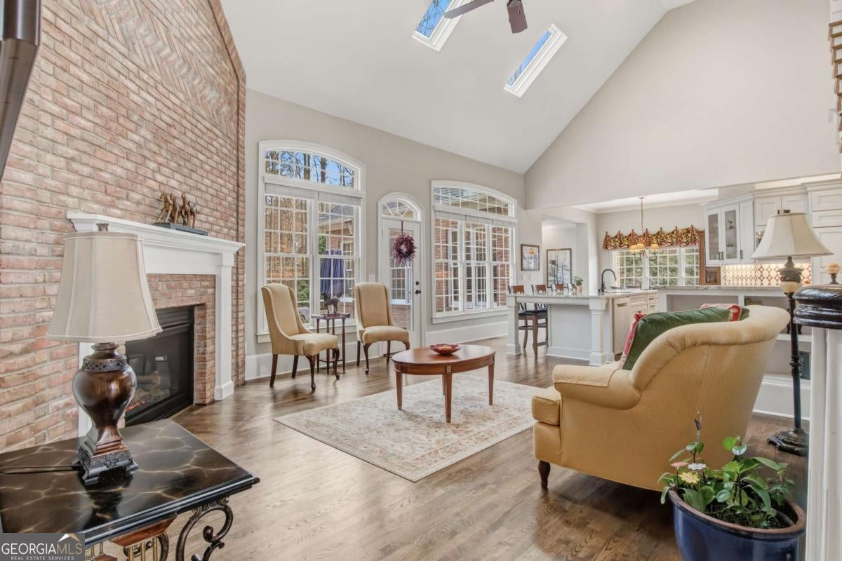 Experience the pinnacle of Braselton living in this stunning 4-sided brick executive estate. Located within the prestigious gated community of Chateau Elan, this home offers a lifestyle of unparalleled luxury. The grand two-story foyer welcomes you into a light-filled floor plan featuring gleaming hardwoods and high ceilings throughout. The main-level Owner's Suite is a true retreat, showcasing a spa-like bathroom with a jetted tub, double showers, towel warmer, and a massive custom walk-in closet. The chef's kitchen featuring Subzero fridge and Wolf cooktop -complete with a central island seating 8 and solid surface counters -flows seamlessly into the breakfast area and fireside living room. The stacked stone fireplace and the floor to ceiling windows are the highlight of the keeping room. Upstairs, find three generous bedrooms, including a private ensuite and a Jack-and-Jill bath. The terrace level is a standout feature, offering a daylight-finished basement with exterior entry, living area, bedroom with a walk-in closet and full bath -ideal for an in-law suite. You will also find a stylish pub and a spacious entertainment room. Recent updates and a meticulous 3-car garage make this home move-in ready. Outside, your private wooded oasis awaits with a lush backyard, propane outdoor kitchen and a brick paved porch. Enjoy world-class amenities including golf, spa, tennis, a winery, and top-tier dining just moments away.