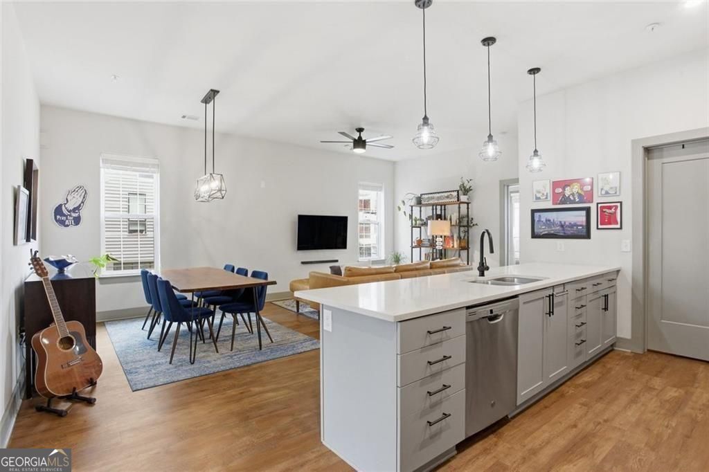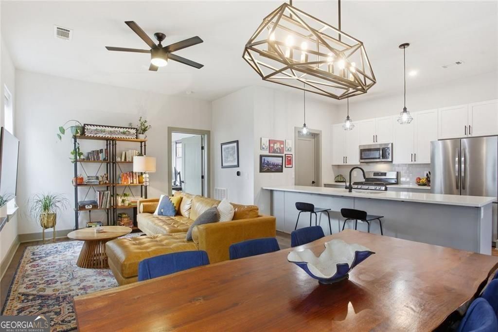 Bright, open double corner unit located just one block from the Atlanta BeltLine. This newer boutique building offers a prime location within steps of everything Cabbagetown and Reynoldstown have to offer. The thoughtfully designed floor plan features open-concept living, a designated dining area, and a spacious, welcoming kitchen island-ideal for both everyday living and entertaining. The kitchen is appointed with quartz countertops, a gas range, and a large pantry with custom Elfa shelving. The primary bedroom includes a private balcony overlooking Pearl Street, a custom walk-in closet, and an ensuite bathroom with a tub/shower combination. The second bedroom is well suited for a roommate, guest space, or home office and features its own balcony along with a large walk-in closet with custom shelving. A second full bathroom offers a step-in shower and a window that provides excellent natural light. 764 Memorial Drive SE offers comparatively low HOA fees, which include both water and gas. The secure building features an excellent fitness center, a co-working space/clubroom, and a rooftop terrace complete with a fireplace and TV. Conveniently located just one block from Publix and surrounded by popular neighborhood destinations including El Malo, Muchacho, The Dairies, Coffee shops, and 3 Taverns Brewing. Directly across the street is one of Atlanta's premier music venues, The Eastern. Memorial Drive now features dedicated bike lanes, making it easy to get around without a car. The condo includes one assigned parking space within a gated area, and additional street parking on Pearl Street and Estoria Street is readily available. All appliances stay with the home including washer/dryer. The owners plan to have the home professionally painted after they move out, or they are happy to offer a $3,000 paint credit to the future buyer. Only one wall in guest bathroom/closet is shared with another unit, very quiet and private unit.