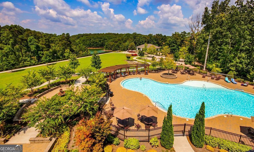 Welcome home to this beautifully designed single-level ranch in the sought-after Cresswind community on Lake Lanier. Offering 3 spacious bedrooms and 2.5 baths, this home is ideally positioned in one of the most private locations in the neighborhood, backing up to a tranquil nature preserve and fronting a peaceful tree-lined street. Enter through the stunning double beveled glass front doors and covered front porch into an open and inviting layout designed for easy living. The home features true one-level living with the primary suite on the main, along with 2 additional bedrooms and 2.5 baths. The chef's kitchen is equipped with double stainless steel ovens, gas cooktop, stained cabinetry, granite countertops, pull-out drawers, and custom pantry shelving, all opening seamlessly to the great room with a cozy fireplace-perfect for entertaining or relaxing. A large separate dining room and additional living room provide plenty of space for gatherings. The spacious primary suite features a comfortable sitting area and his-and-hers closets, creating a peaceful retreat. Step outside to the huge private covered porch with fireplace, where you can unwind while overlooking the serene wooded preserve. Living in Cresswind on Lake Lanier means enjoying an unmatched lifestyle with resort-style amenities including a 42,000-square-foot clubhouse spanning three levels, indoor heated pool, outdoor pool, over 120 clubs and activities, community theater, chorus, pickleball, tennis courts, walking trails, fitness center, community garden, dog park, and a marina on the shores of Lake Lanier.